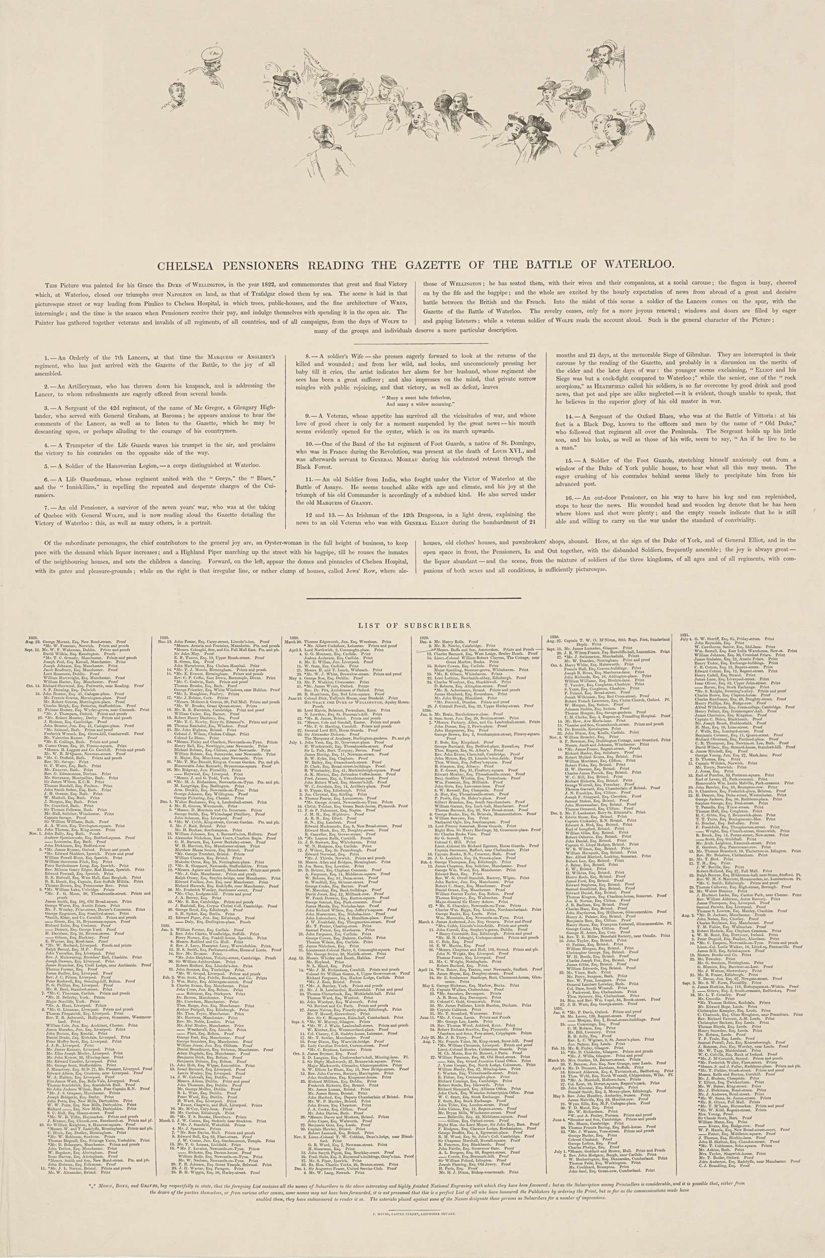 Sleutel en lijst van abonnees bij de prent Gepension...