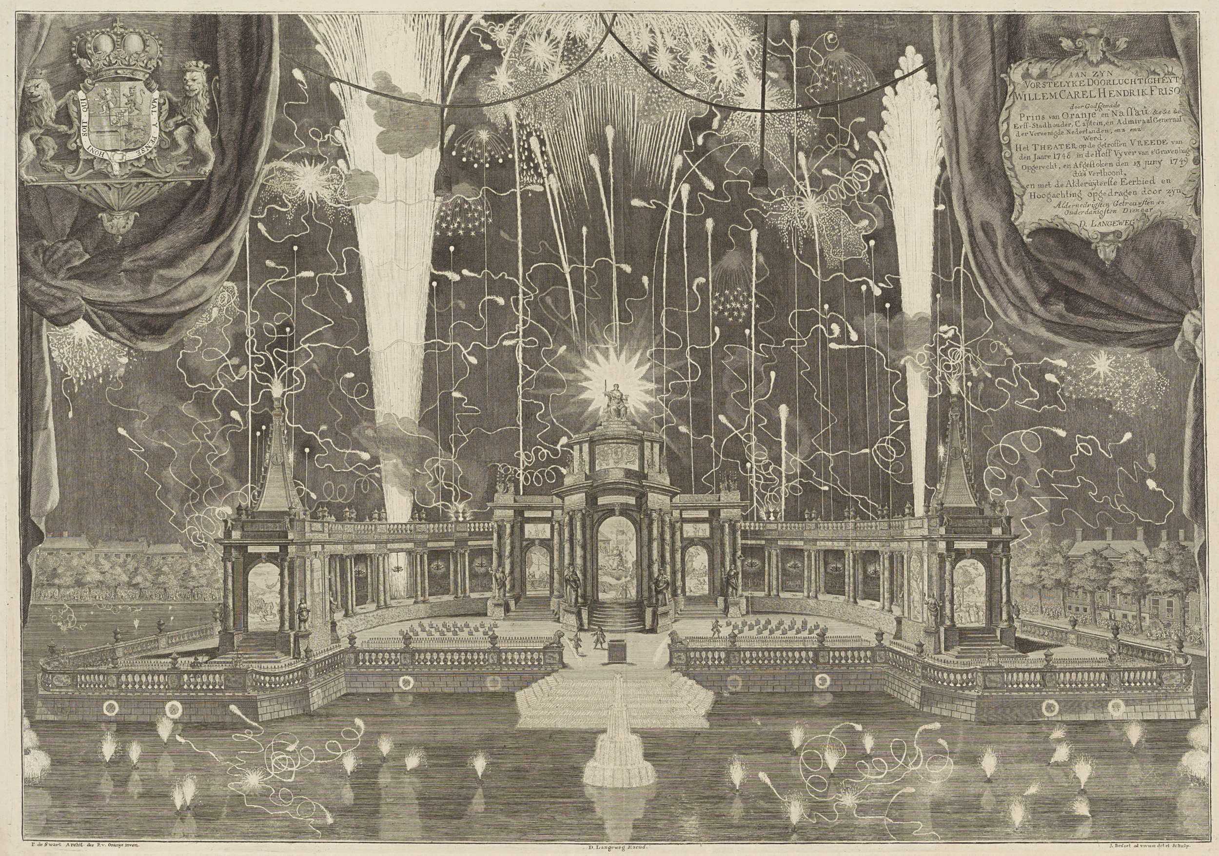Vuurwerk ter ere van de Vrede van Aken bij het pavil...