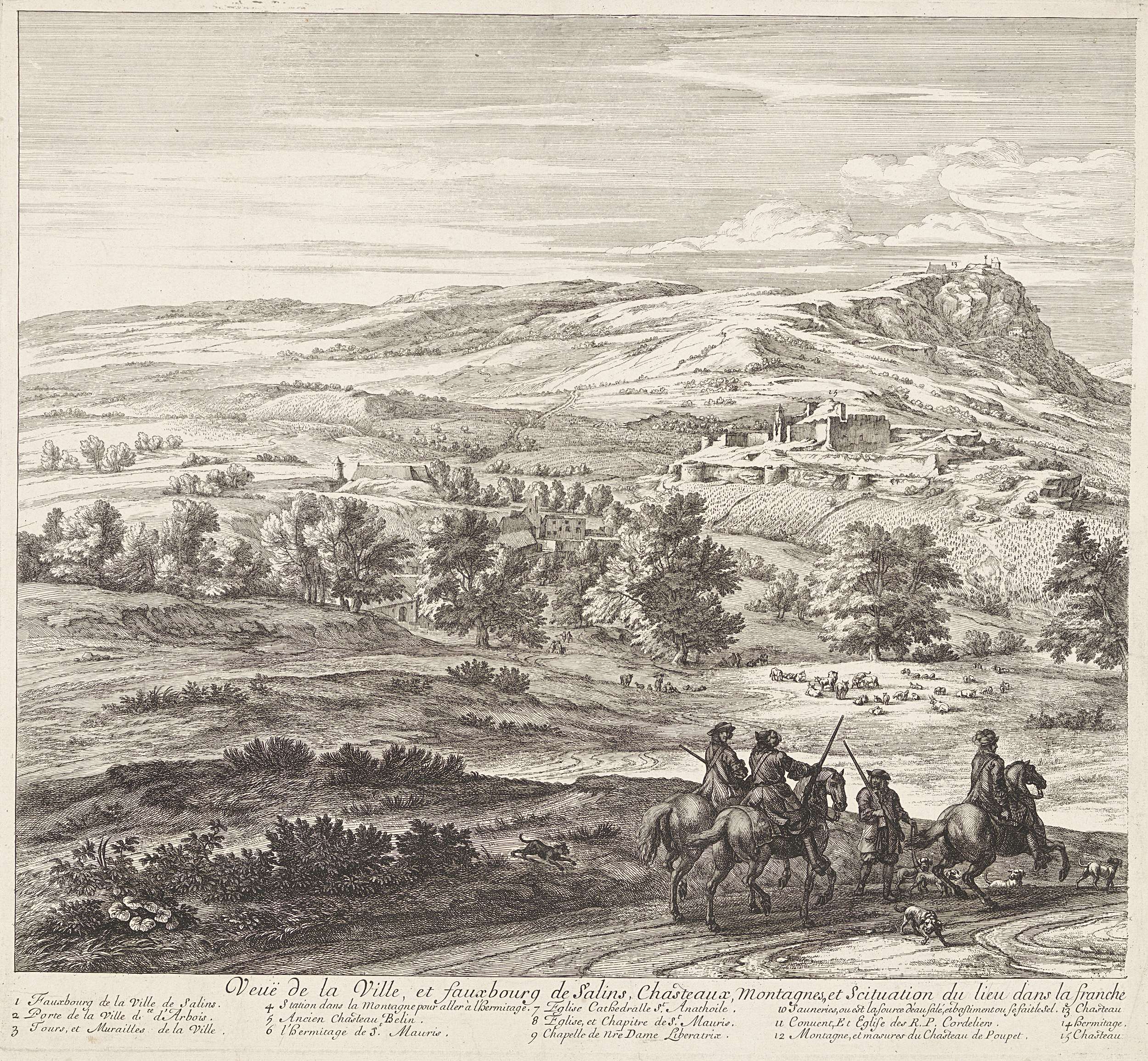 Berglandschap met gezicht op Salins-les-Bains (linke...