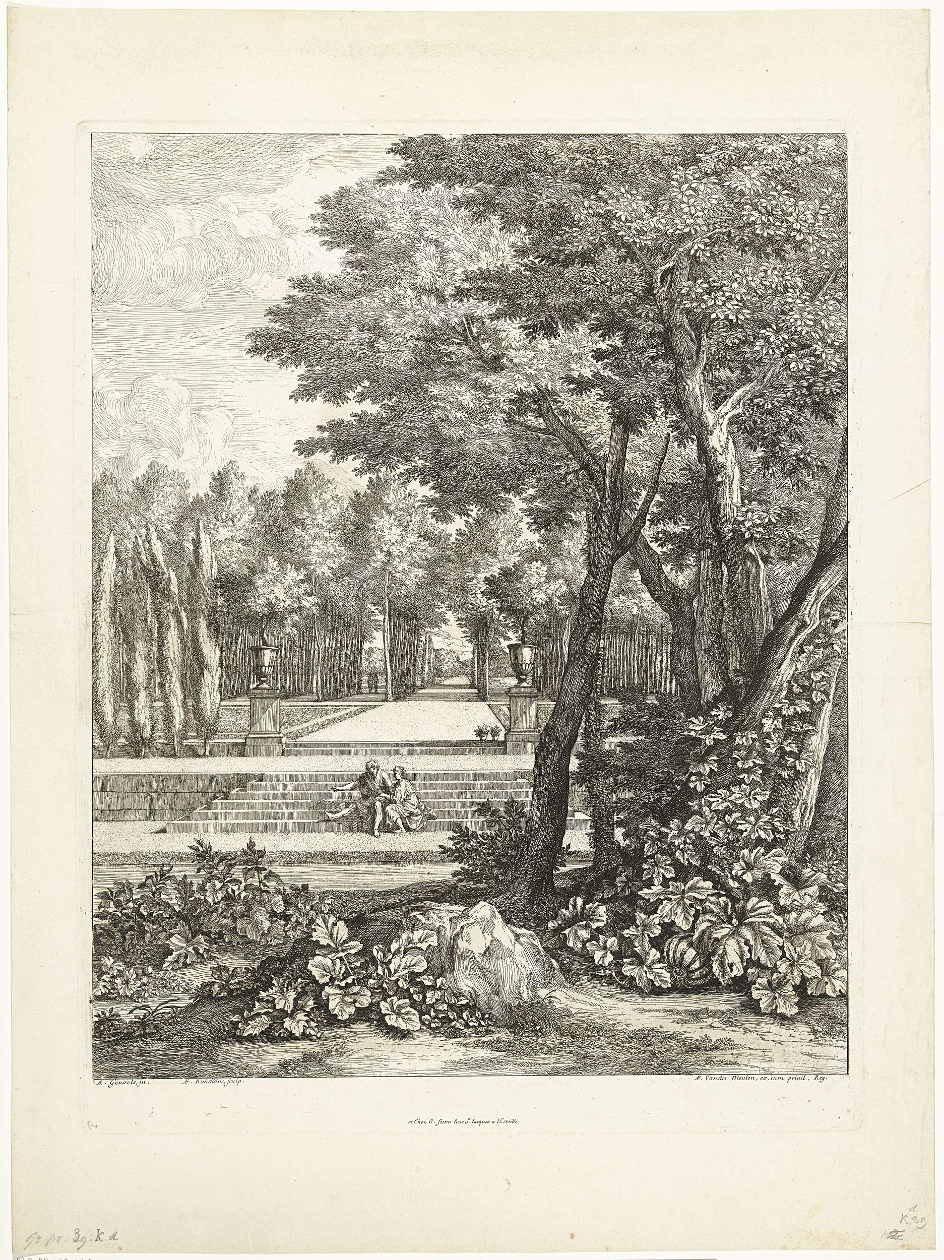 Landschap met paar, zittend op een trap in de tuin