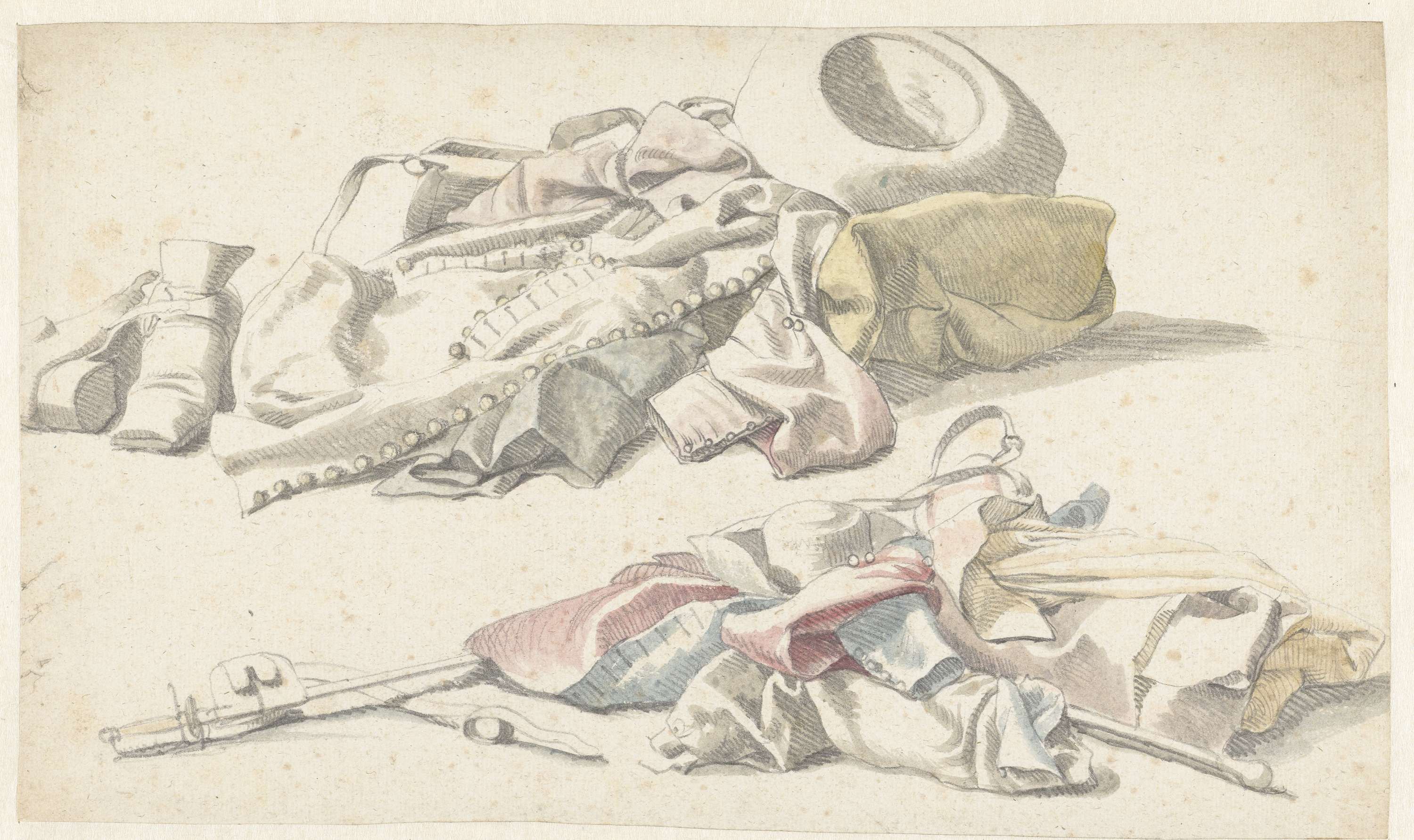 Twee stillevens van de plunje van een soldaat