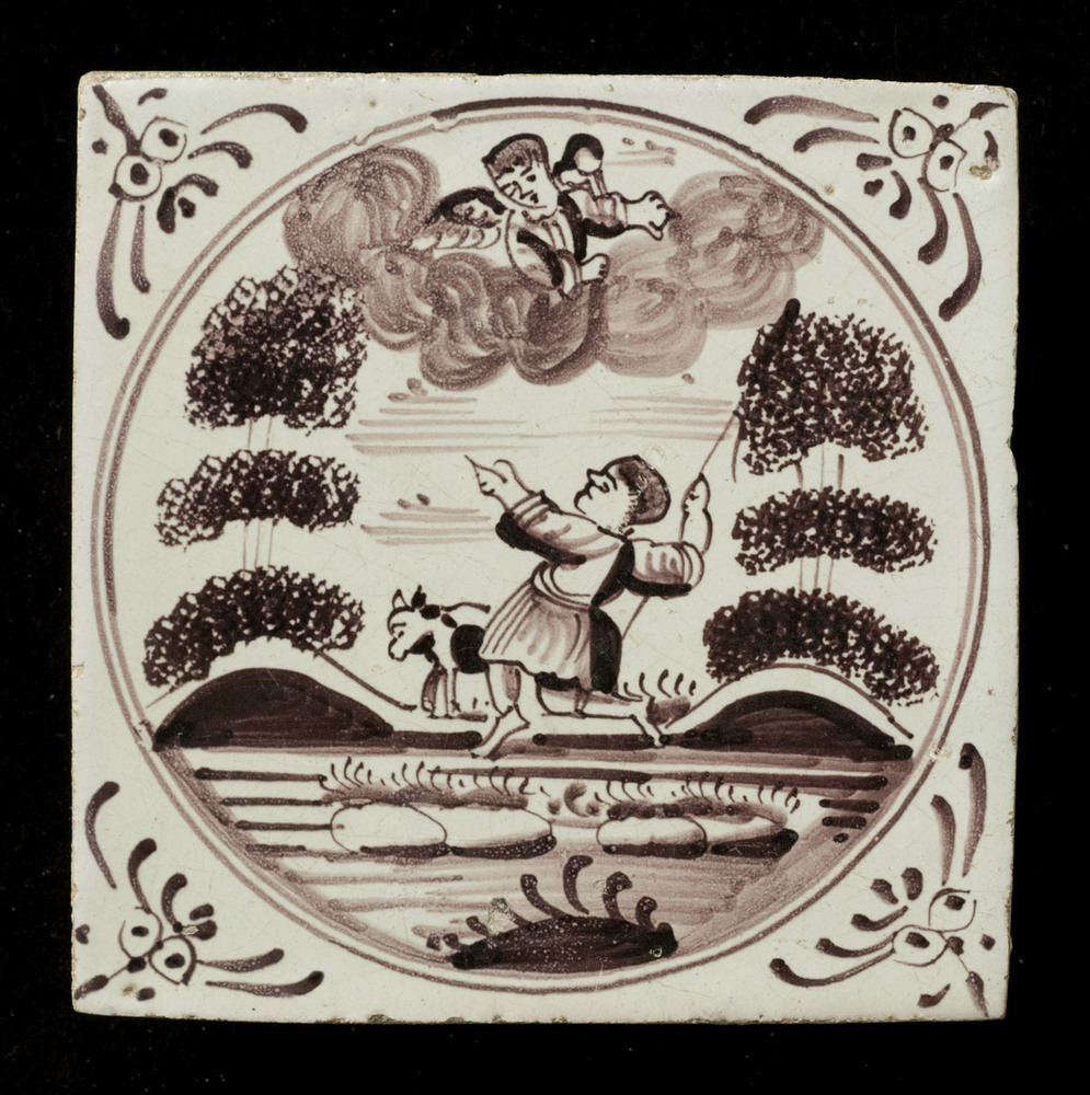 Tegel van keramiek, tinglazuur, voorstellende een la...