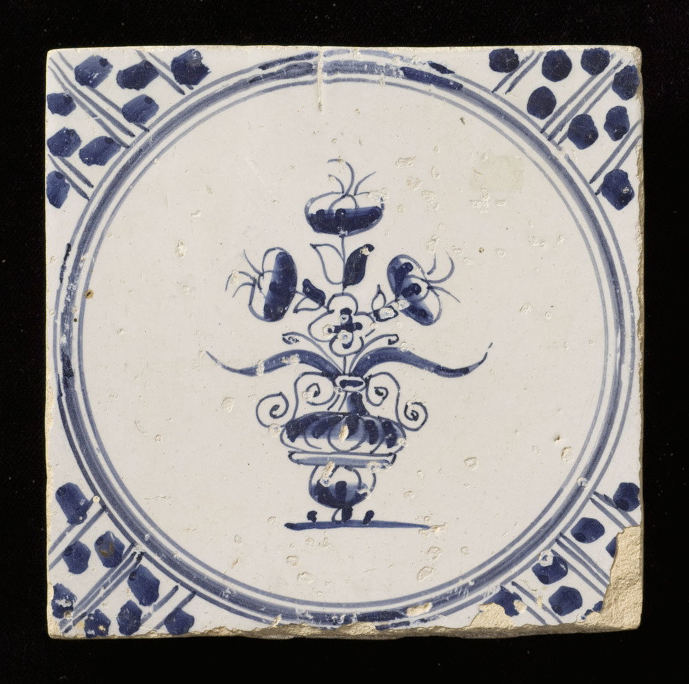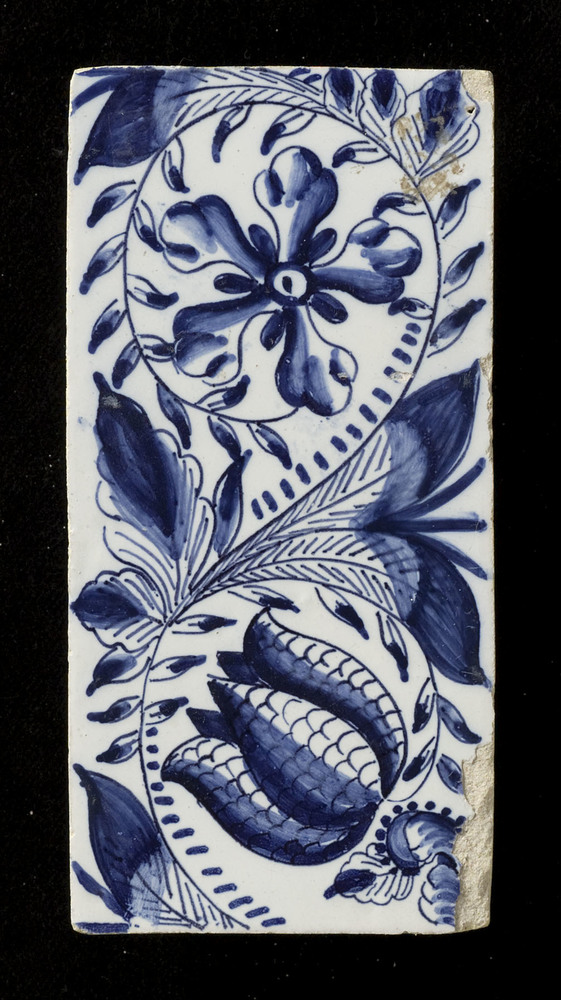 Tegel van keramiek, tinglazuur, voorstellende een bl...
