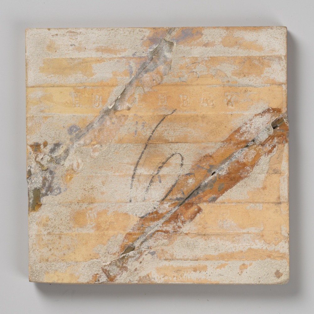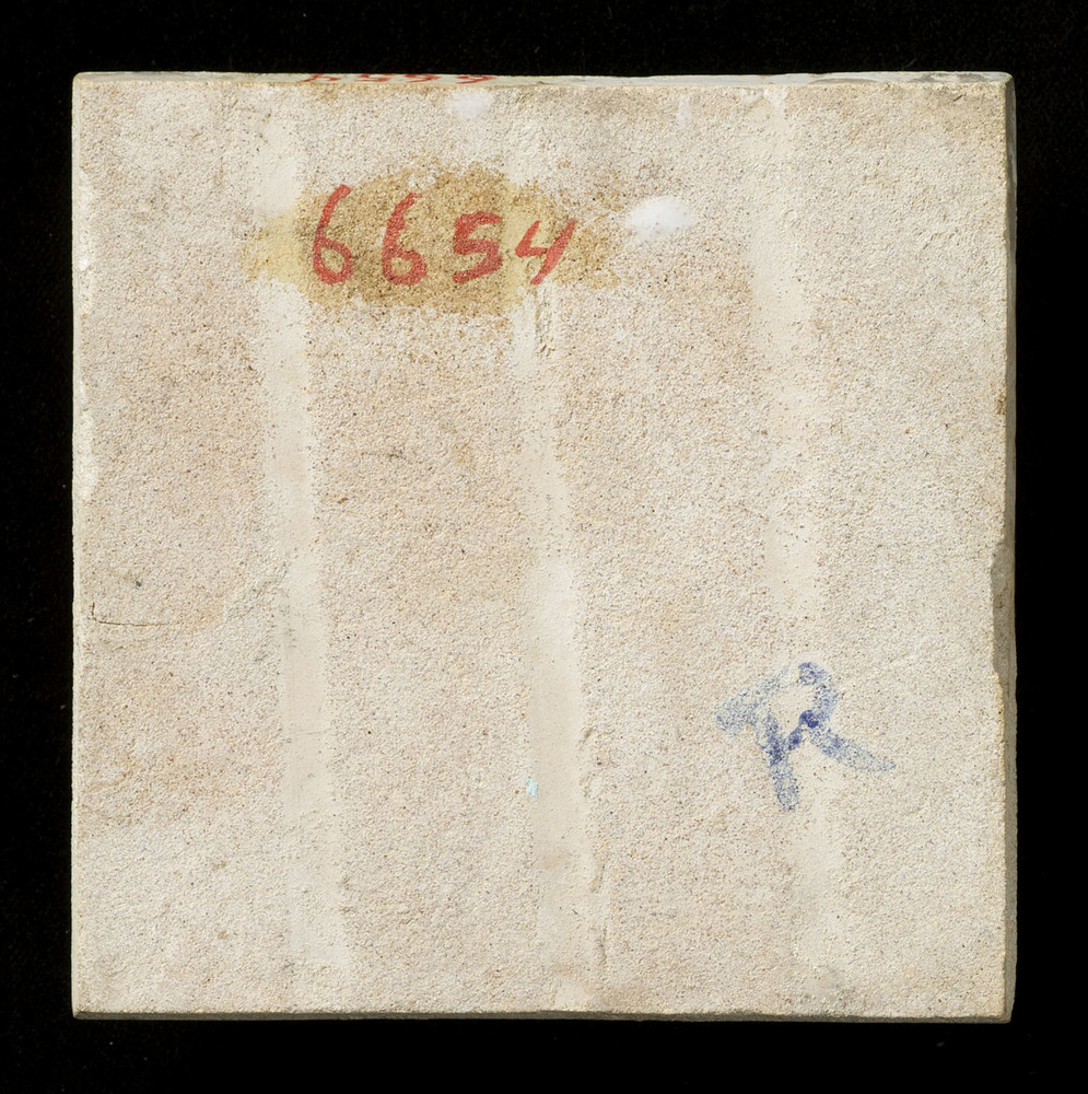 tegel van aardewerk in koudlak, voorstellende: verst...