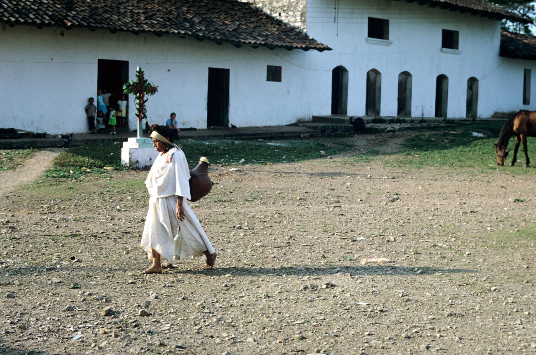 vrouw, waterkruik dragend met mecapal (draagband), p...