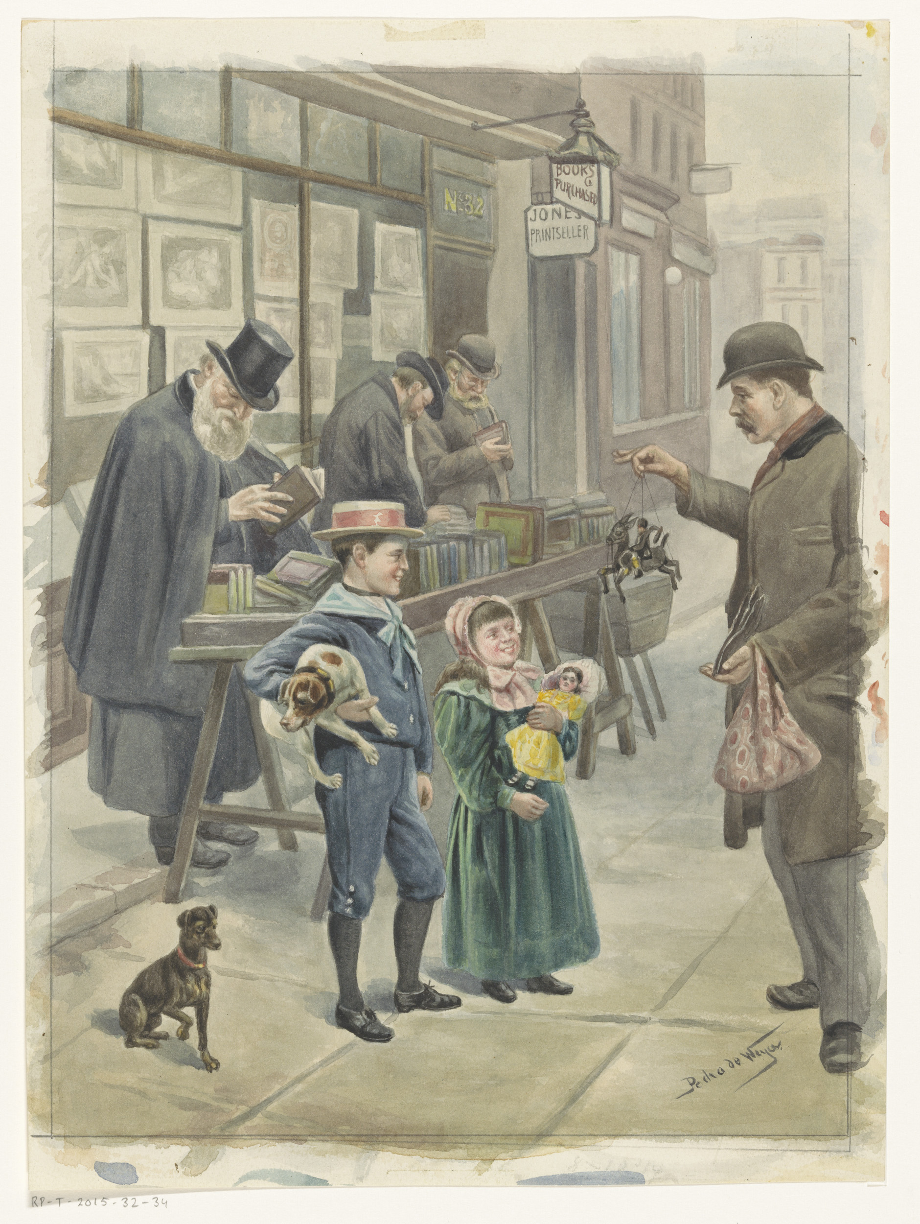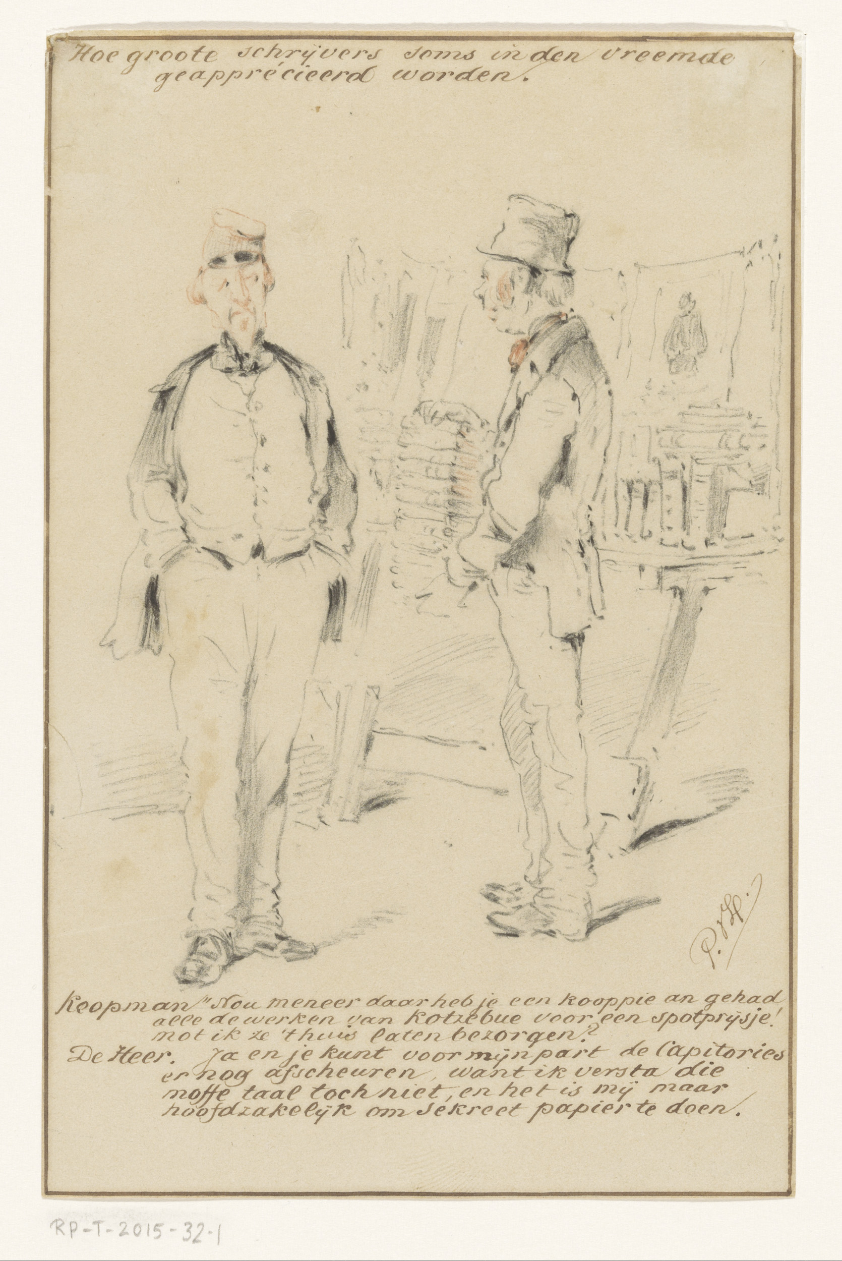 Moeder en zoon bij een kunsthandelaar