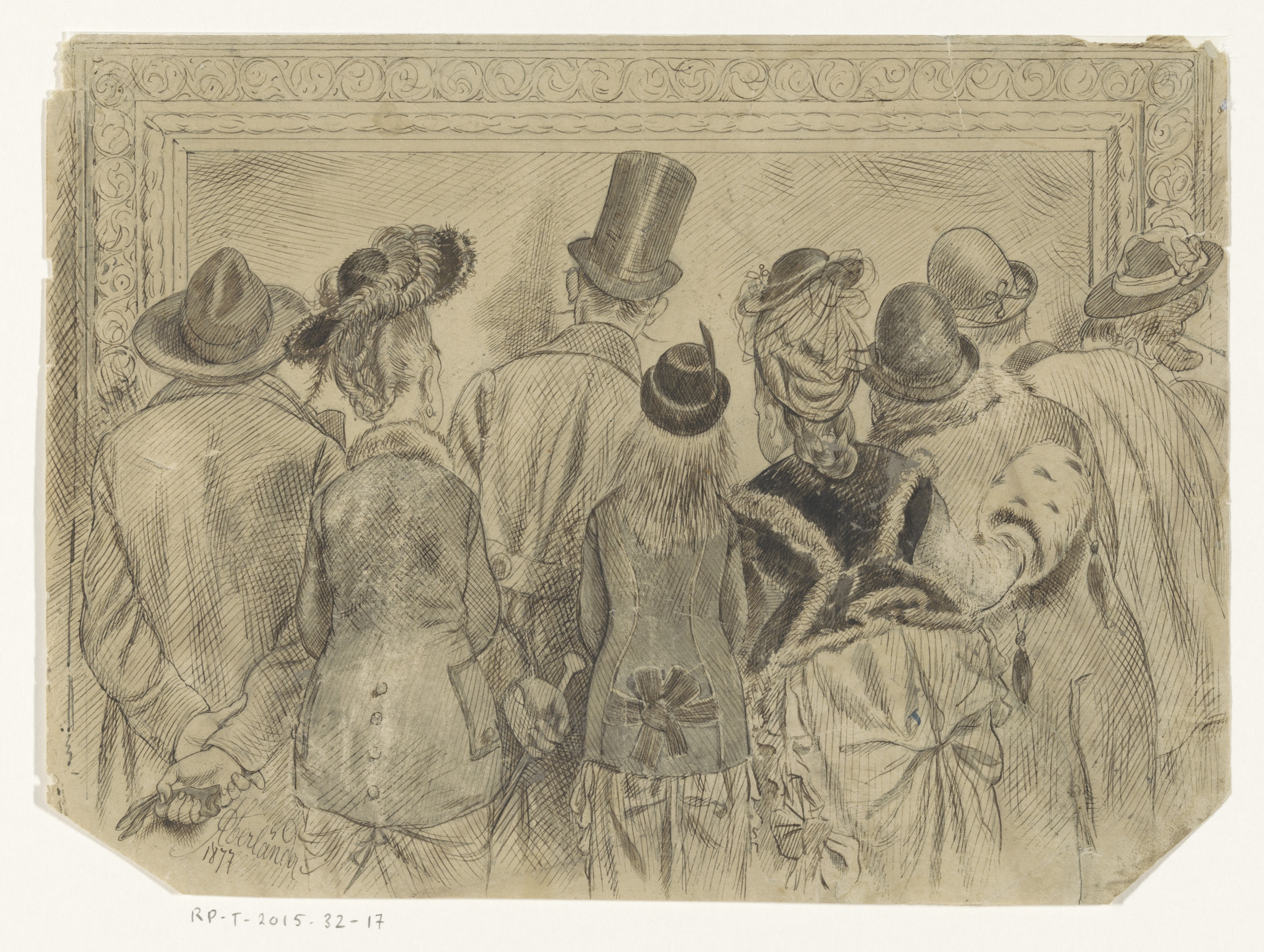 Man bekijkt een schilderij of prent met een vergroot...