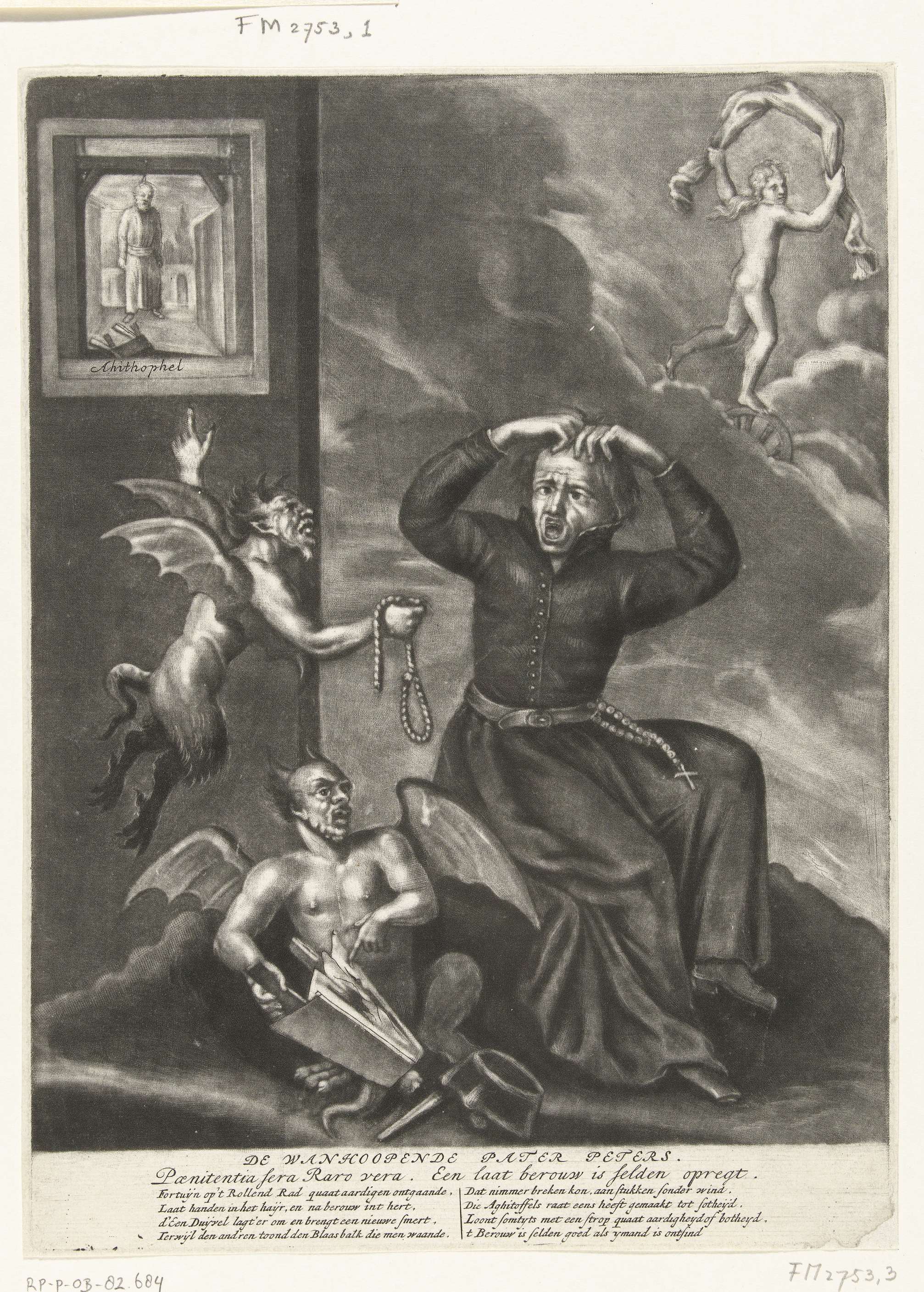Spotprent op de wanhopende pater Peters, 1689