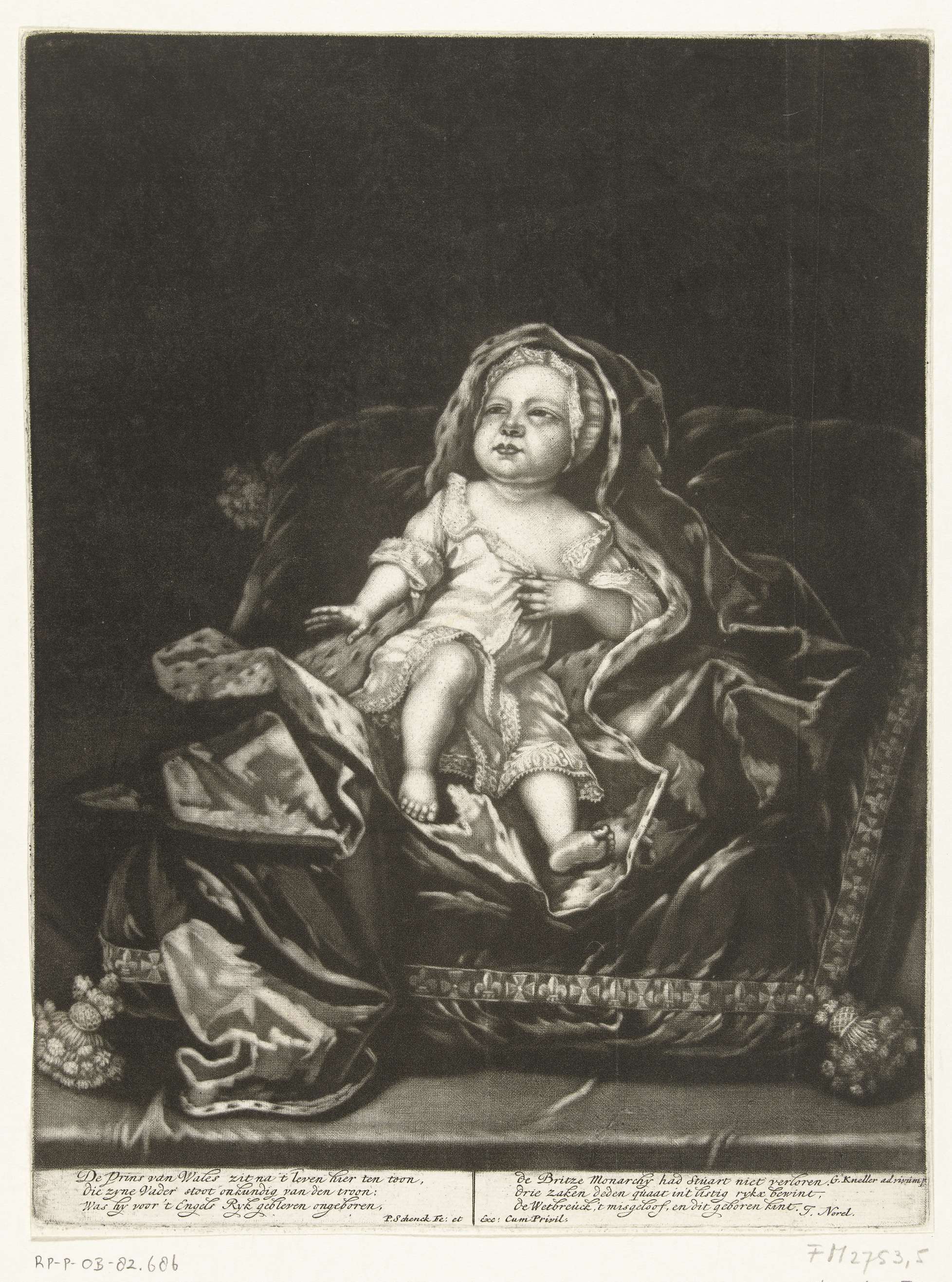 Spotprent op Lodewijk XIV in een kinderstoel, 1689