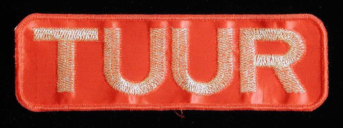 Donkerblauw fluwelen vaandel met applicaties, oranje...