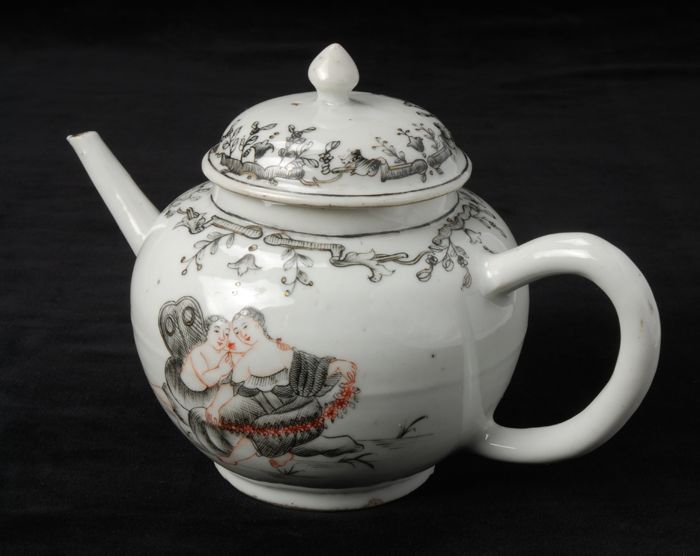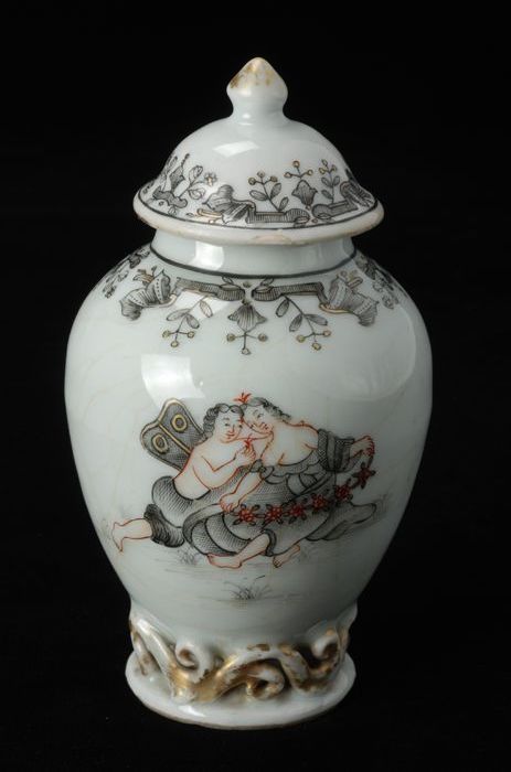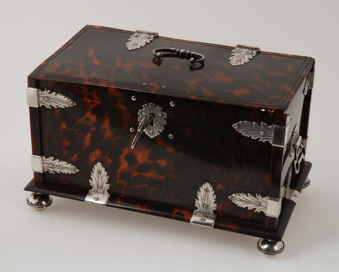Koloniaal schildpadkistje inhoudend drie zilveren th...