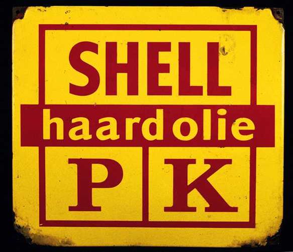 Rechthoekig emaillen reclamebord, geel fond met rode...