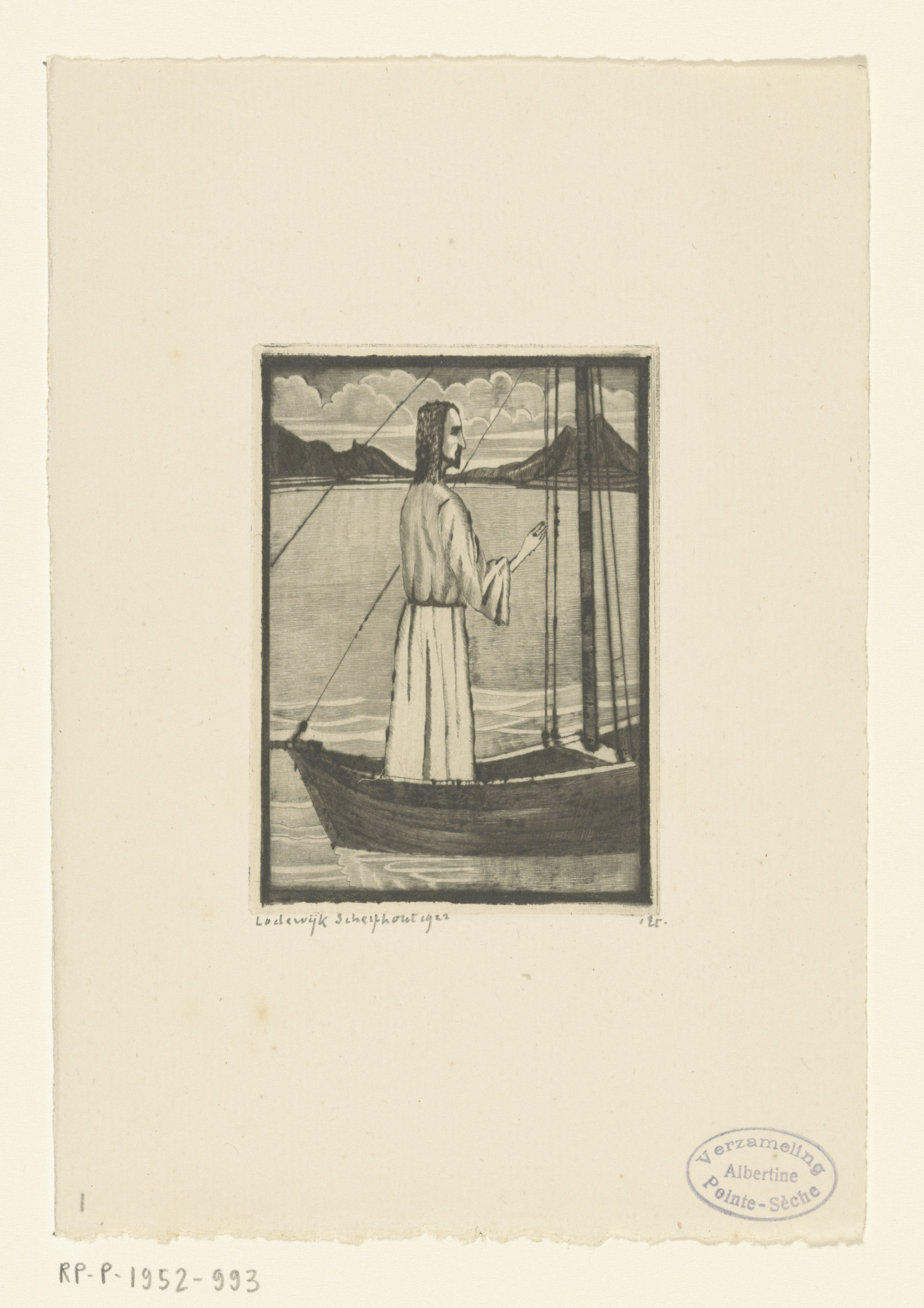 Christus, staand in een schip