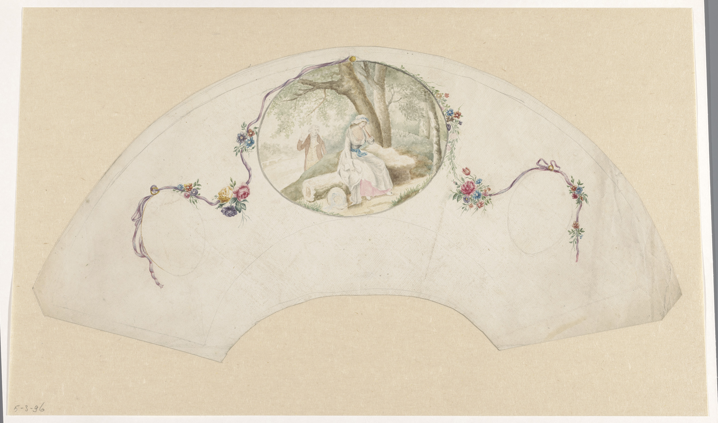 Ontwerp voor een waaier met een slapende vrouw en ee...