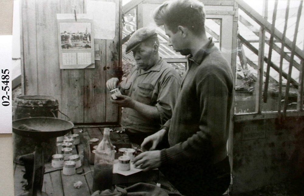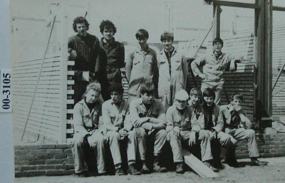 Twaalf jongens tijdens de bouw van het verblijf Jong...