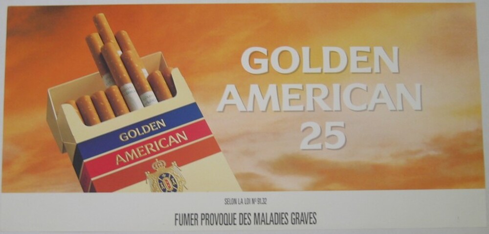 Reclameposter op papier van het merk GOLDEN AMERICAN...