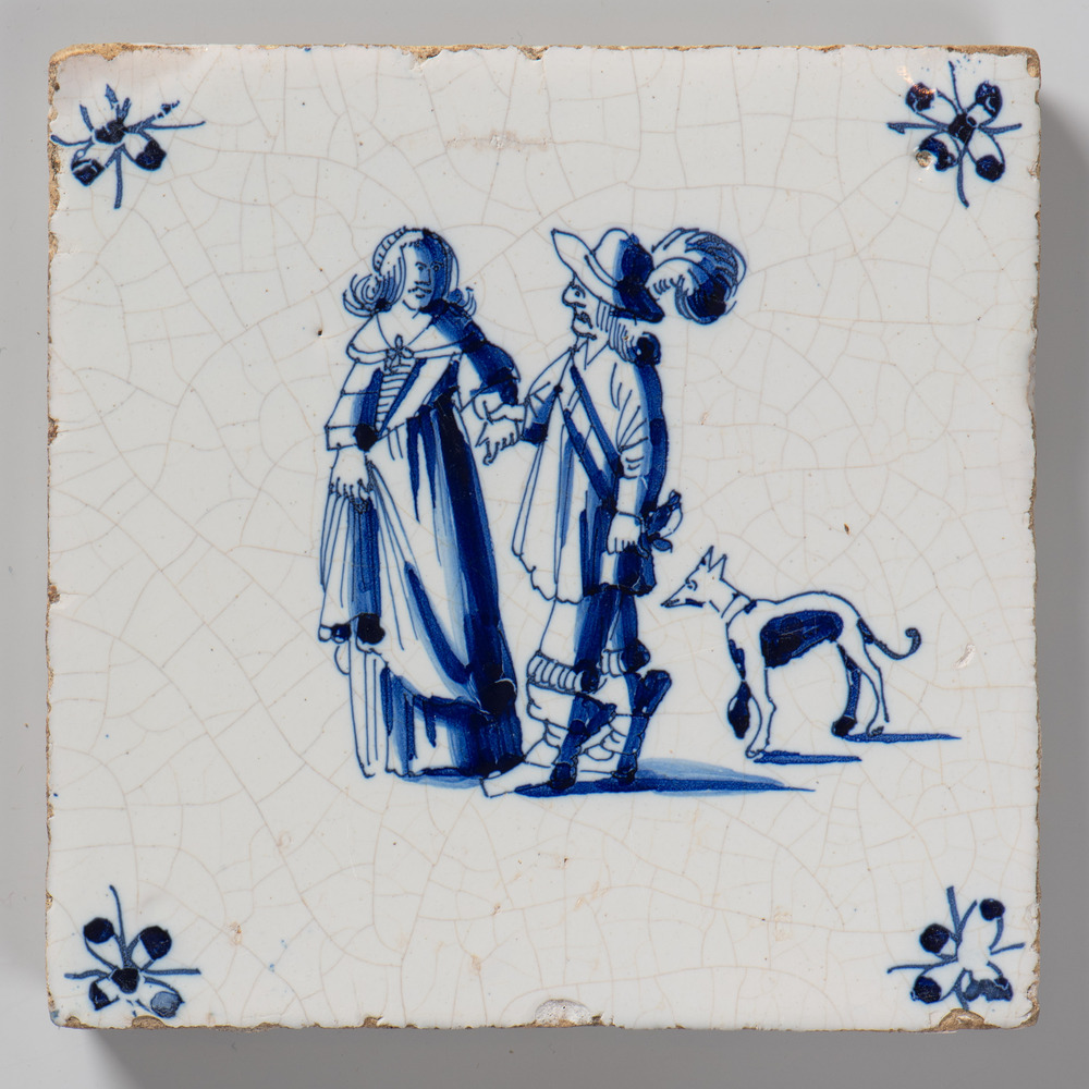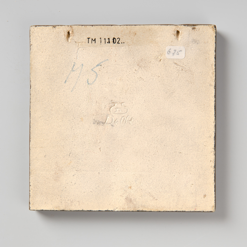 tegel van aardewerk met tinglazuur, voorstellende: m...