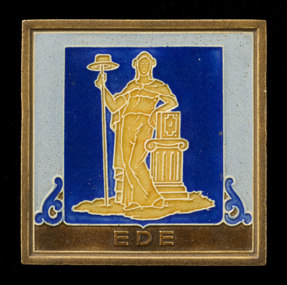 tegel van keramiek met tinglazuur, voorstellende: or...