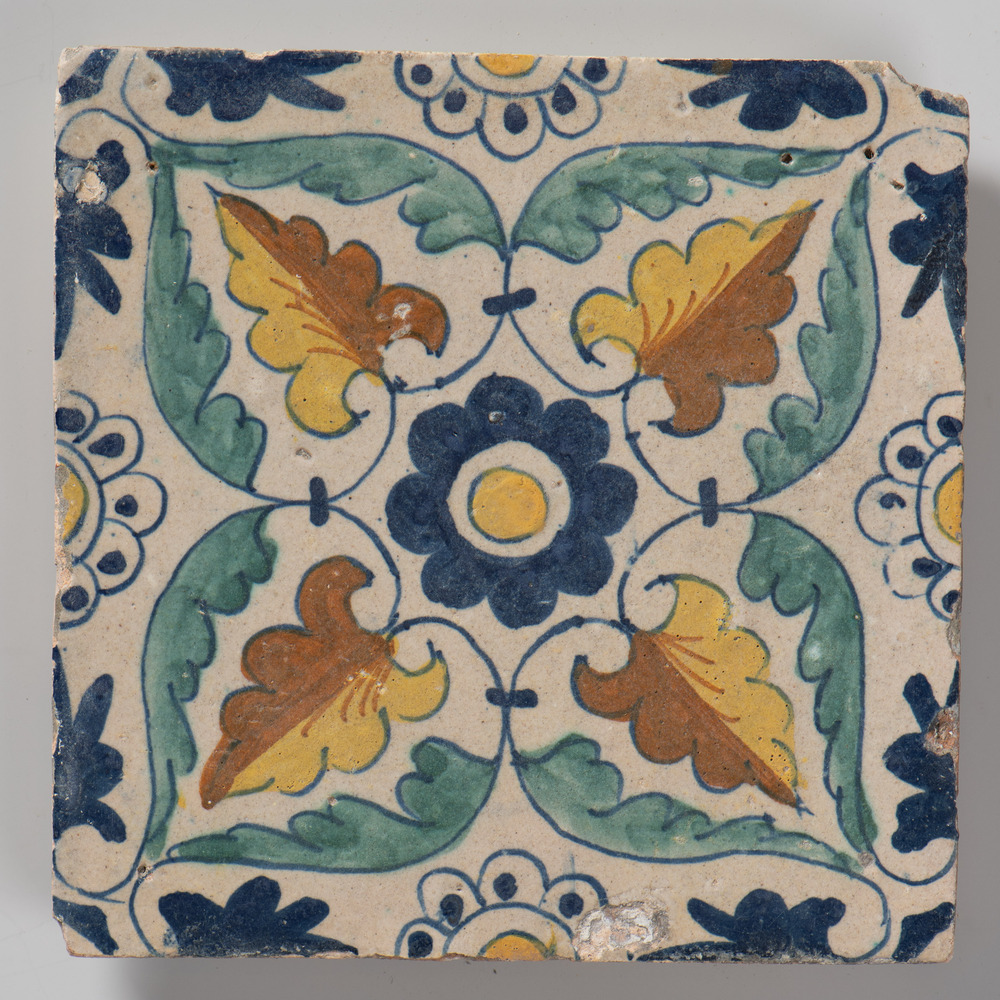 tegel van aardewerk met tinglazuur, voorstellende: l...