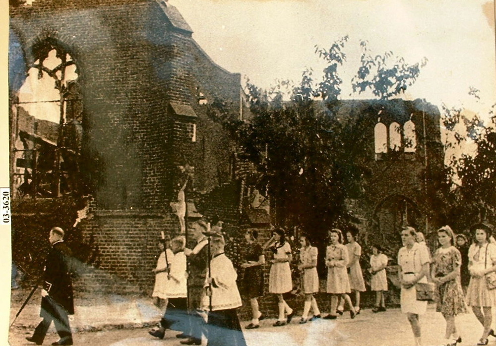 Opname van de in 1943 verwoeste stads parochiekerk v...