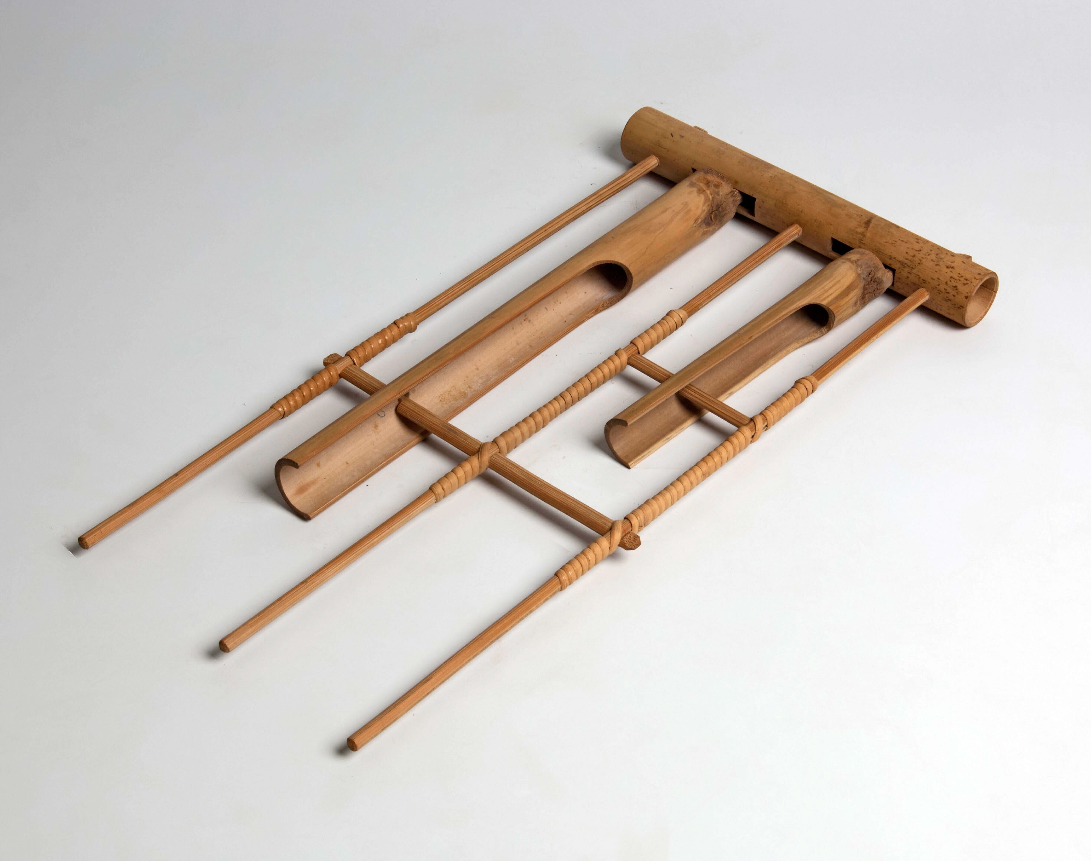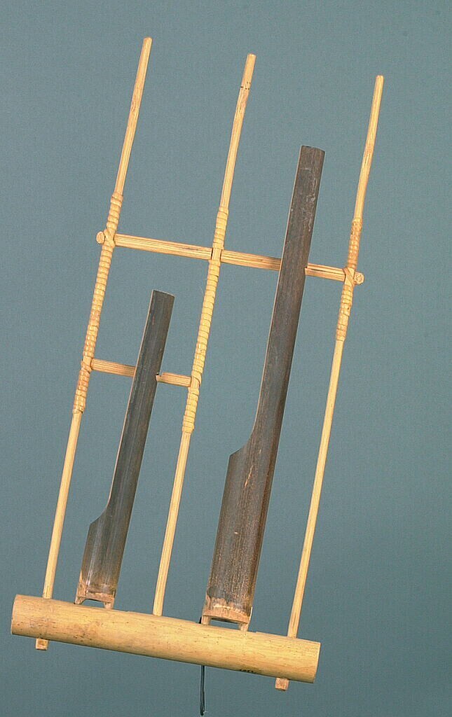 Indo-javaanse bronzen tempelklok met topstuk in de v...