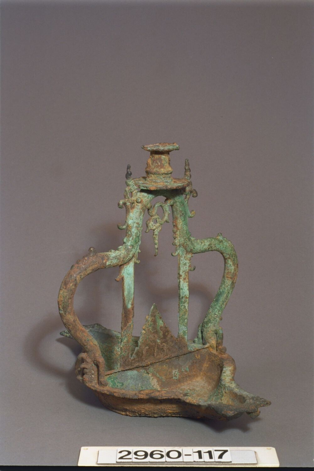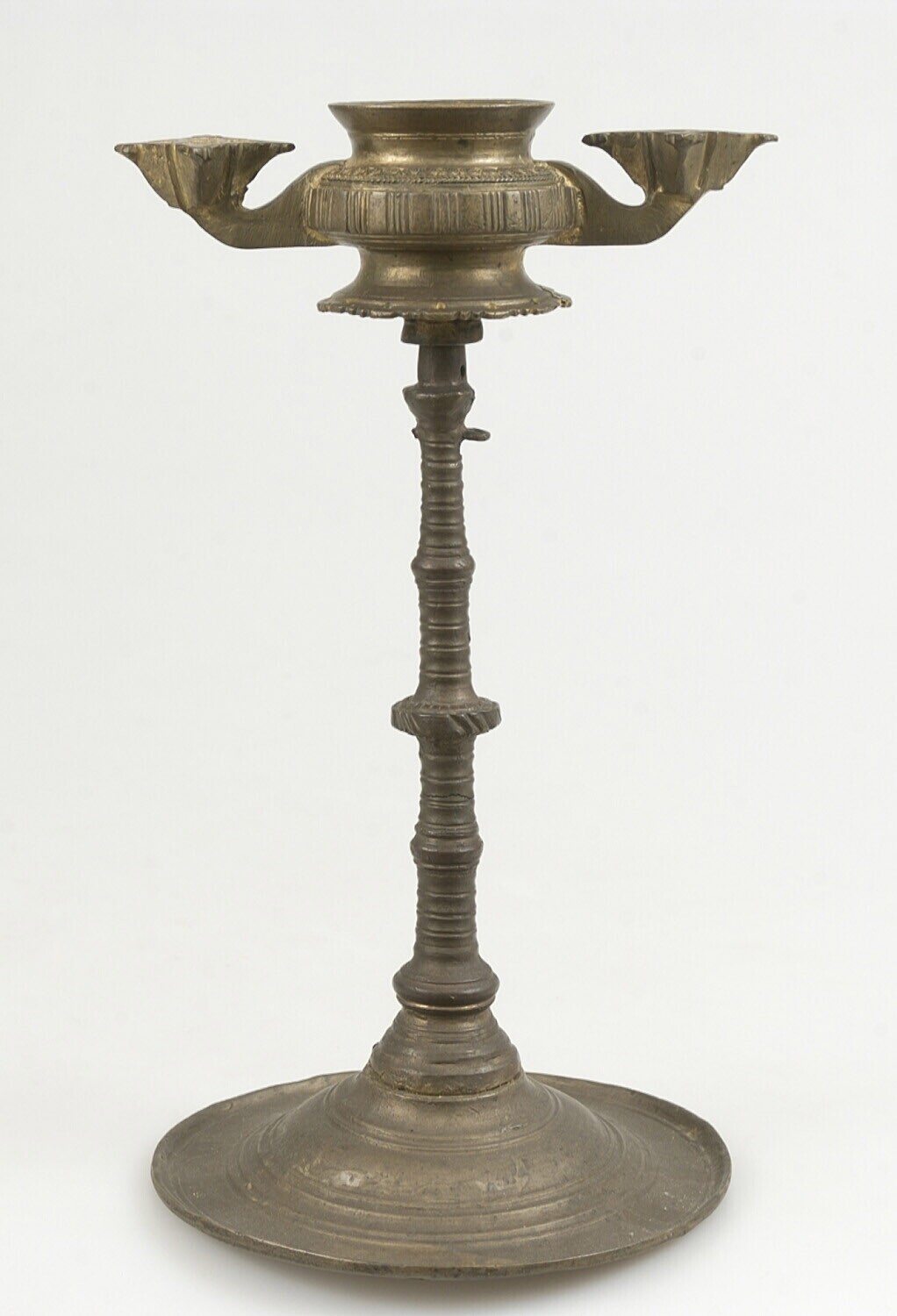 Indo-Javaans middenstuk van een lamp met 2 tuiten wi...