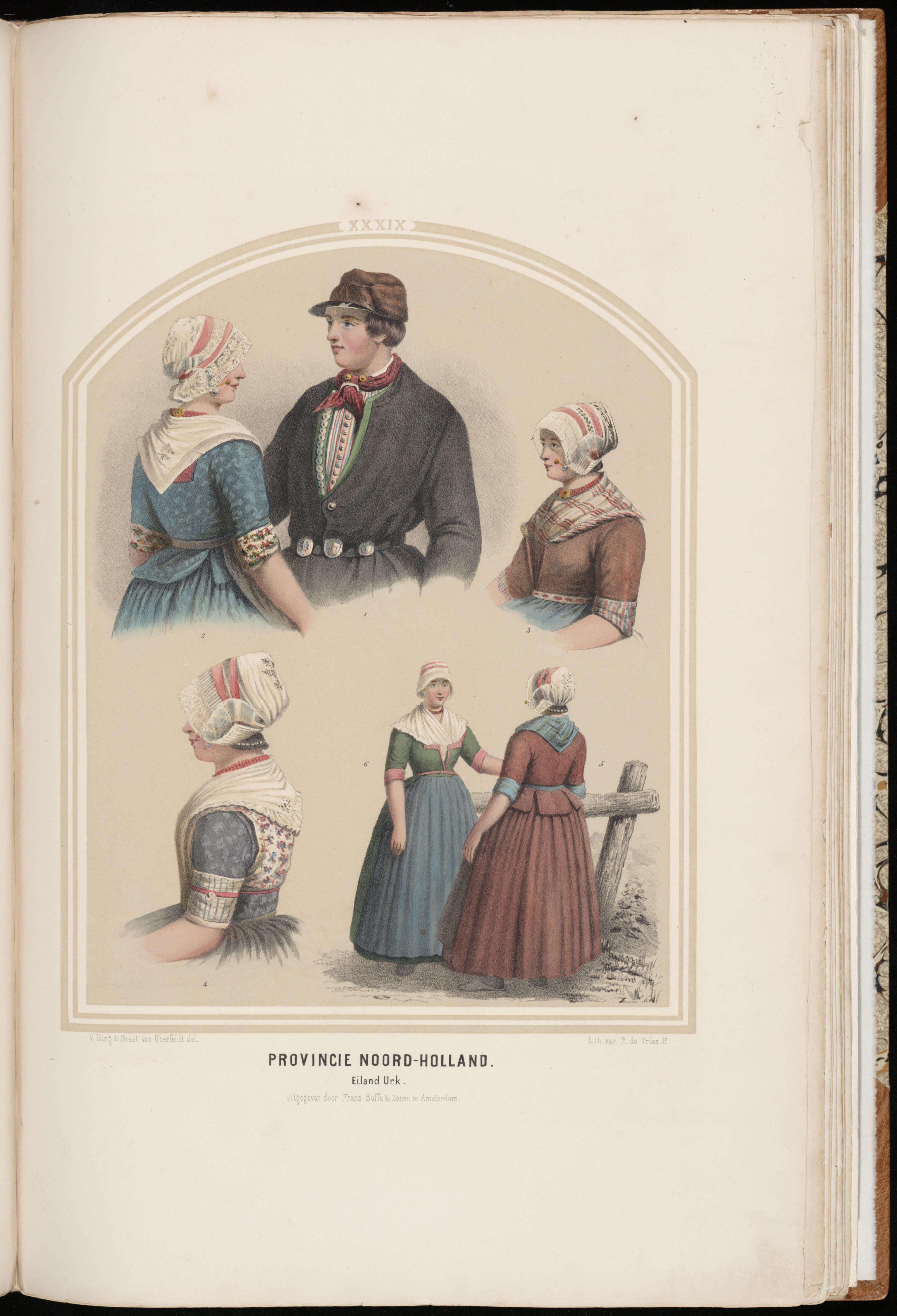 Diverse figuren in de dracht van Urk (lithografie (p...