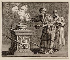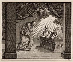 Voorhof van Salomo´s tempel met de koperen zee door ...