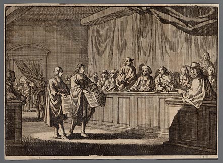 De hervormde predikanten Gillis en Courdil lezen op ...