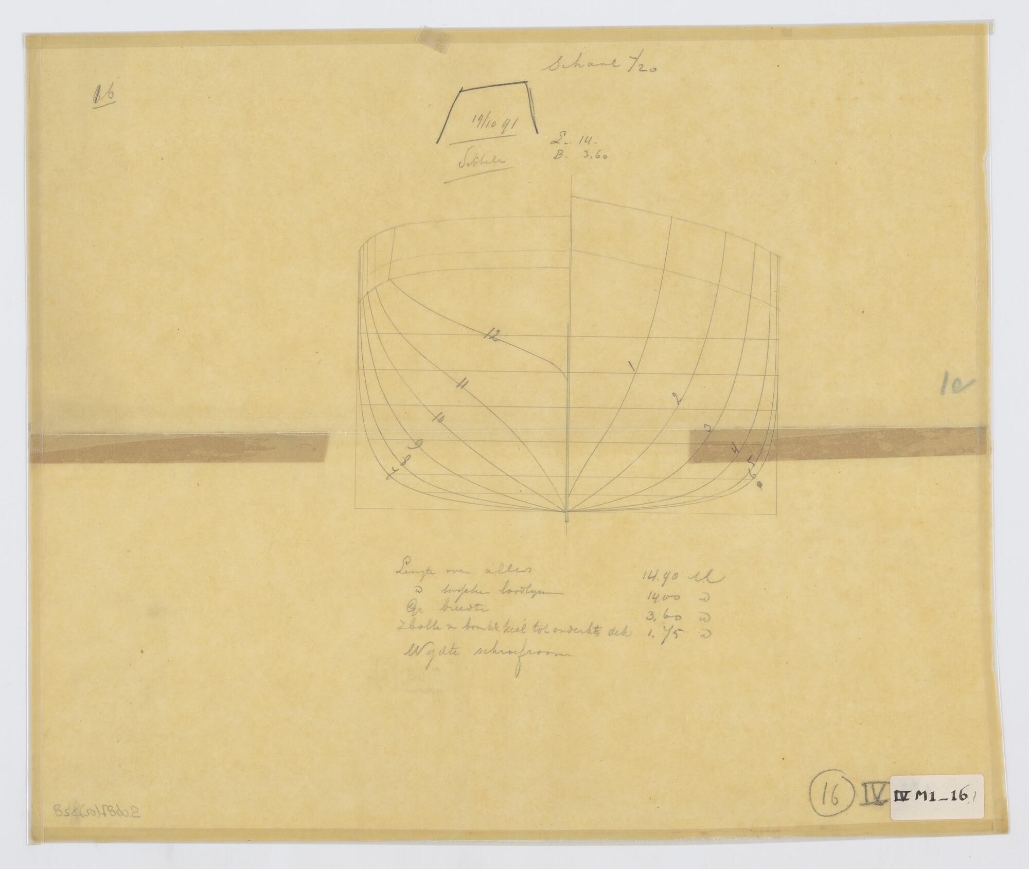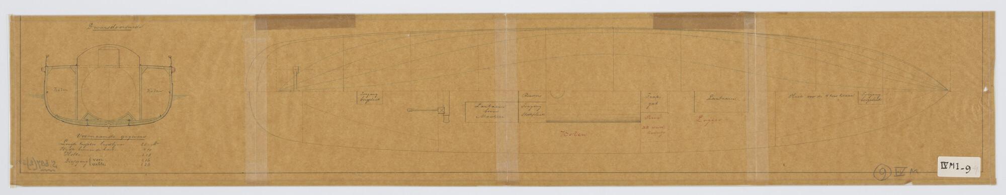 Verticale langsdoorsnede, spantenraam en waterlijnen...