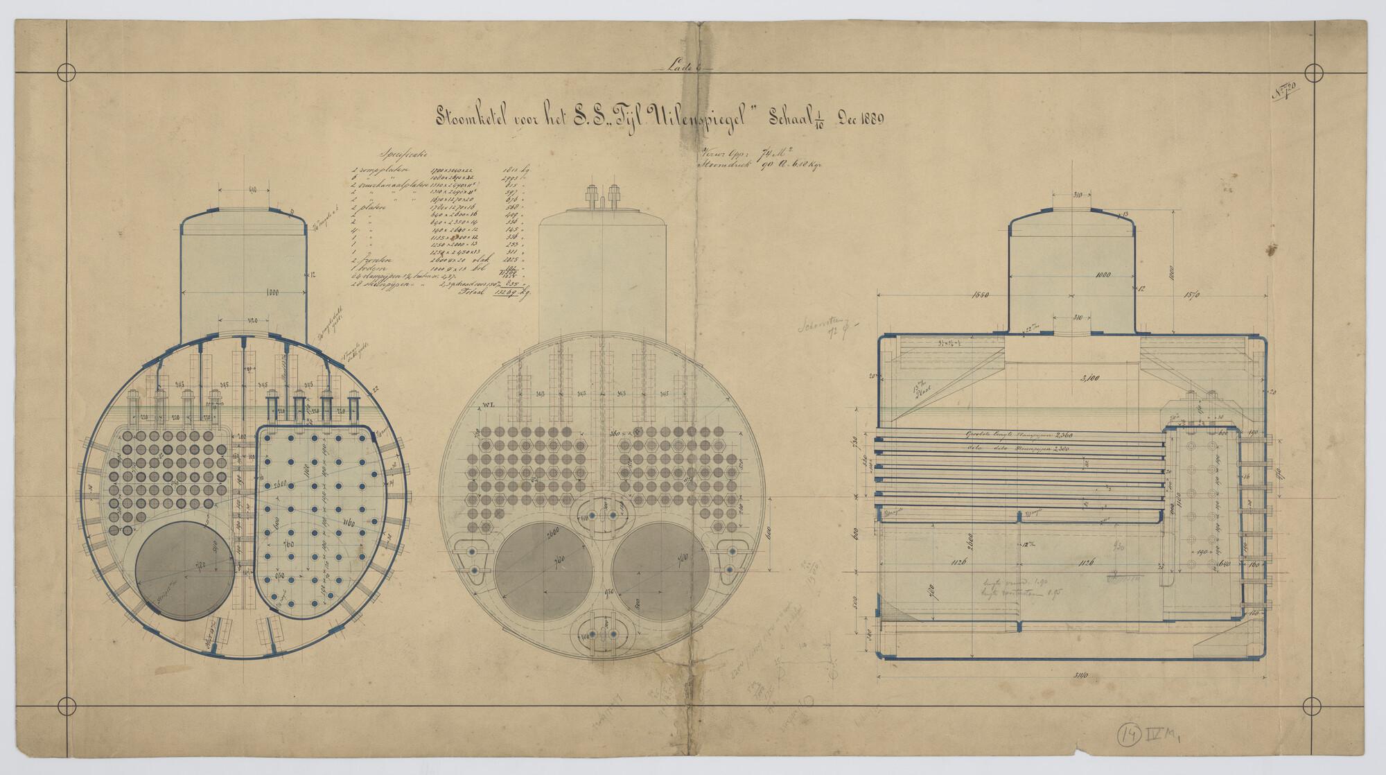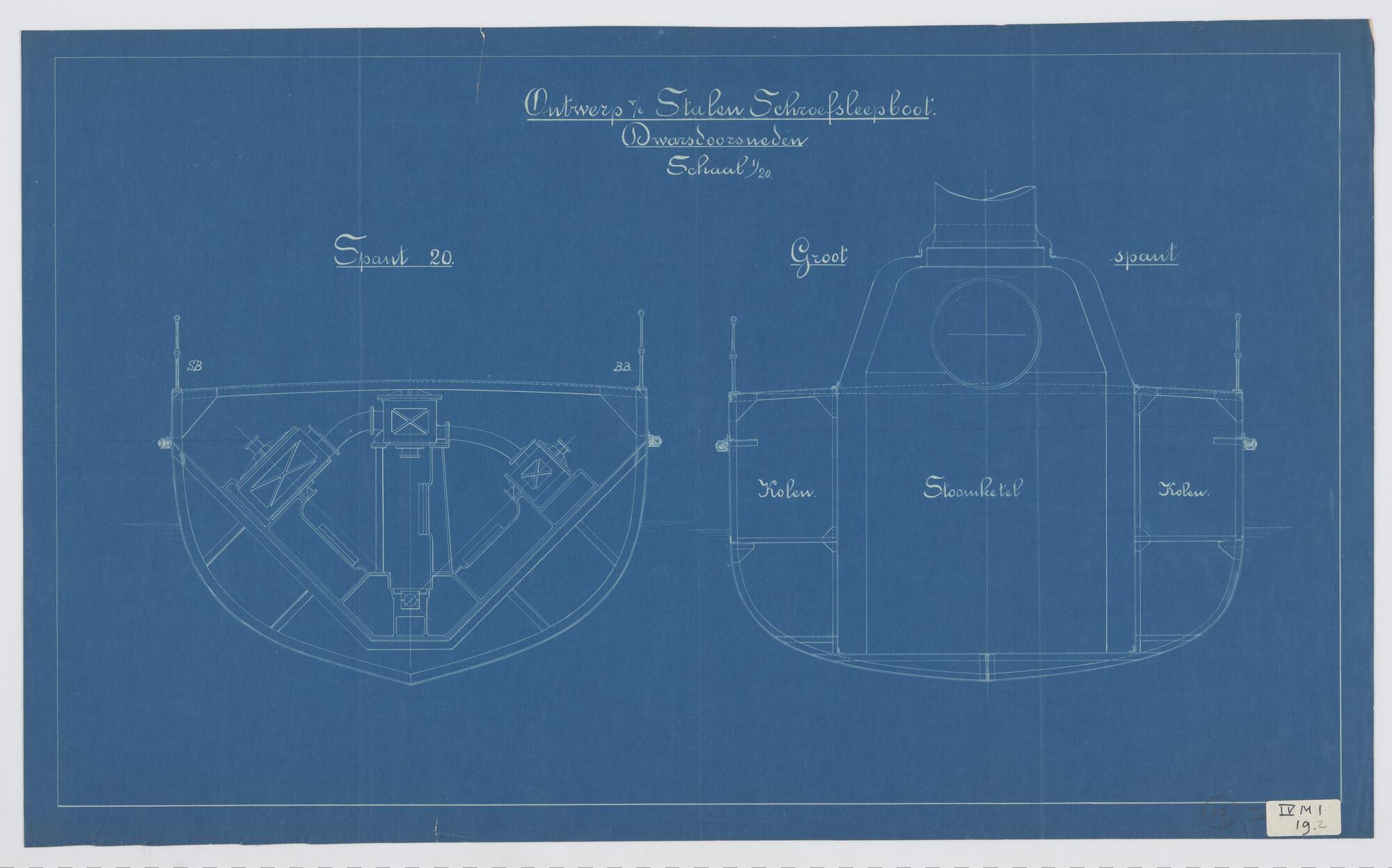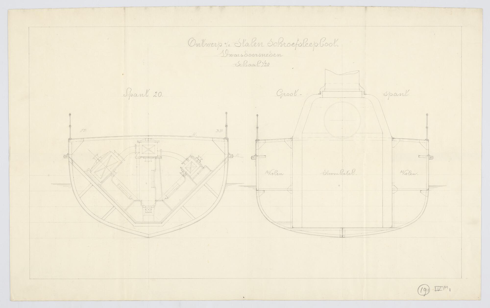 Verticale langsdoorsnede van een sleepboot 1891