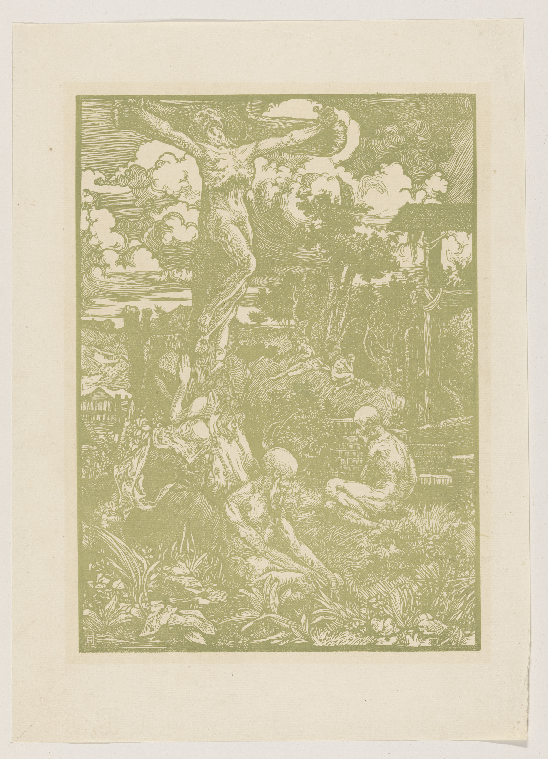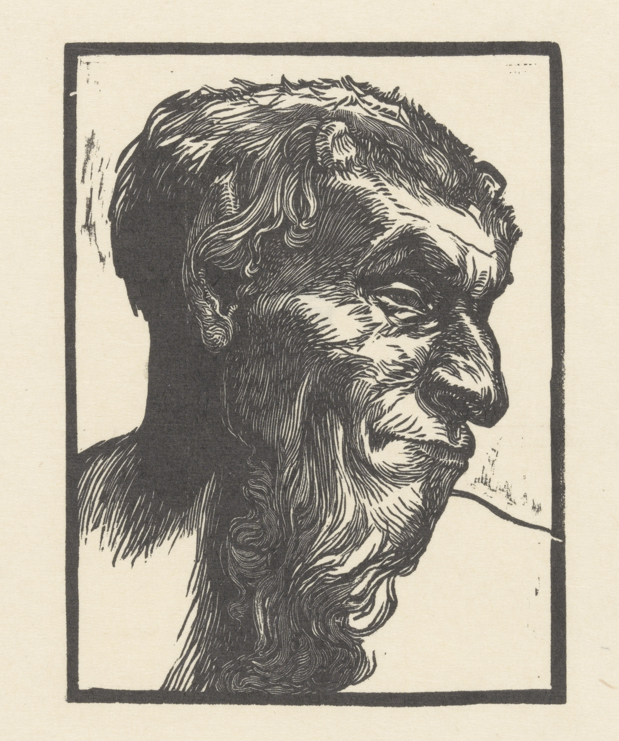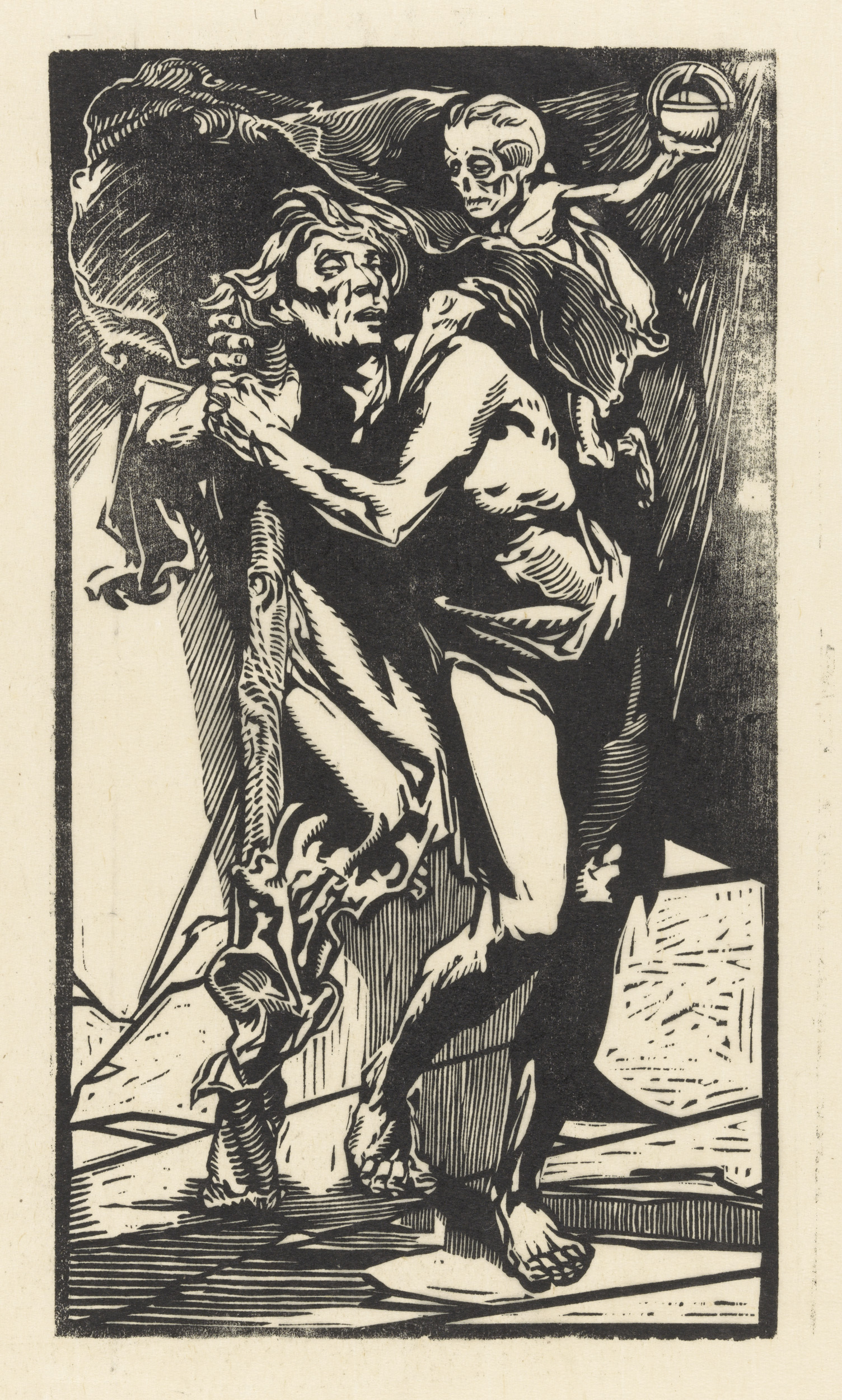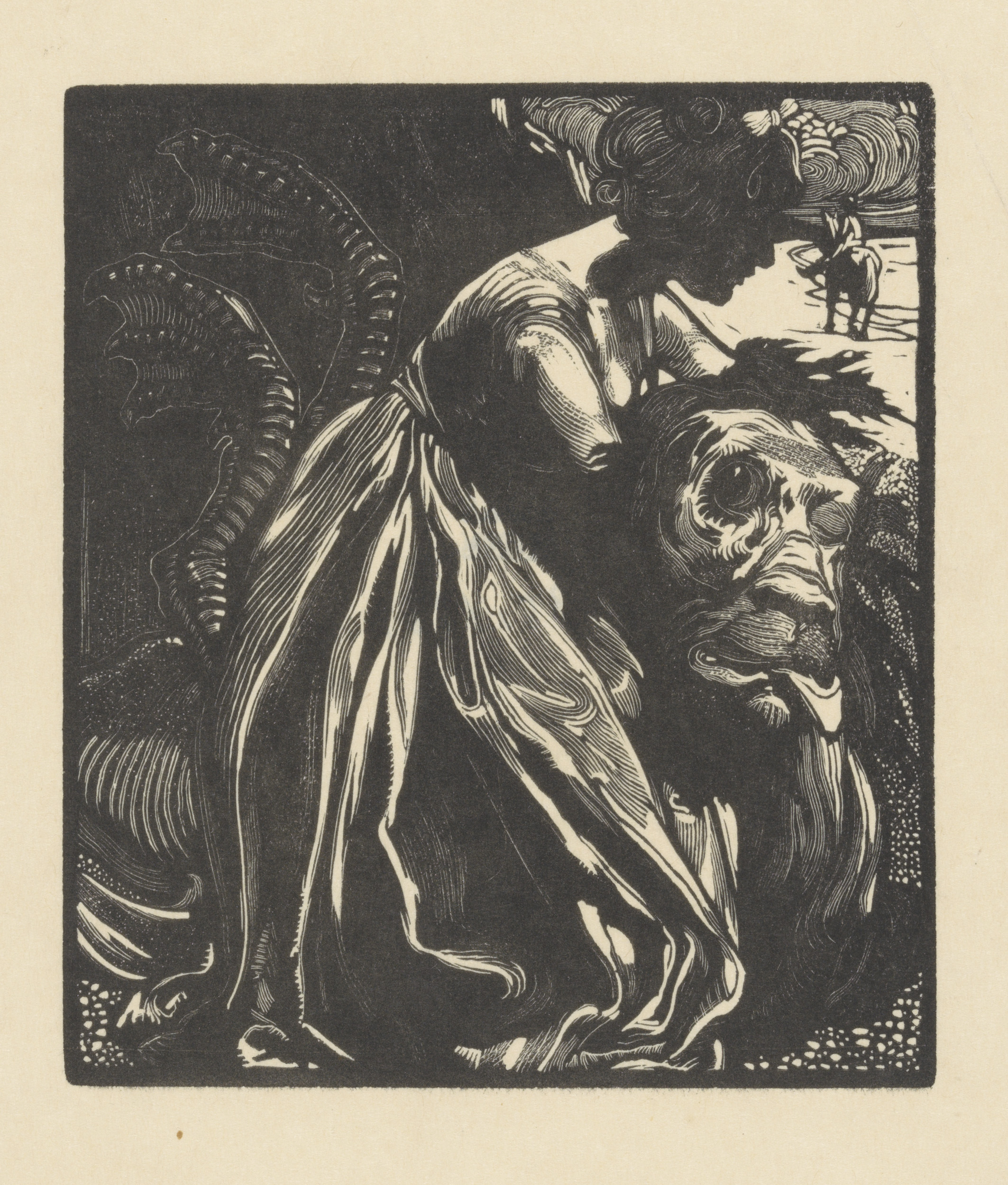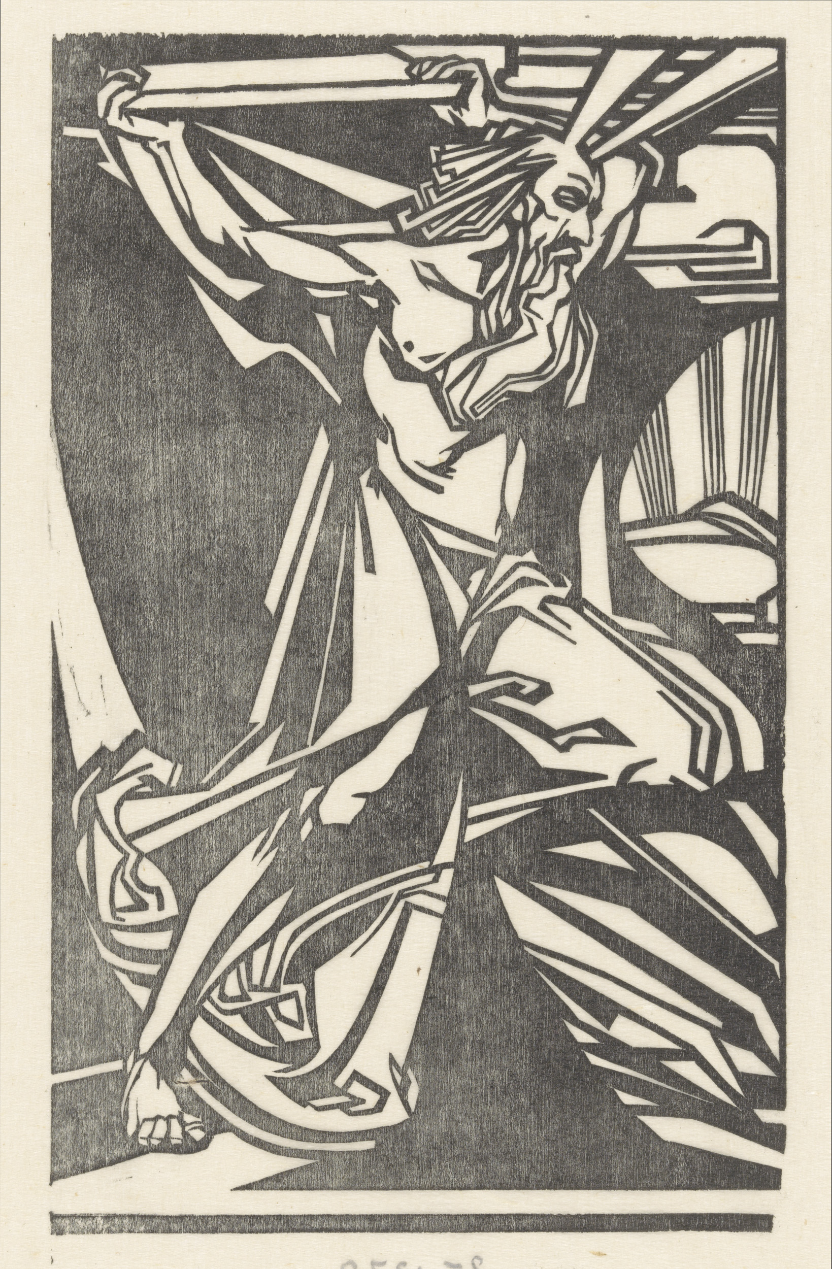 Vrouw met vier gebalde vuisten en driehoekig aureool