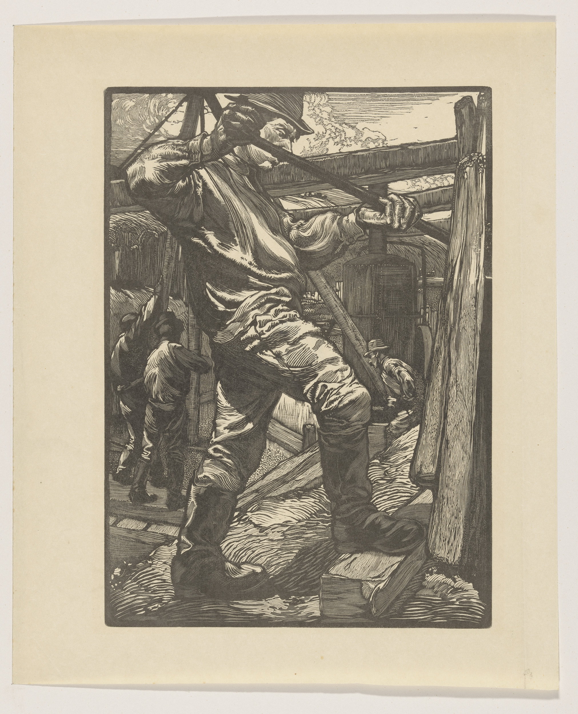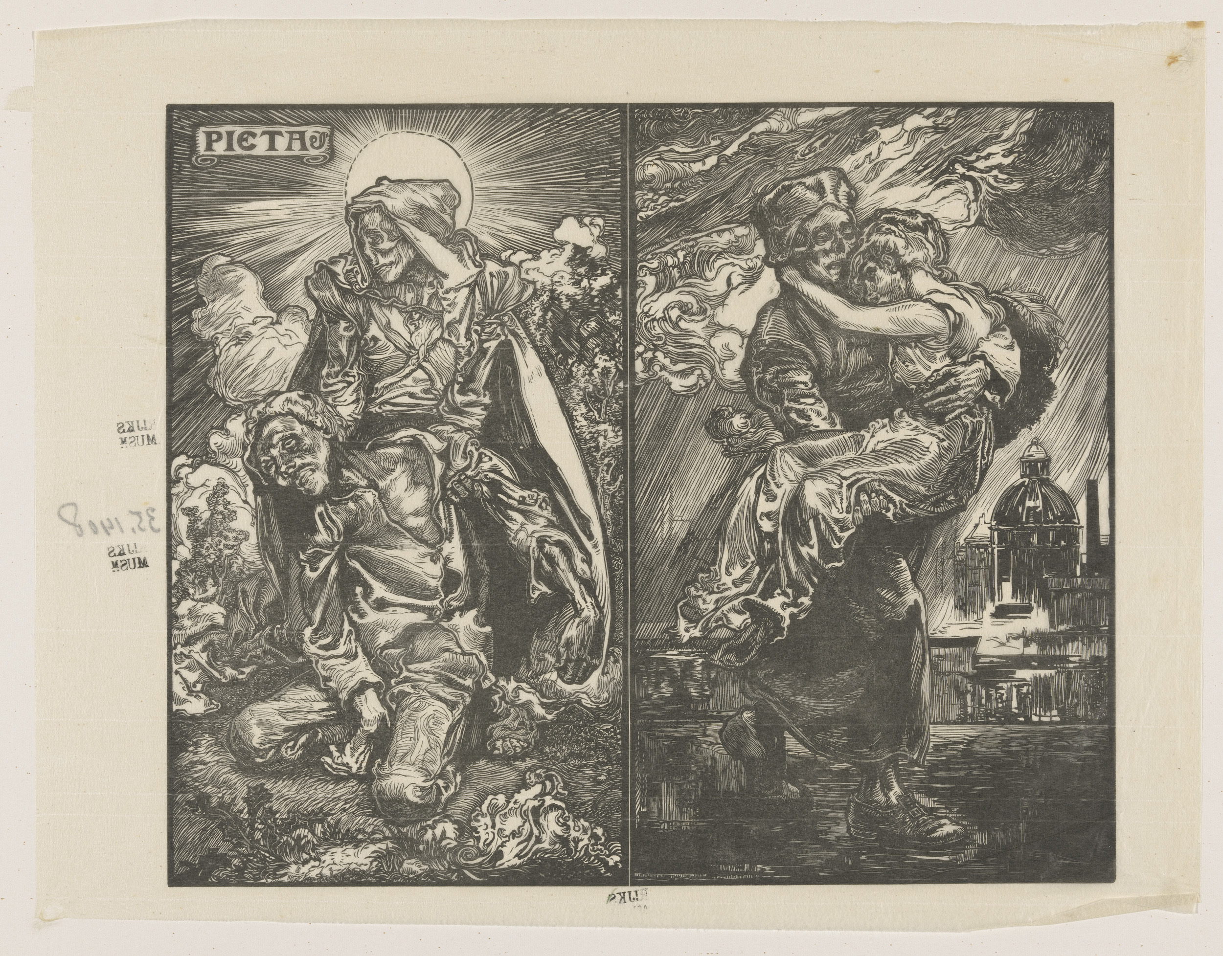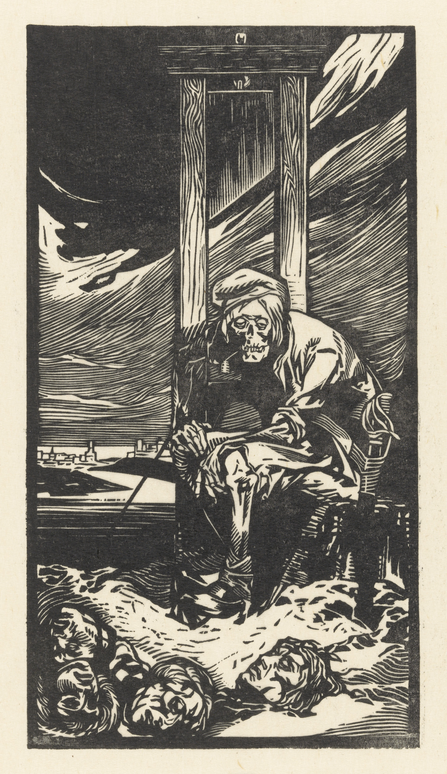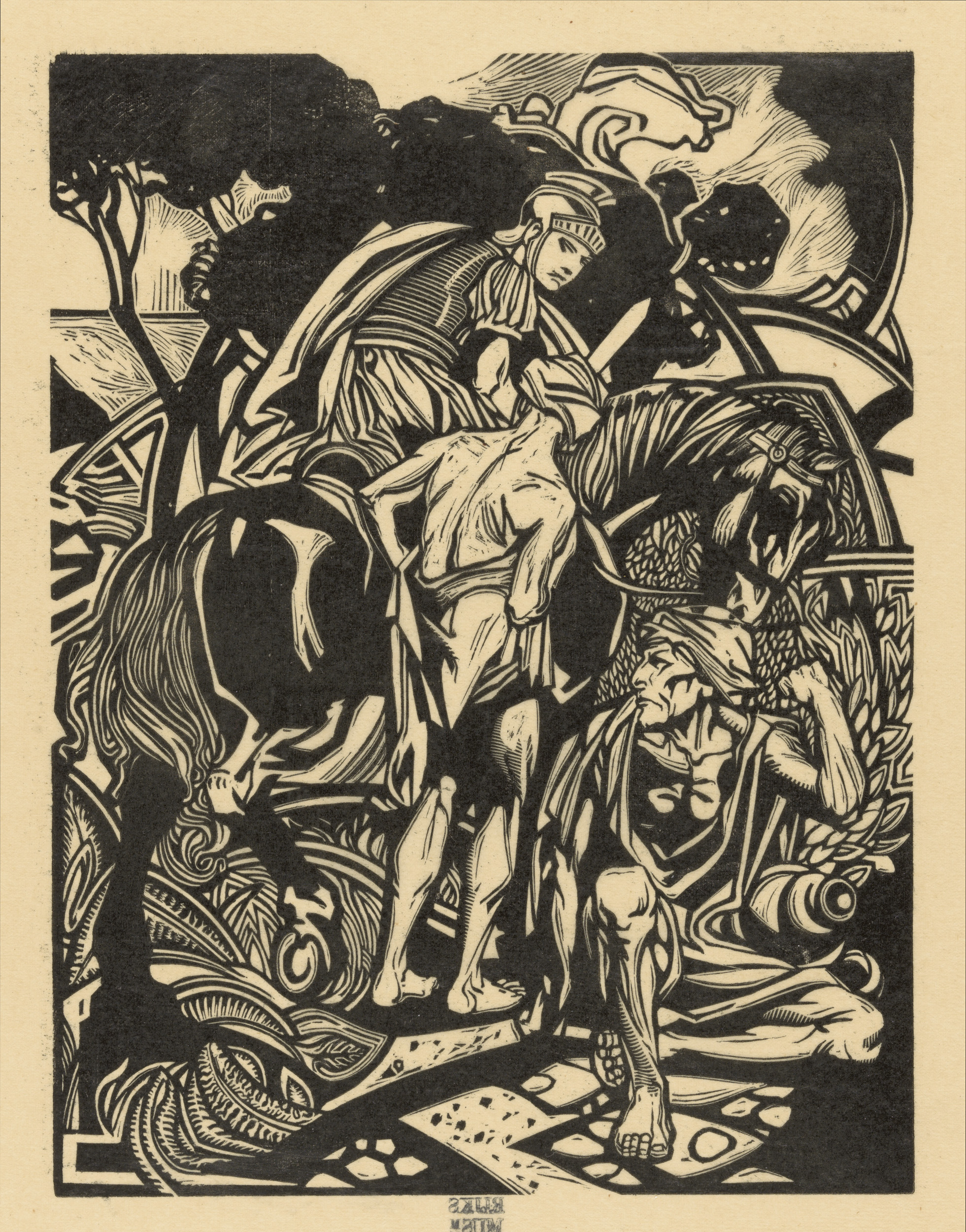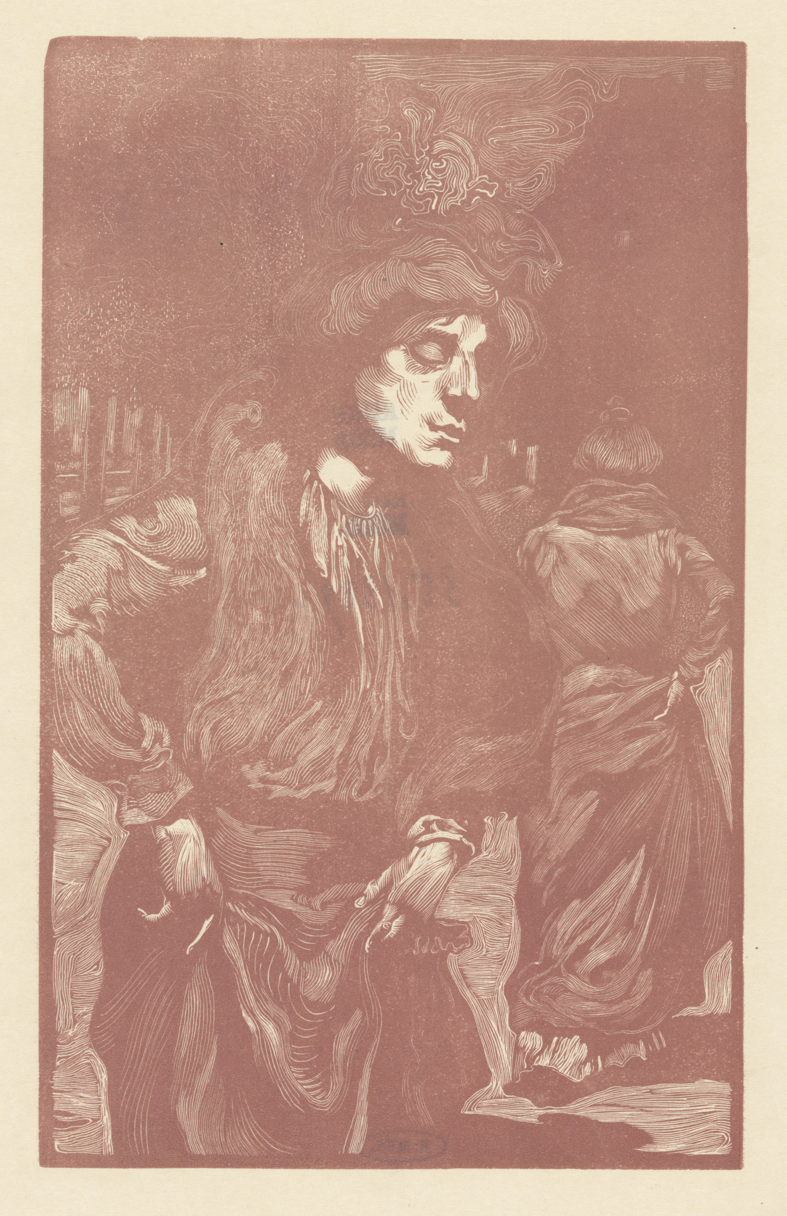 Vrouw met vier gebalde vuisten en driehoekig aureool