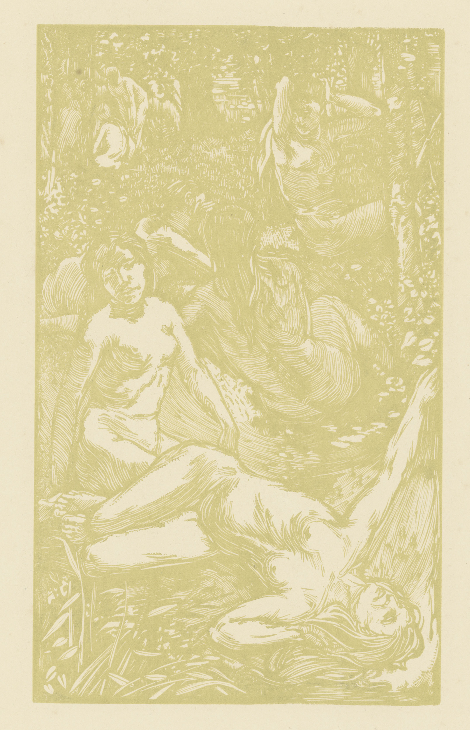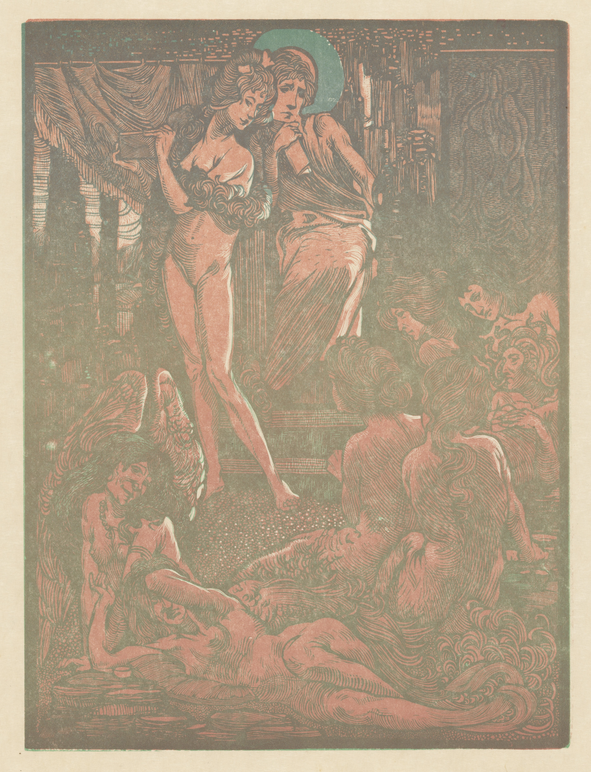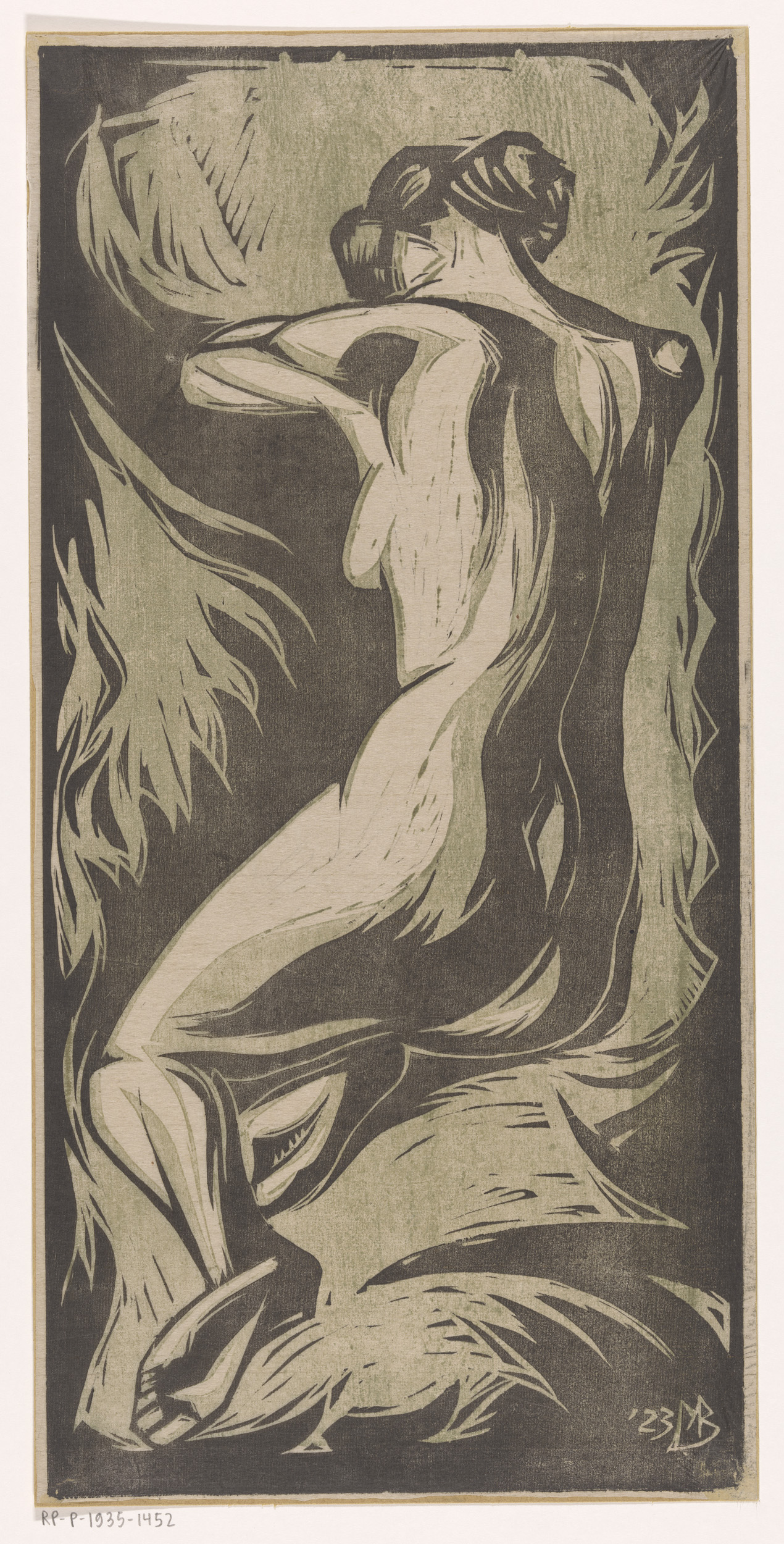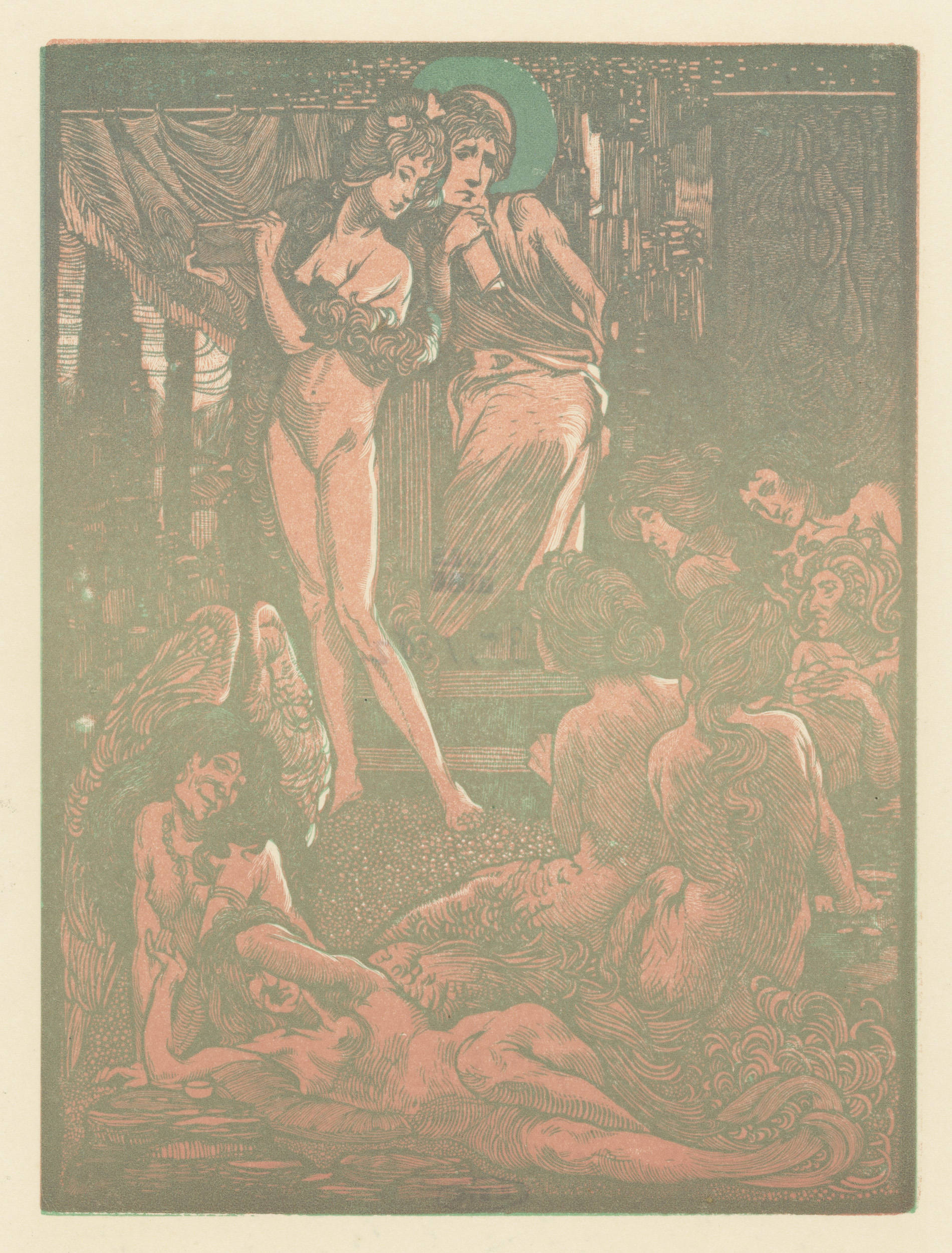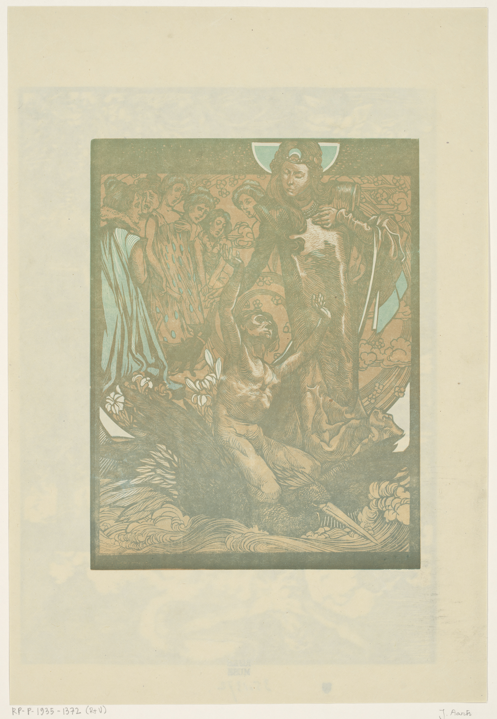 Naakte vrouw boven twee naakte vrouwen en twee gekle...