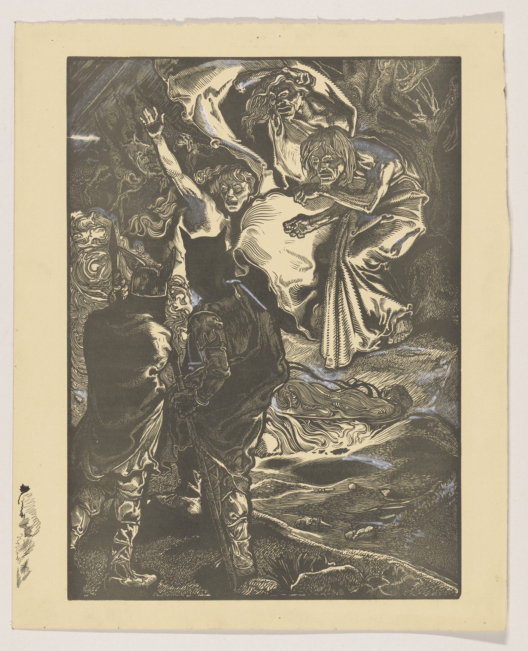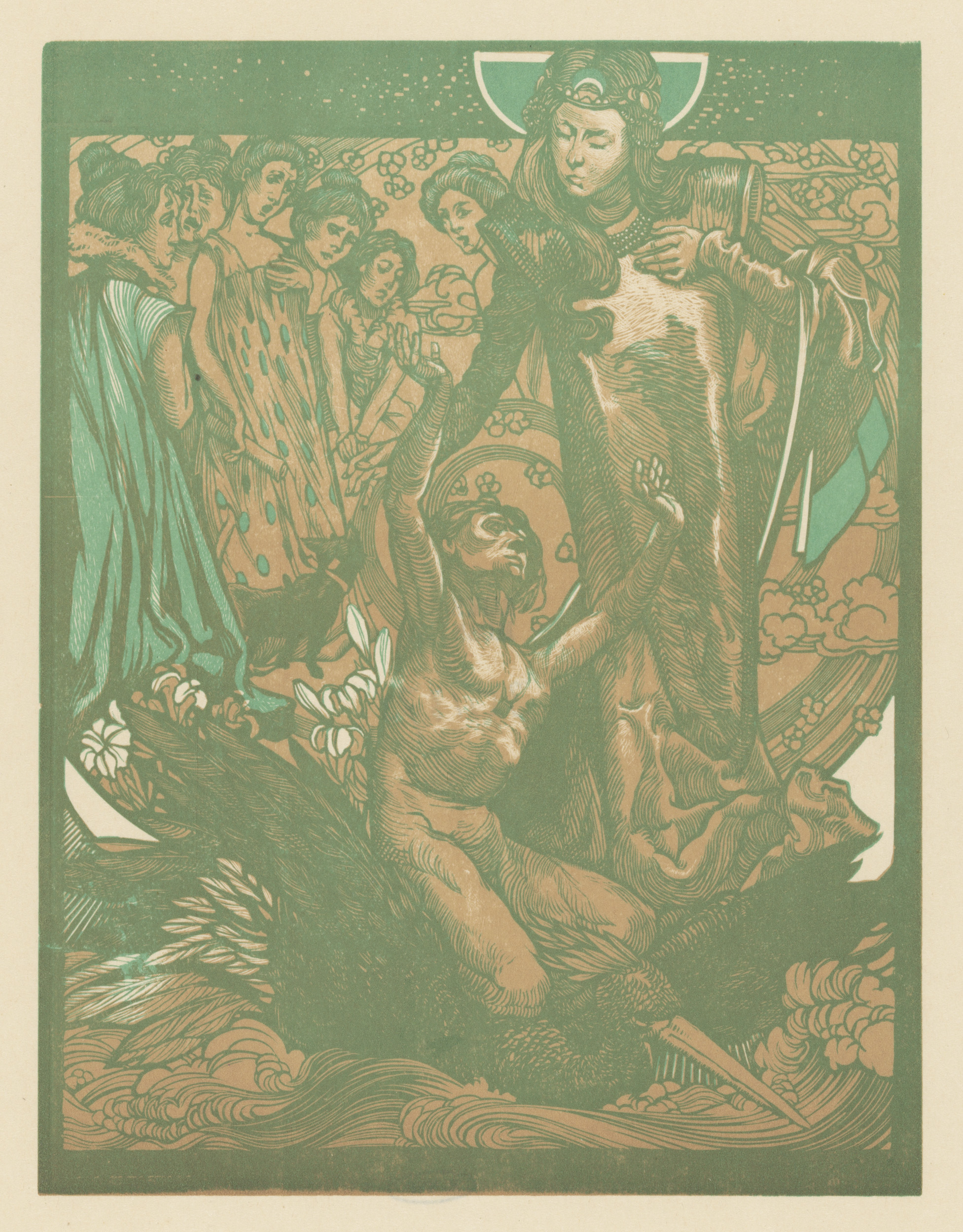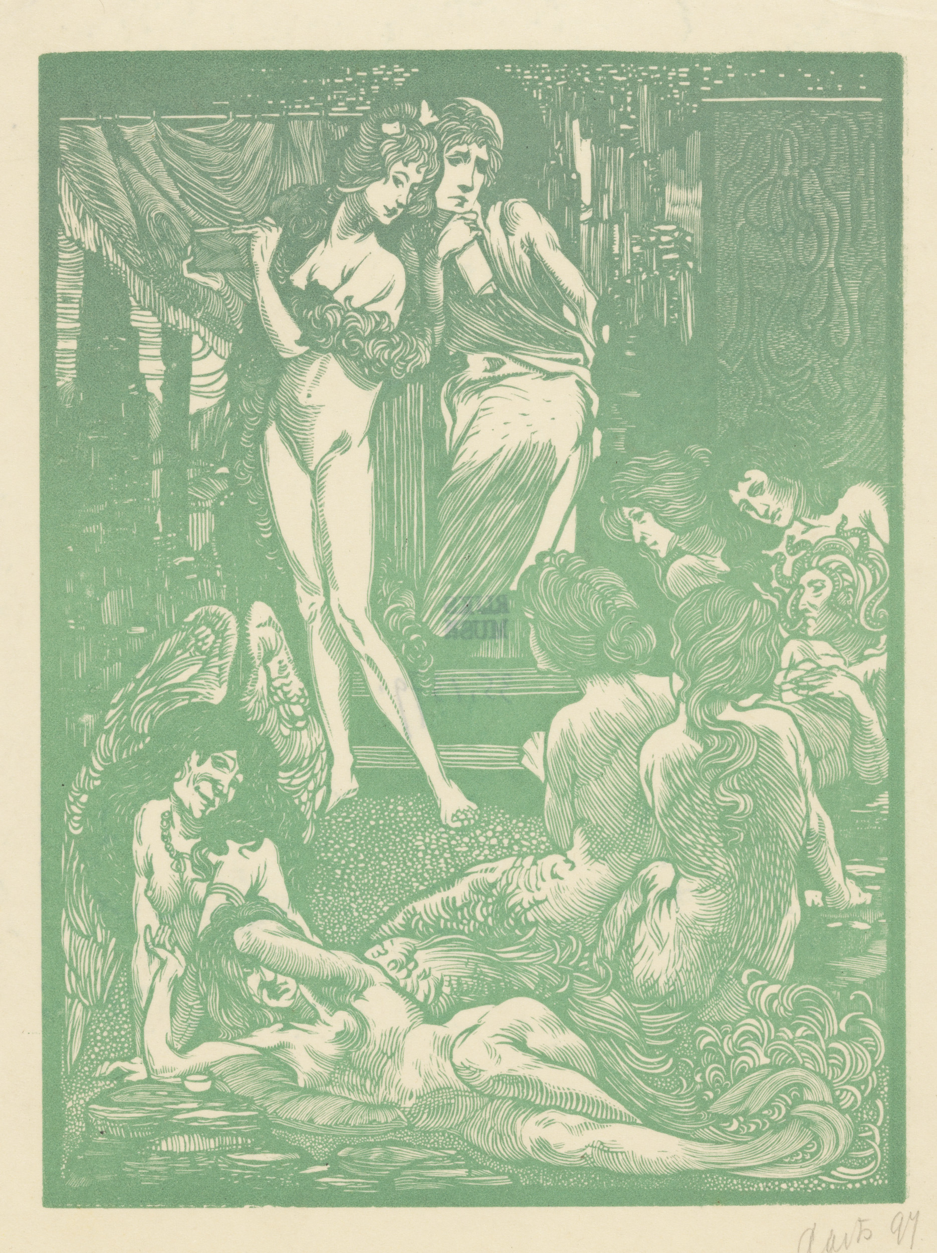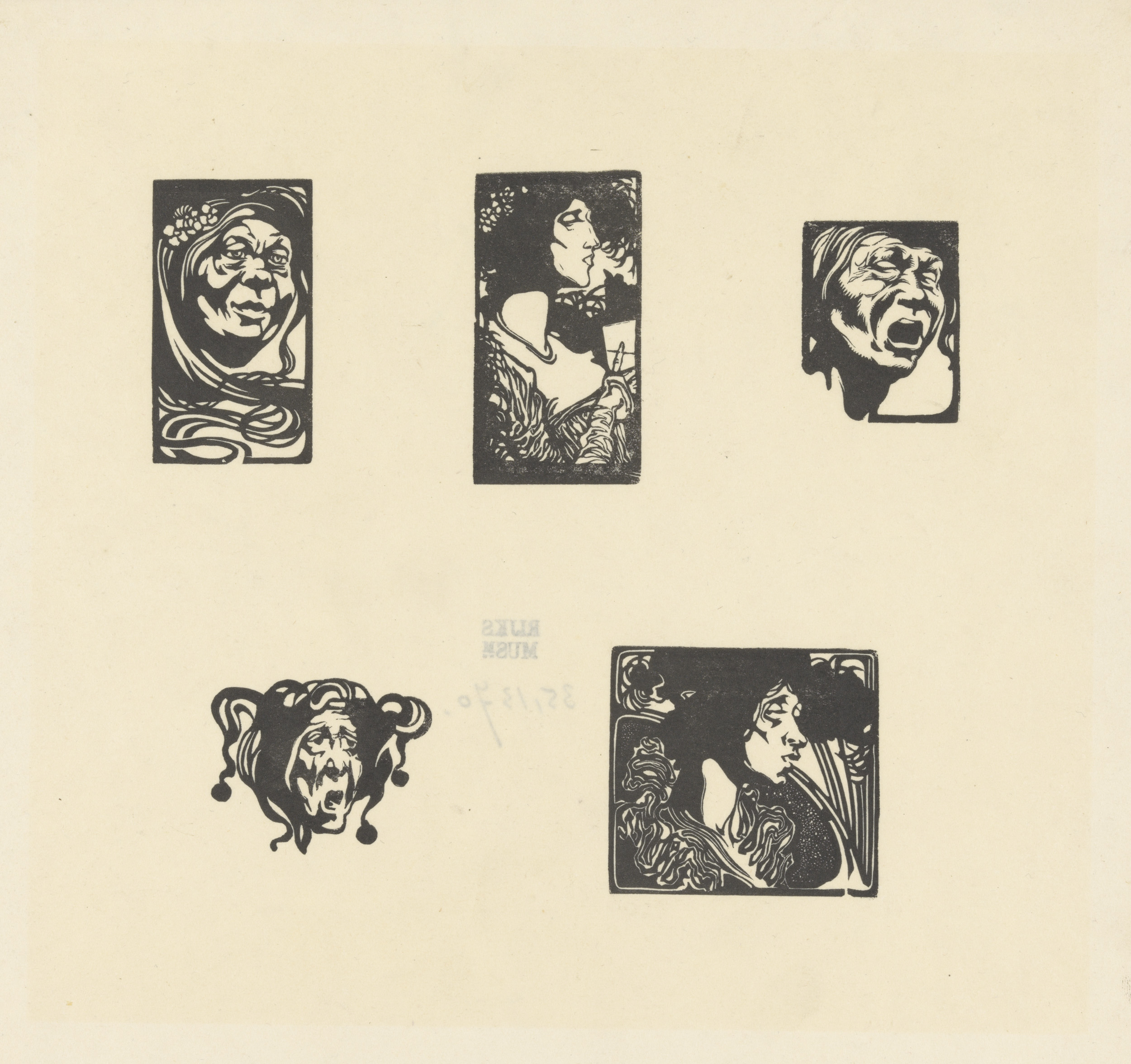Naakte vrouw boven twee naakte vrouwen en twee gekle...