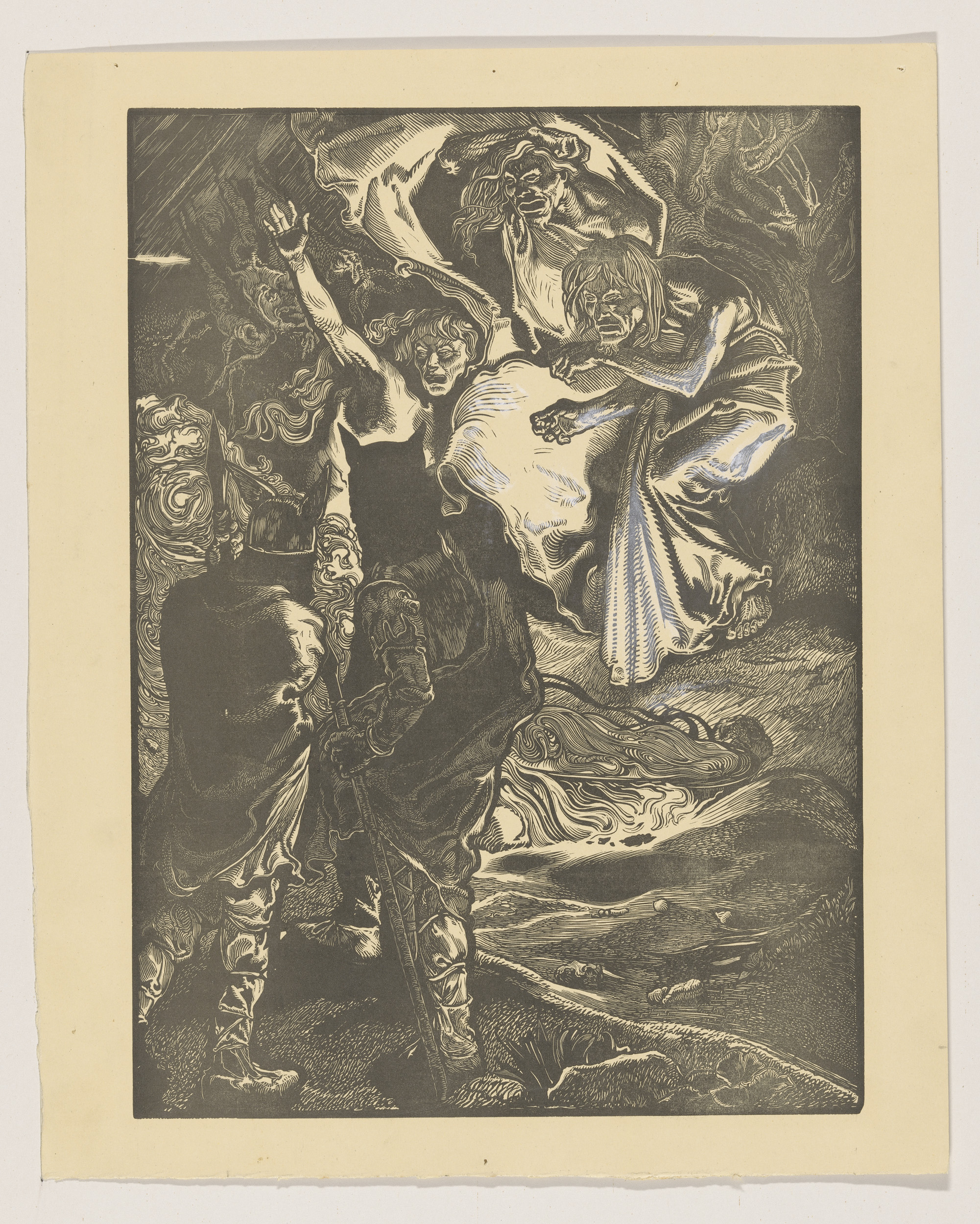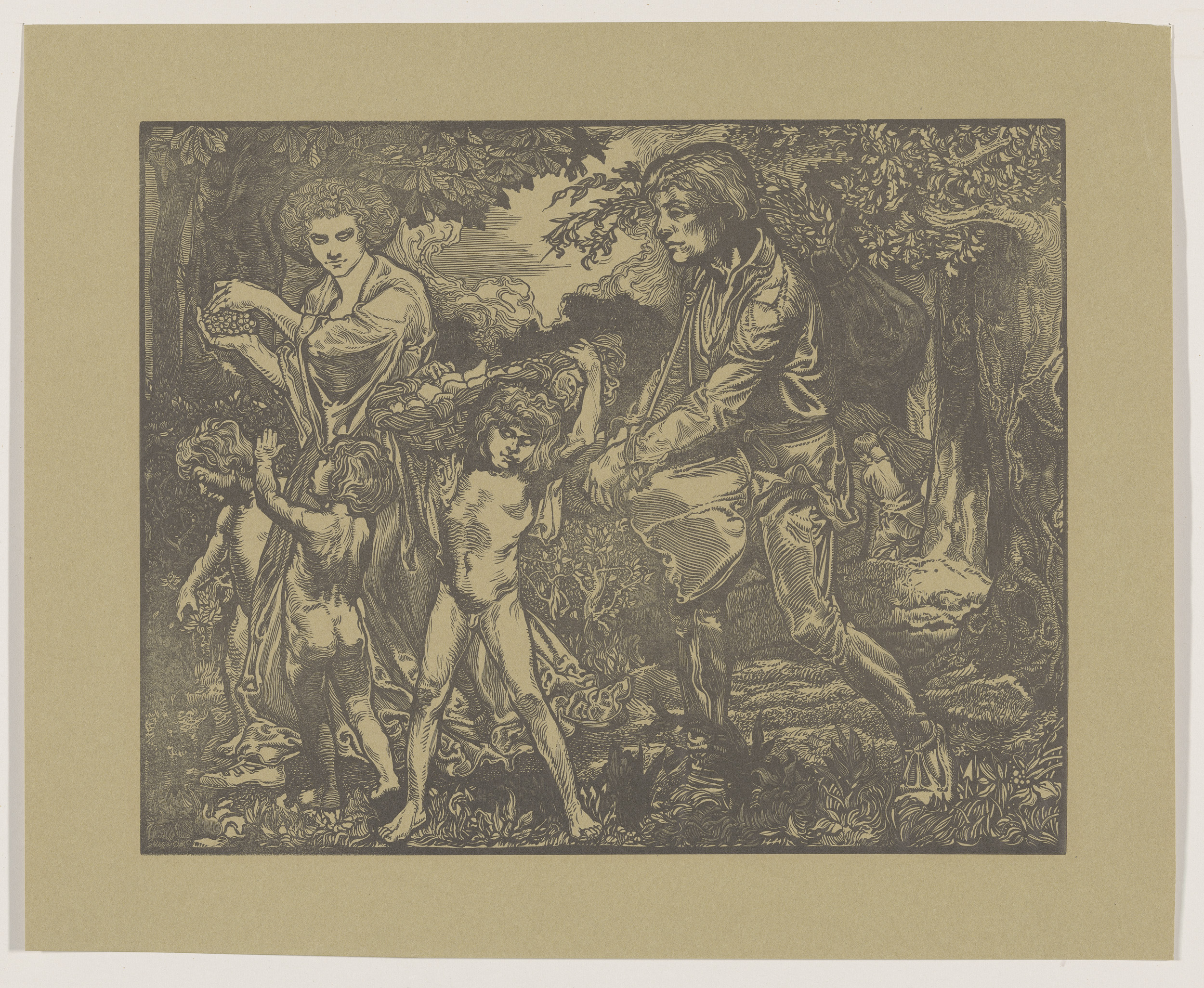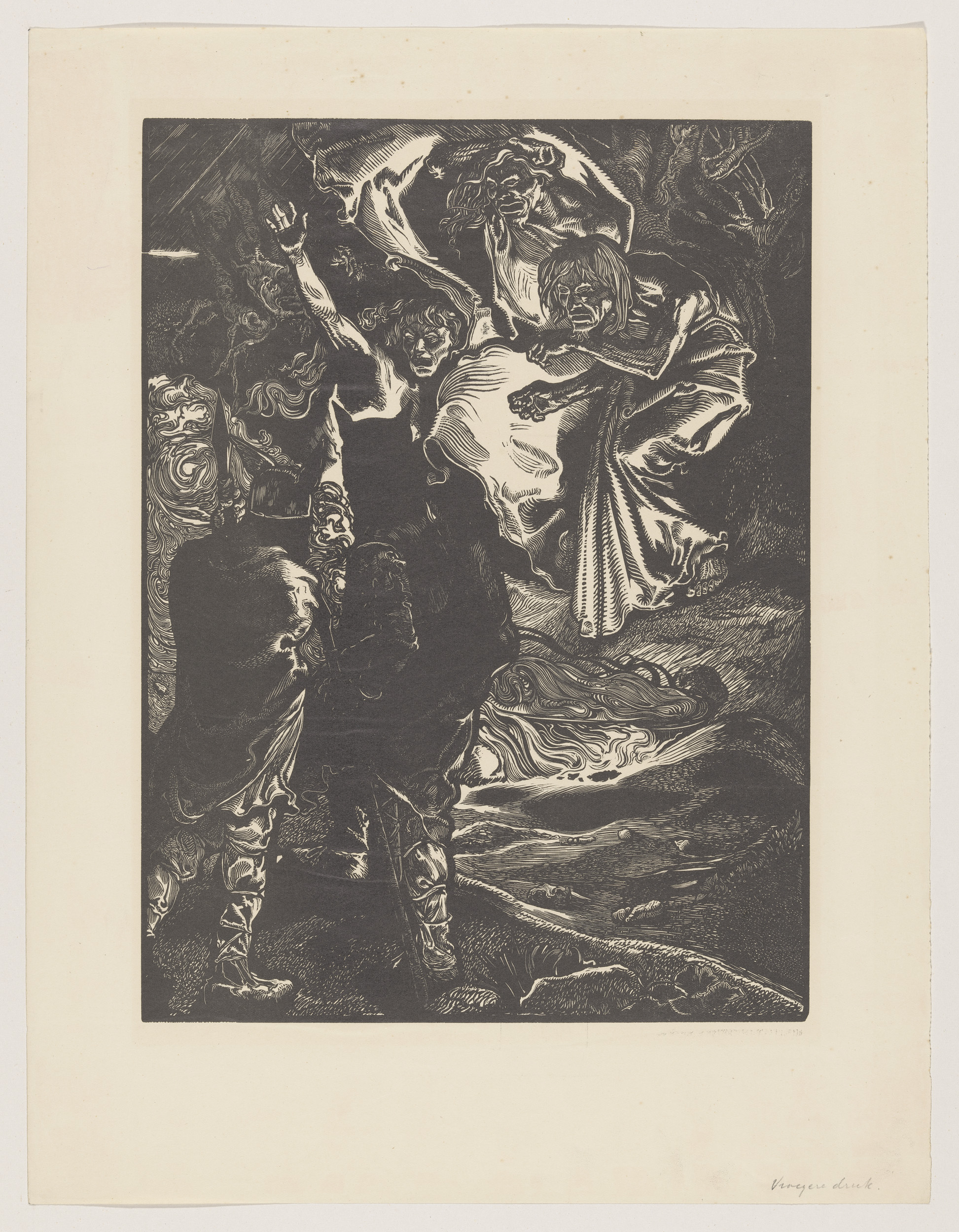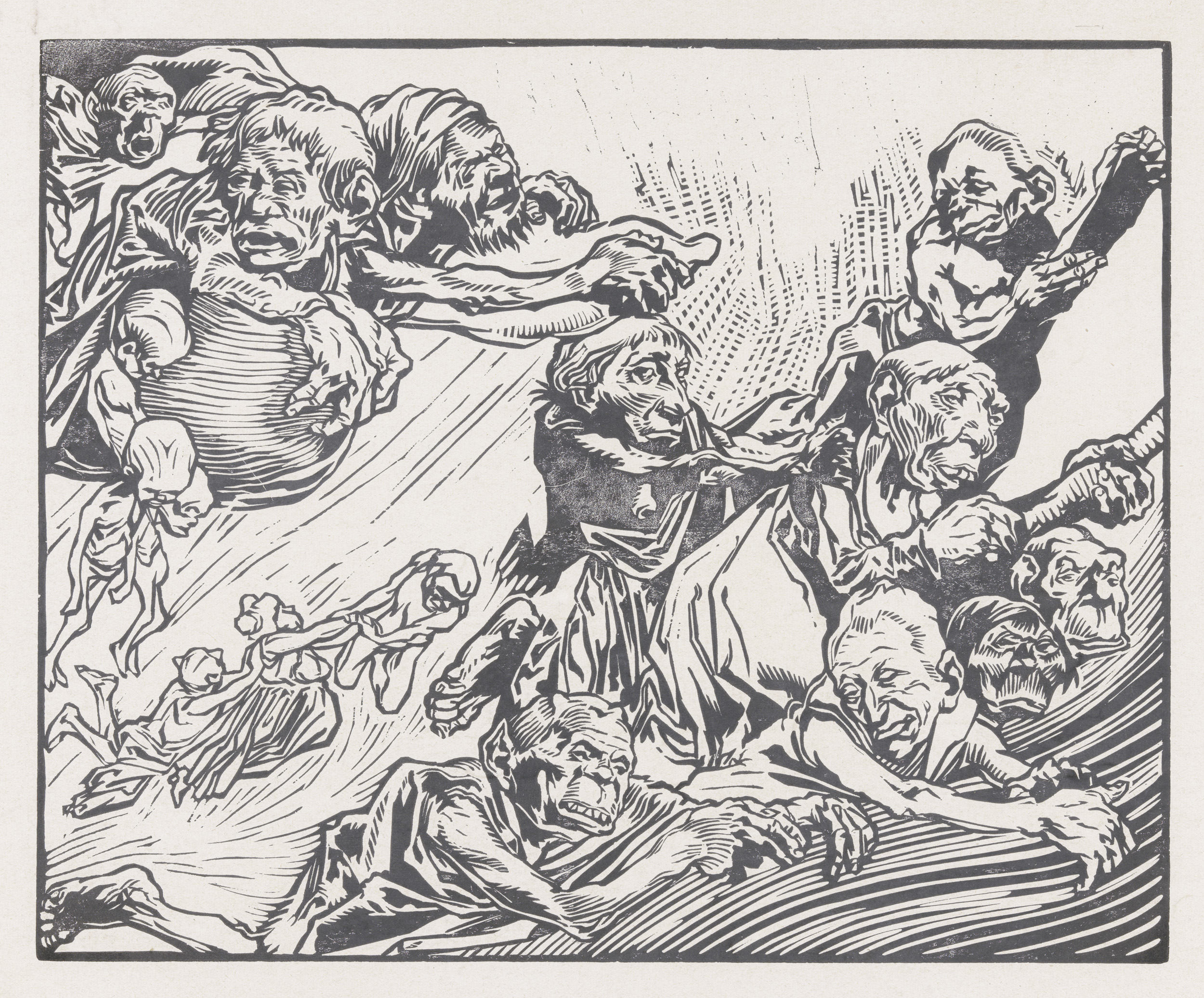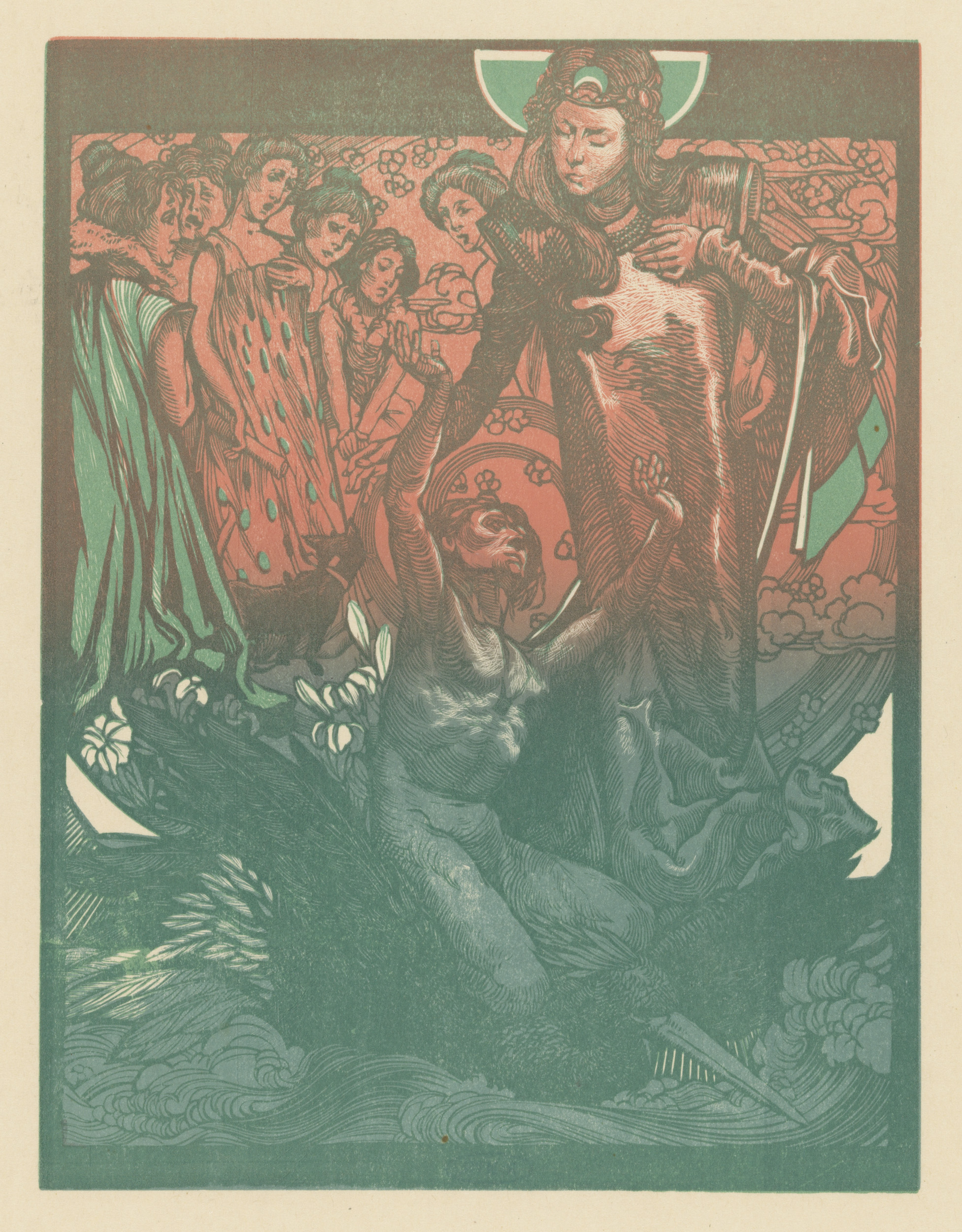 Naakte vrouw boven twee naakte vrouwen en twee gekle...