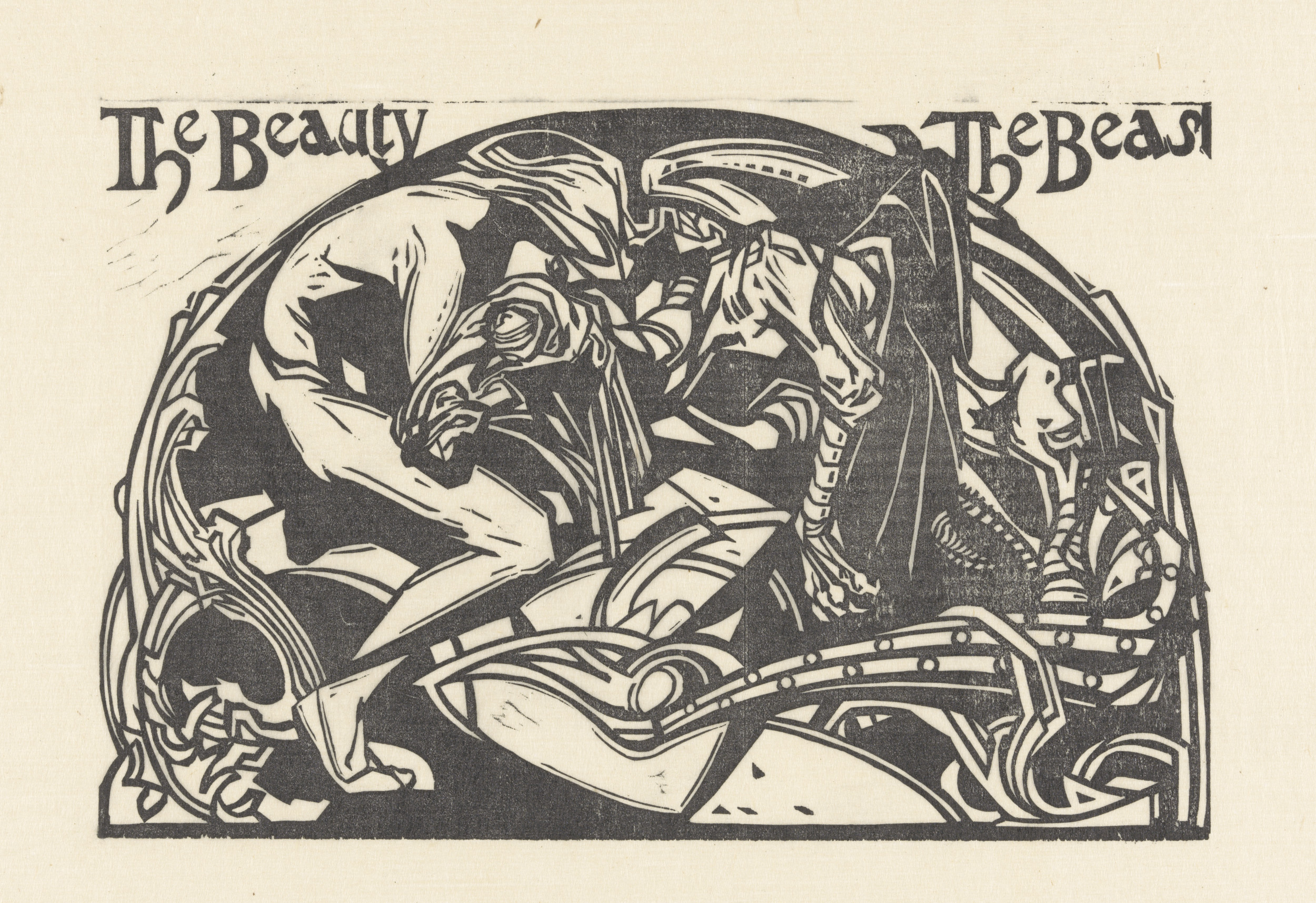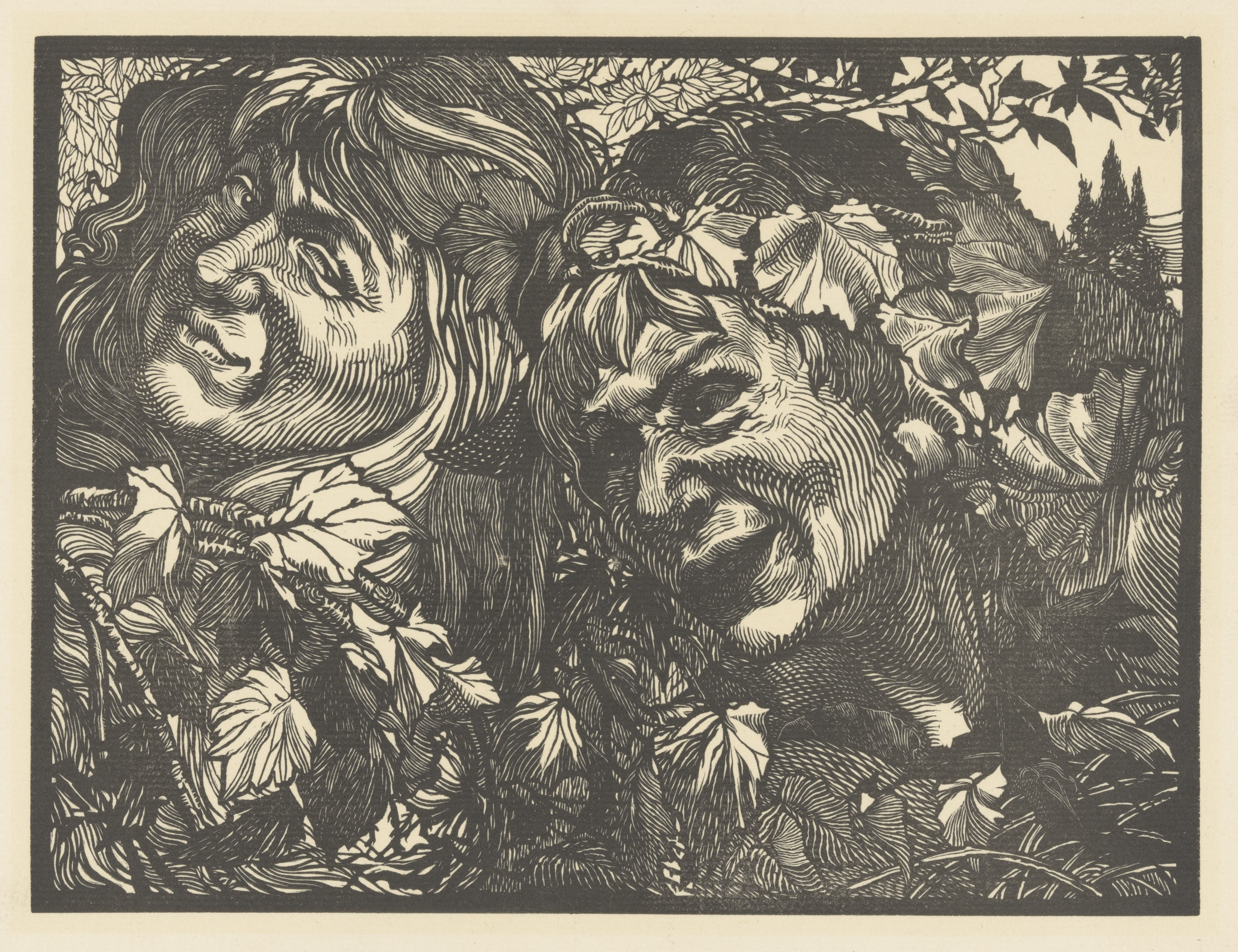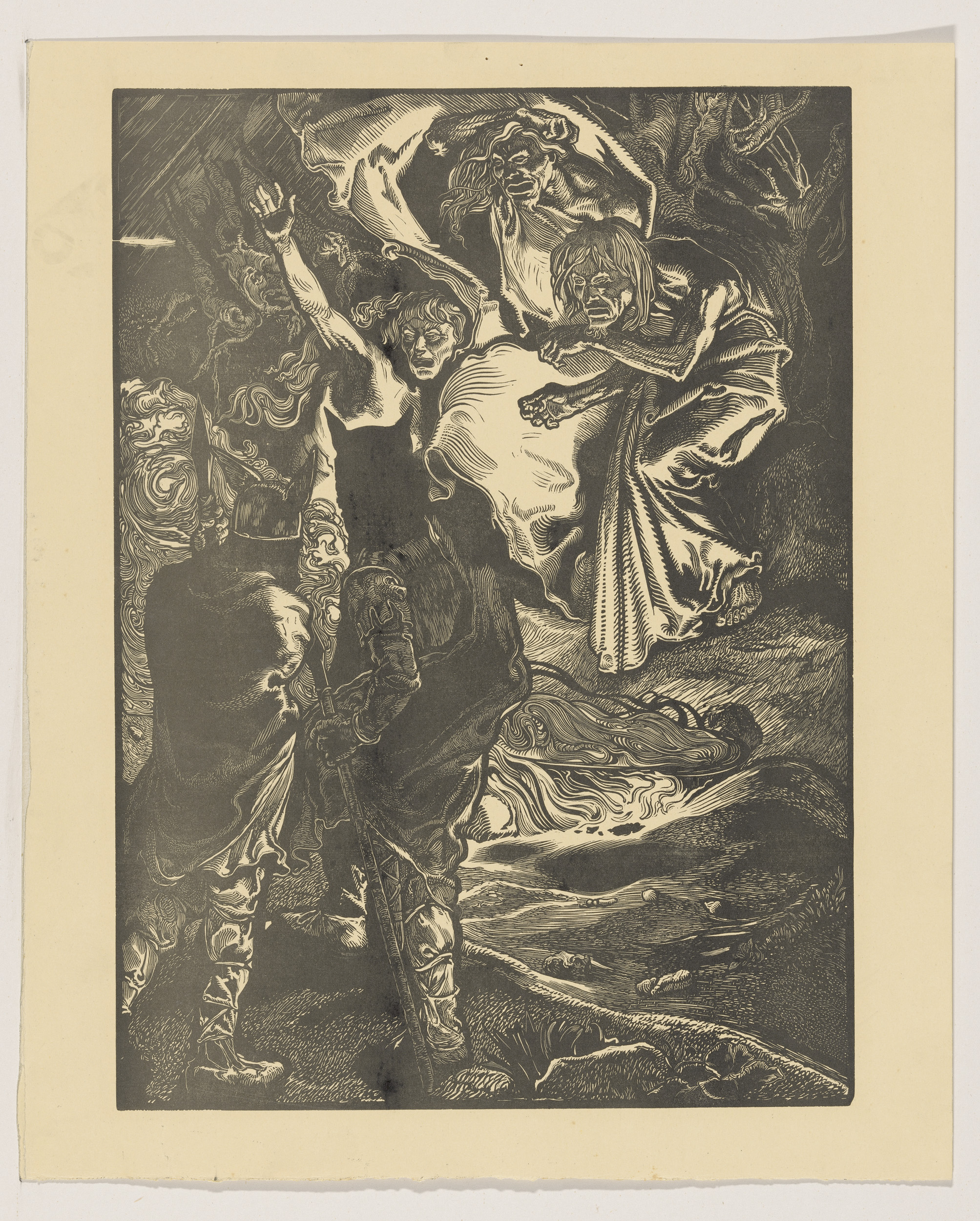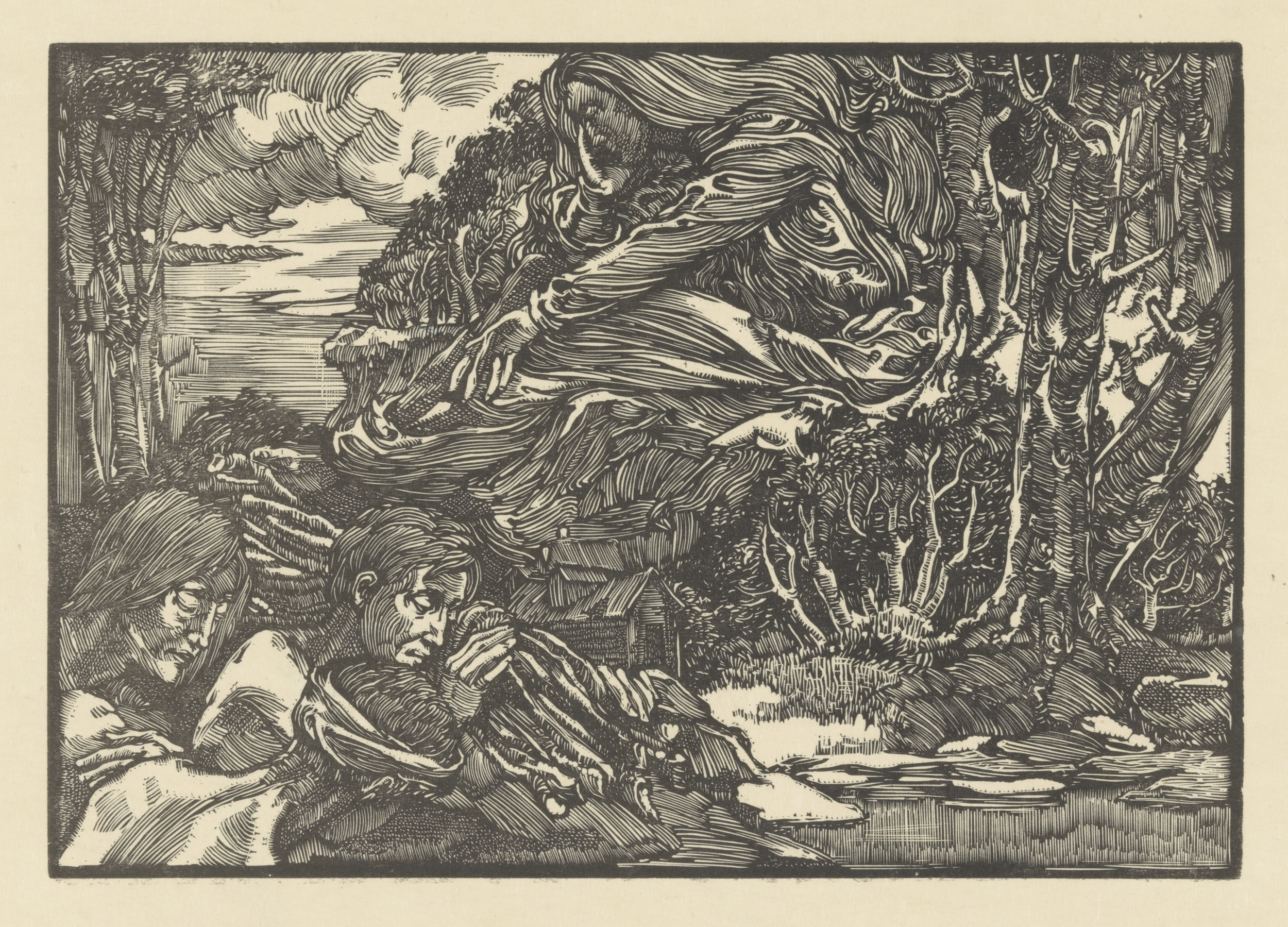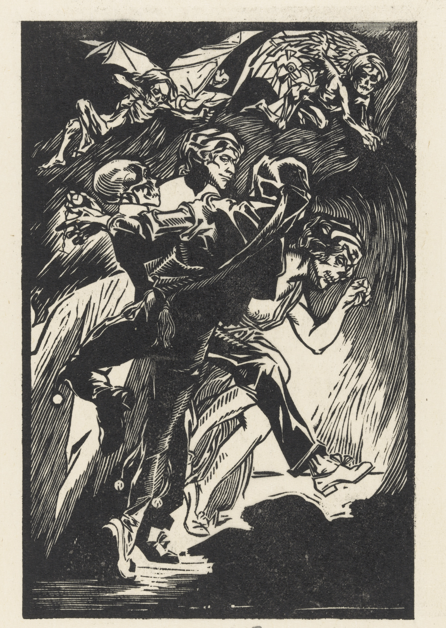 Naakte vrouw boven twee naakte vrouwen en twee gekle...