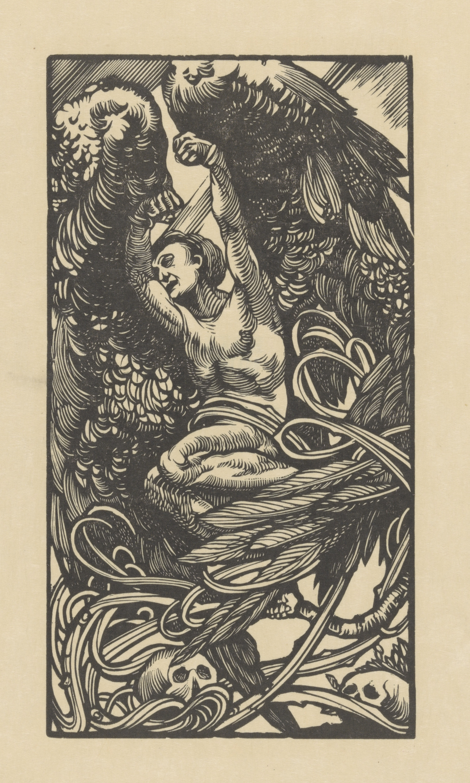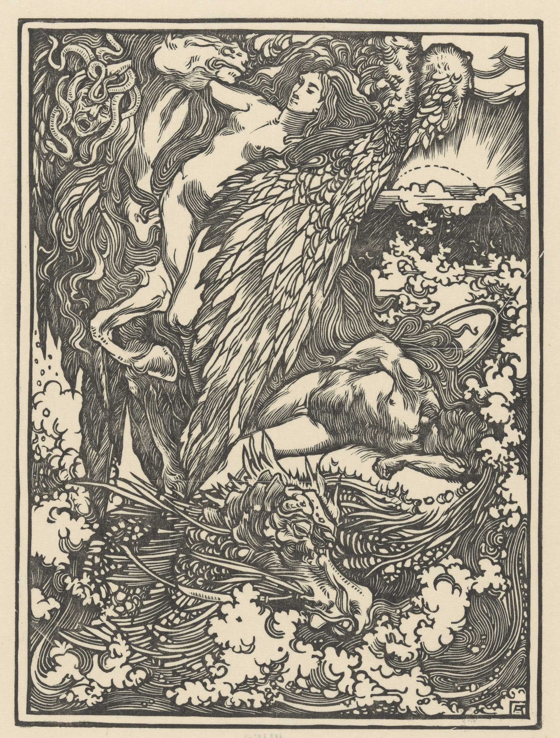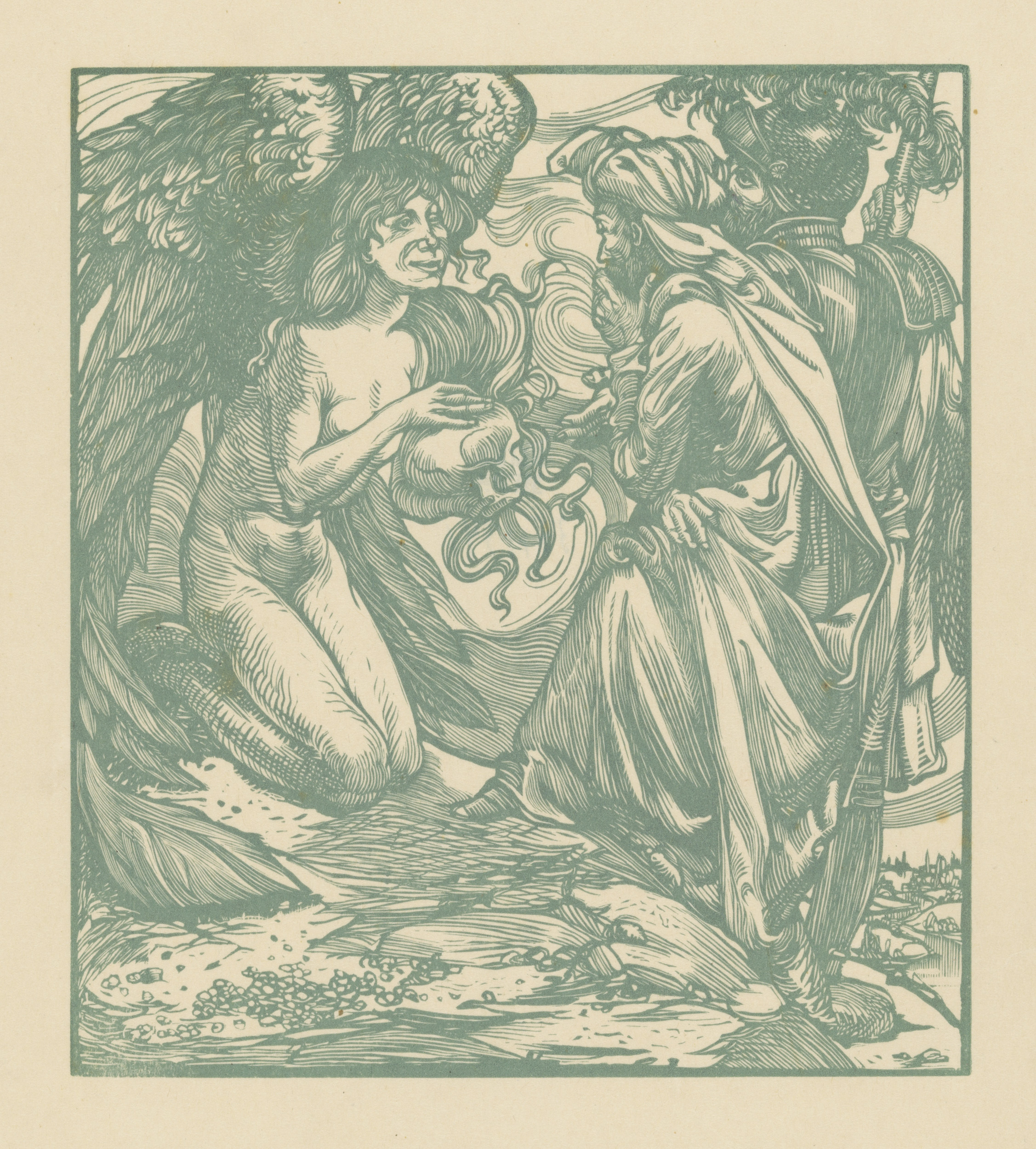 Gevleugelde vrouw met ouroboros om haar hoofd
