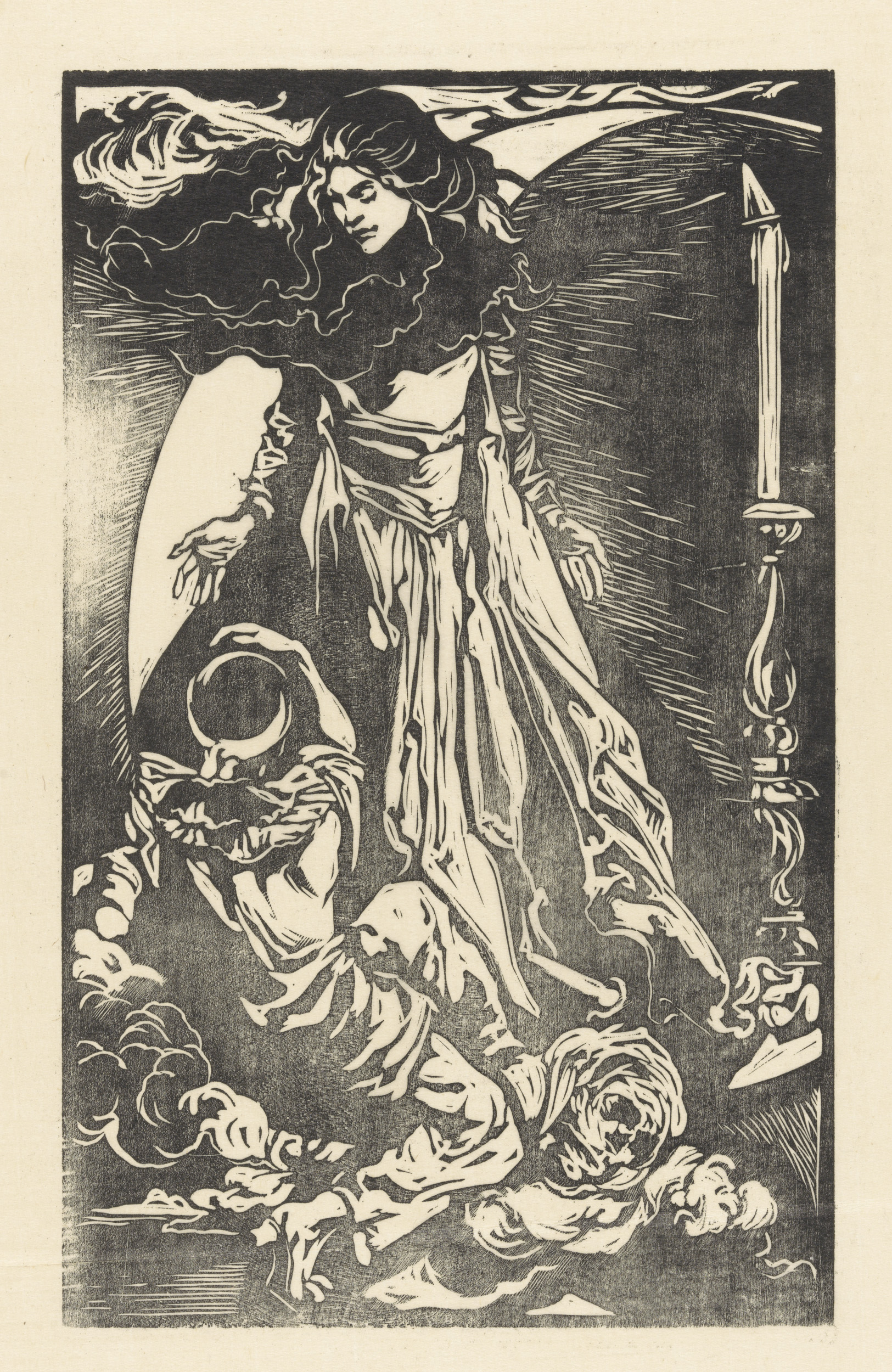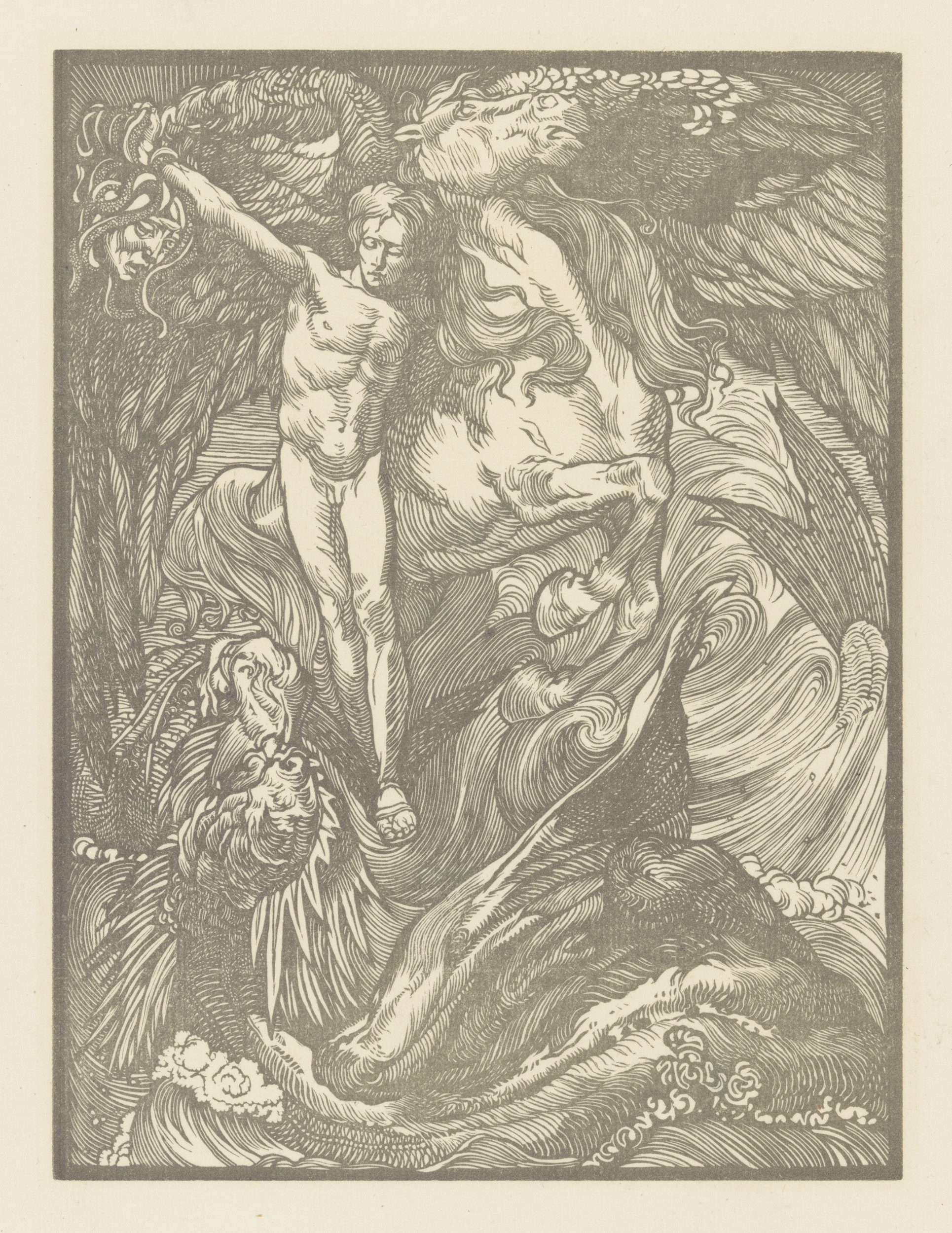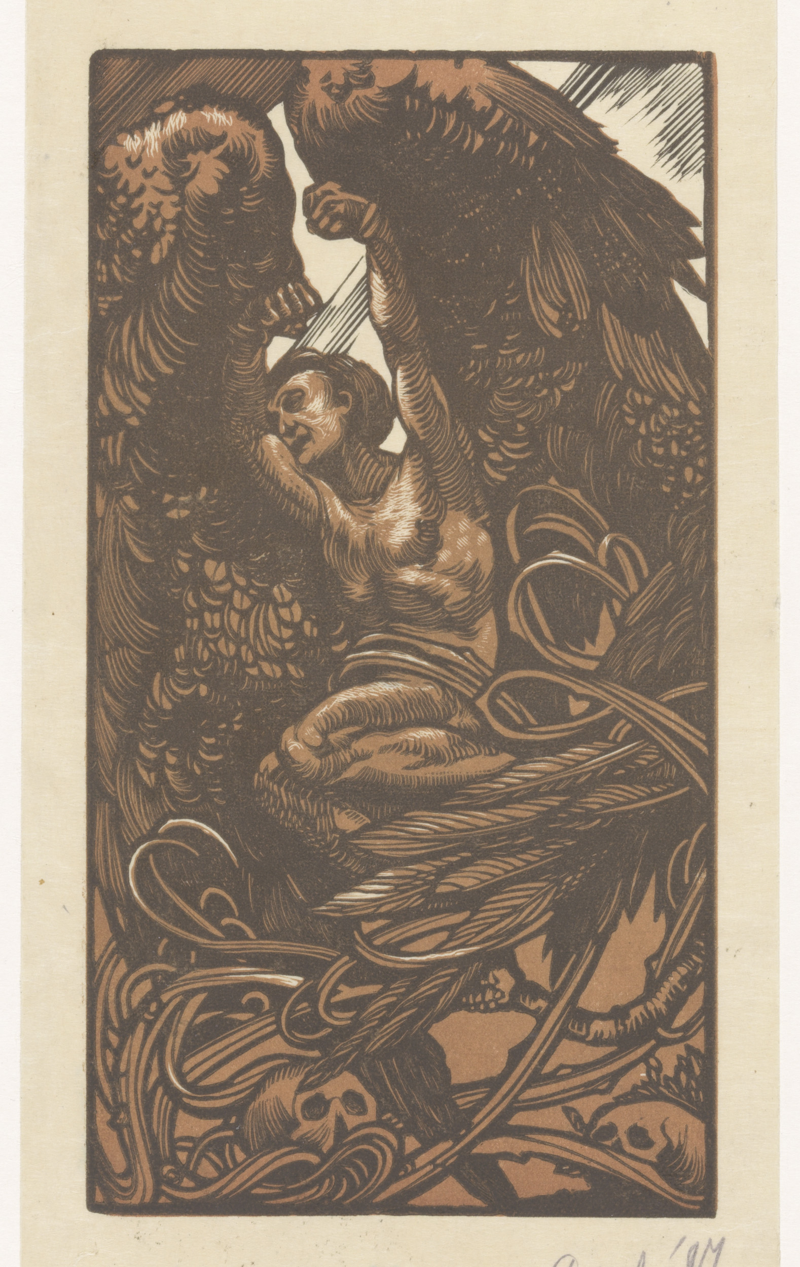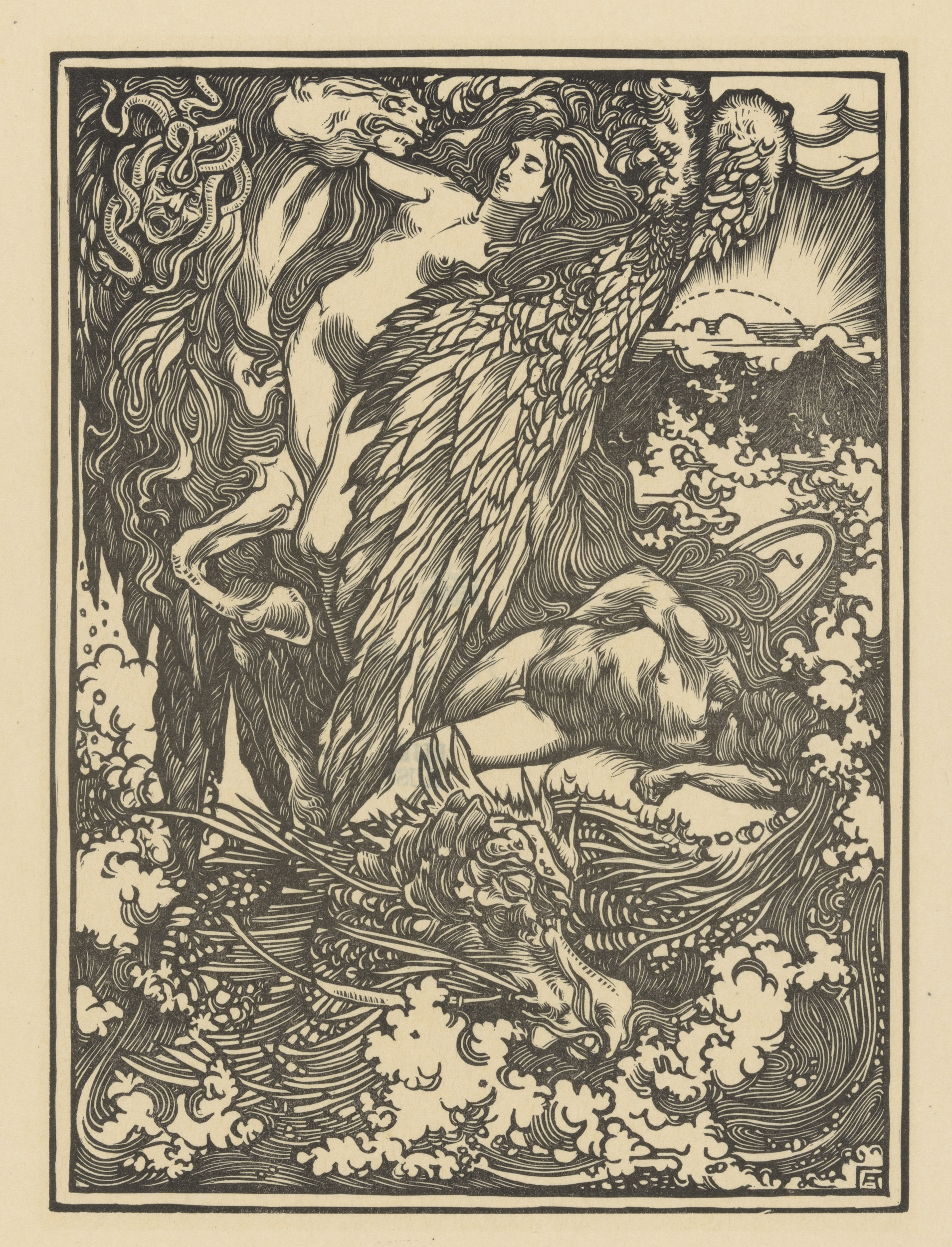 Gevleugelde vrouw met ouroboros om haar hoofd