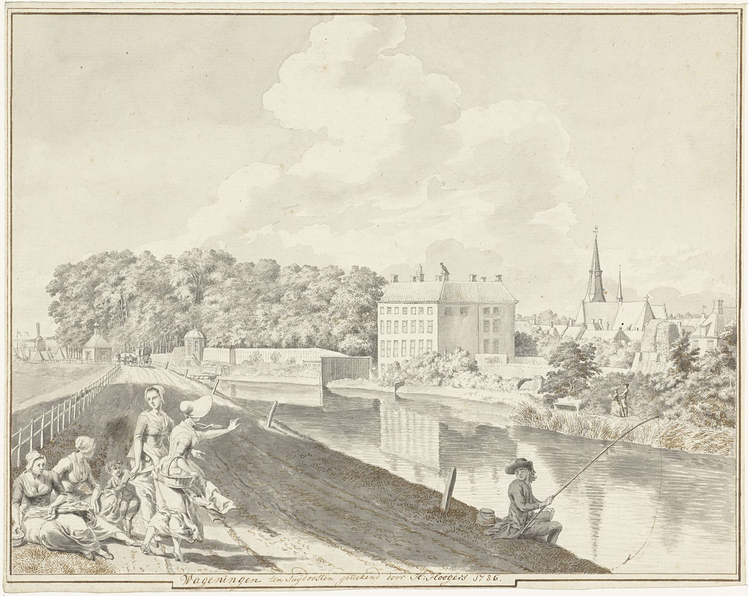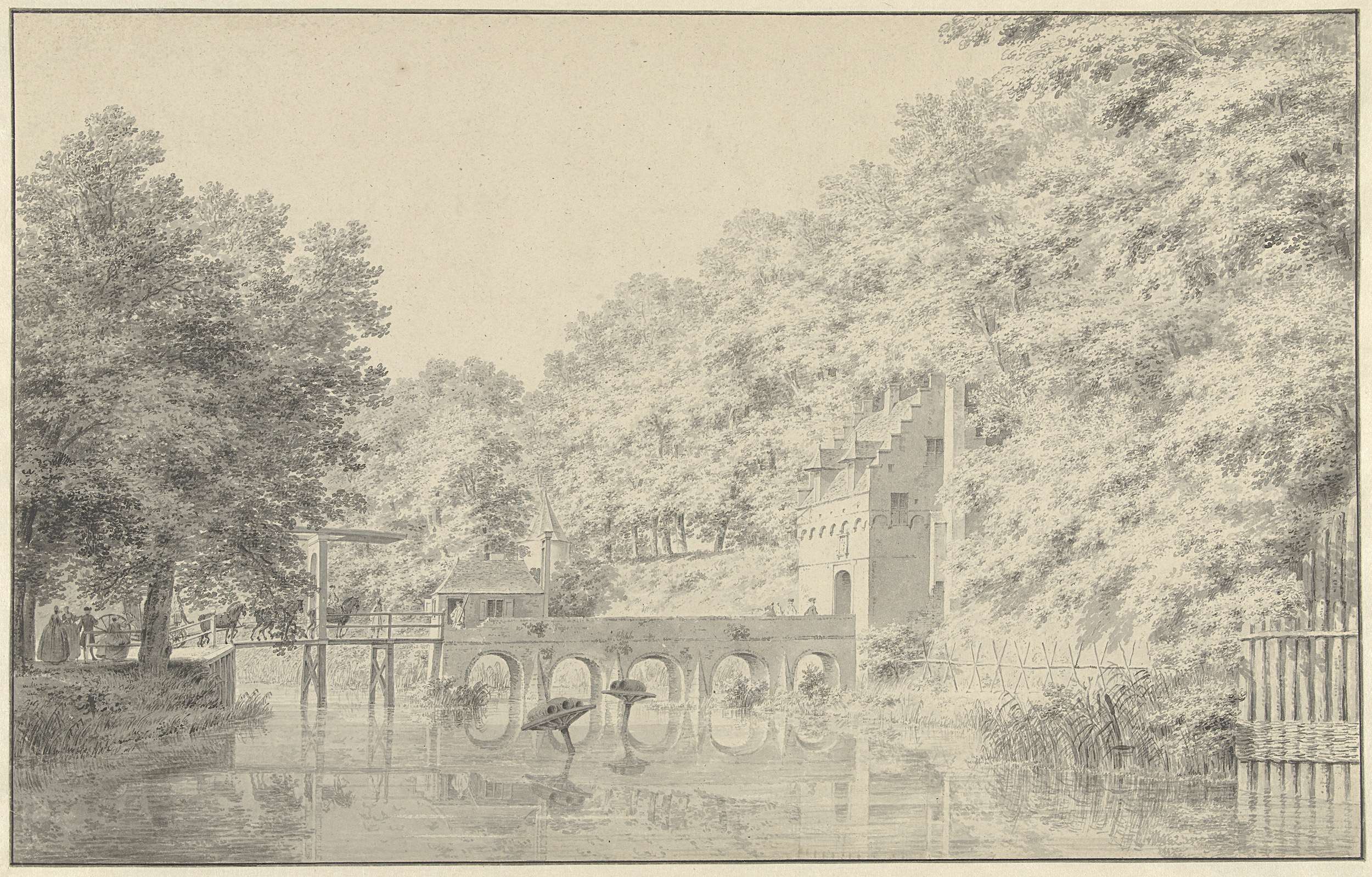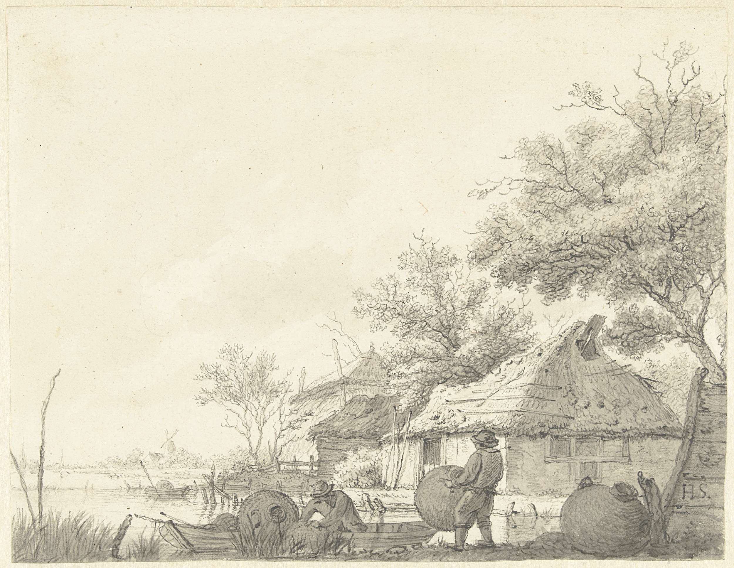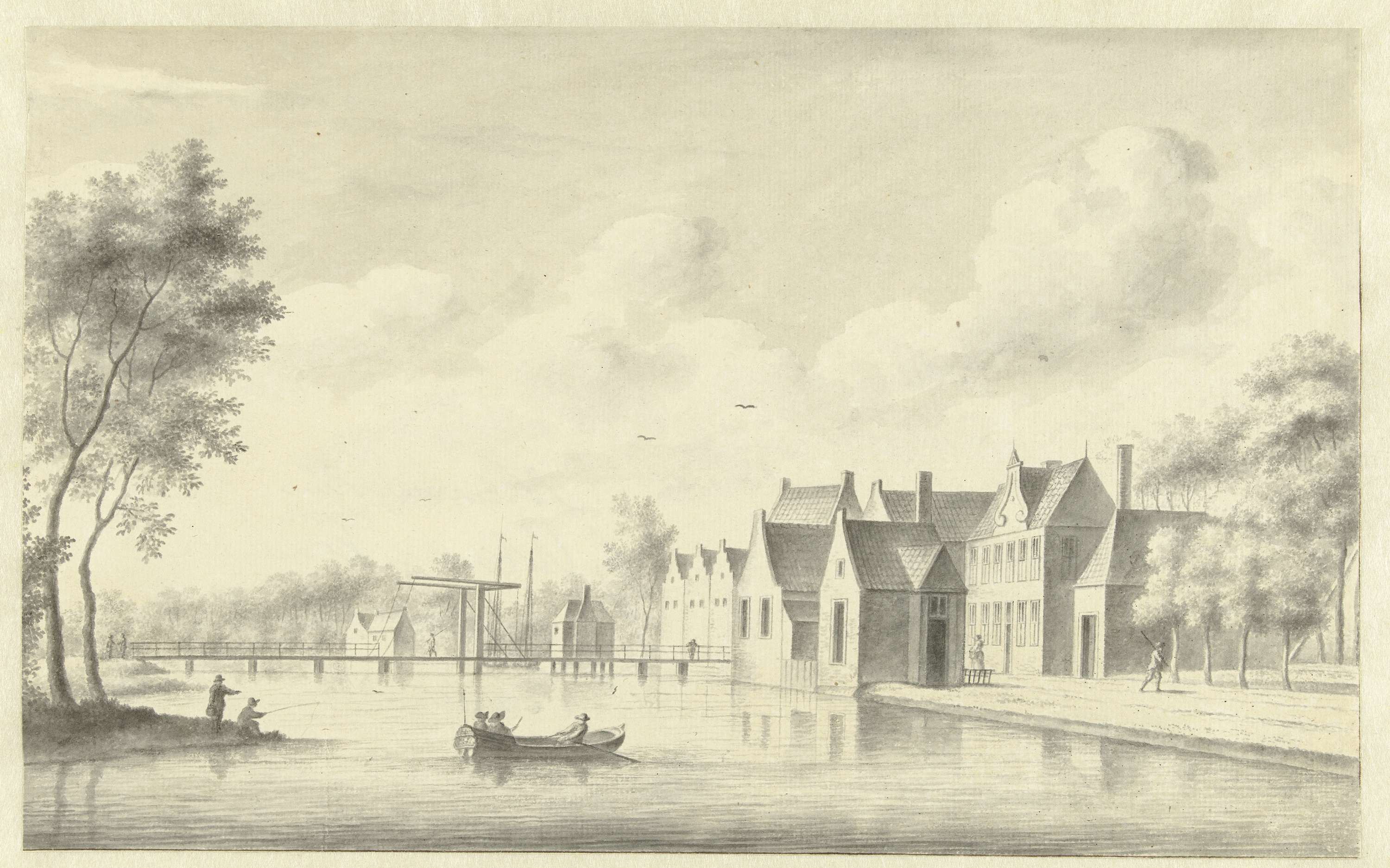 Twee vissers met korven bij een vaart