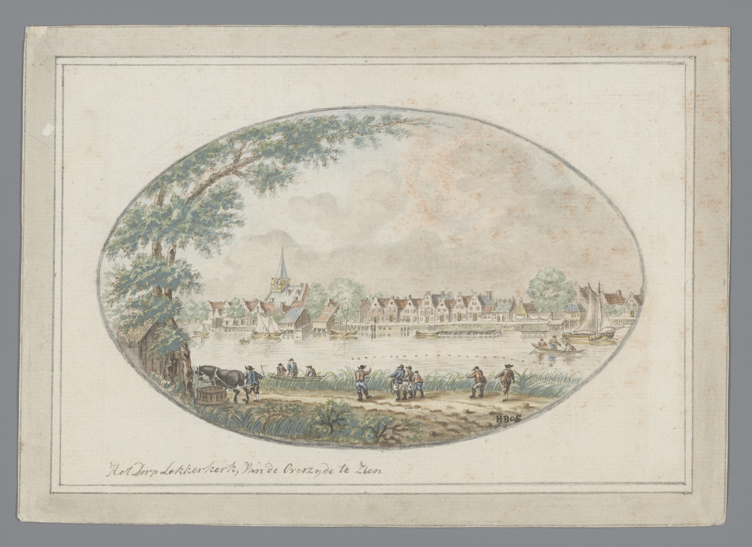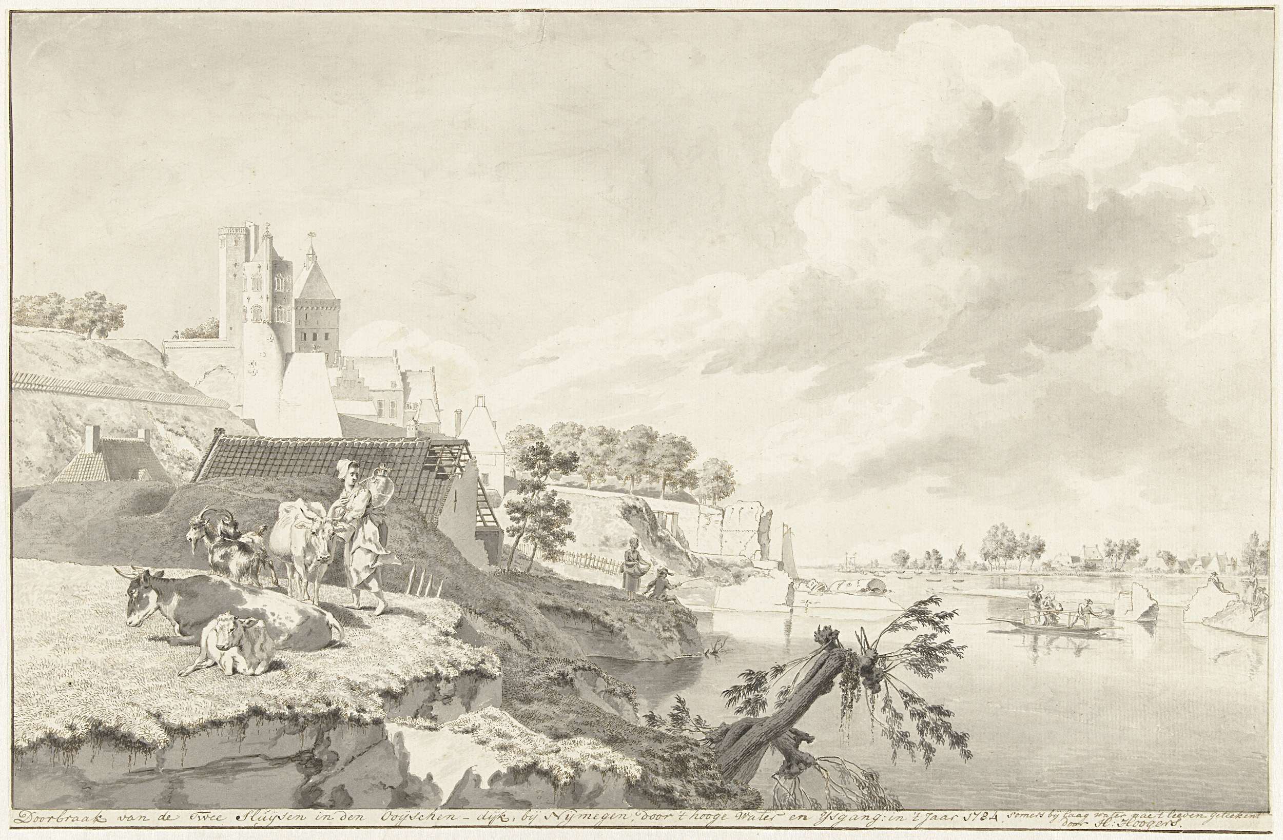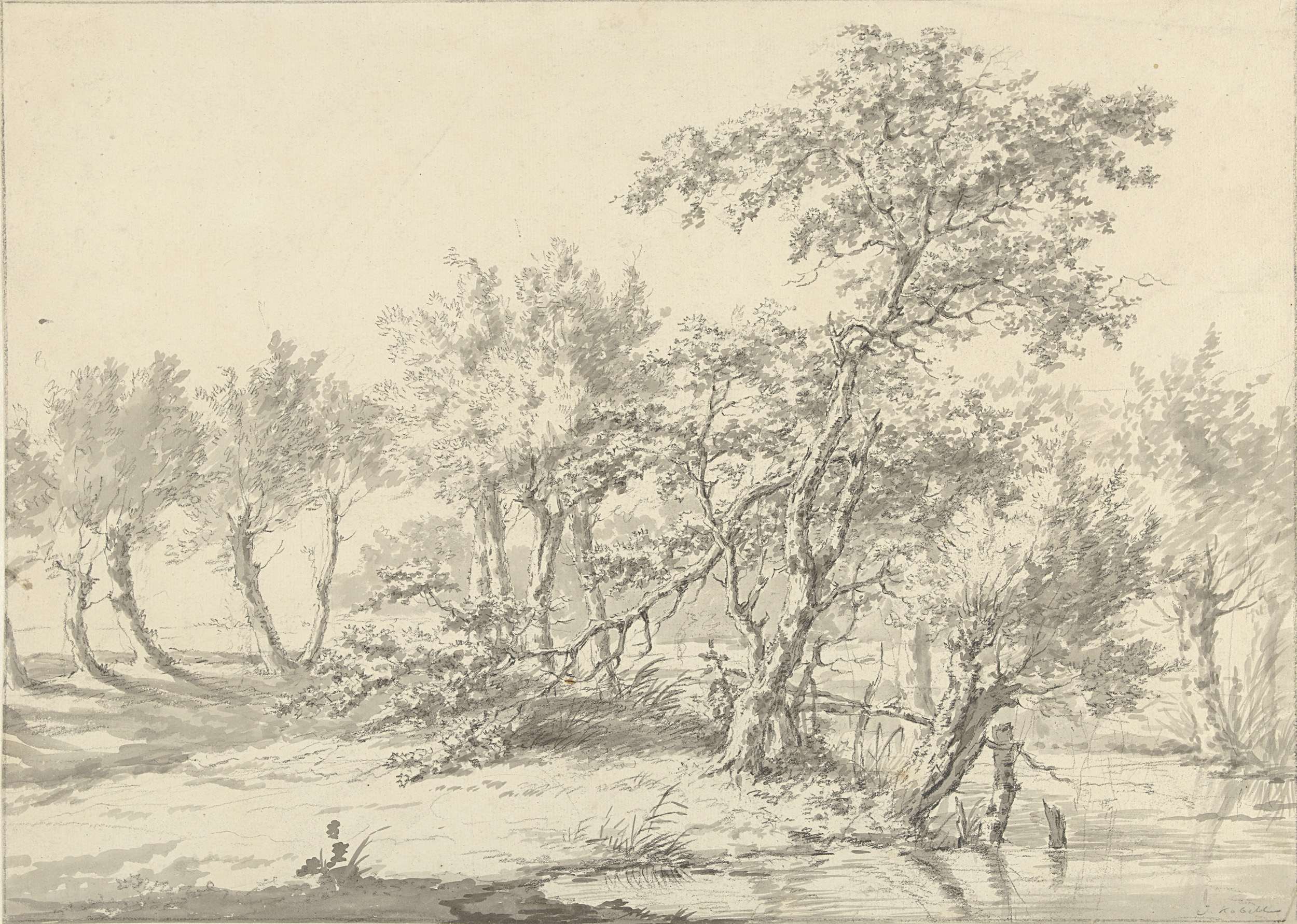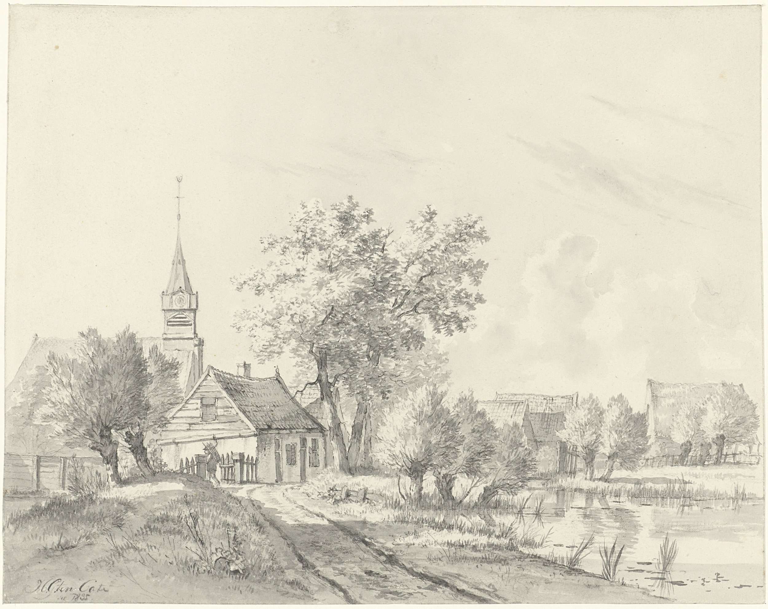 Twee vissers met korven bij een vaart