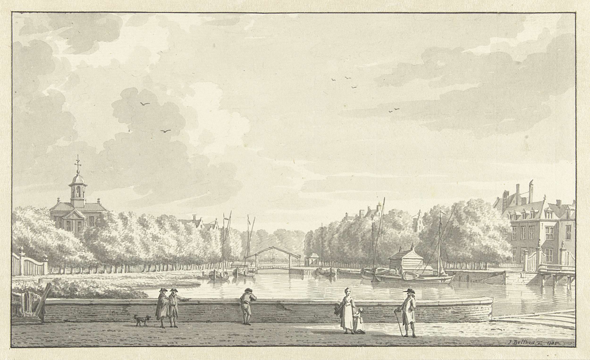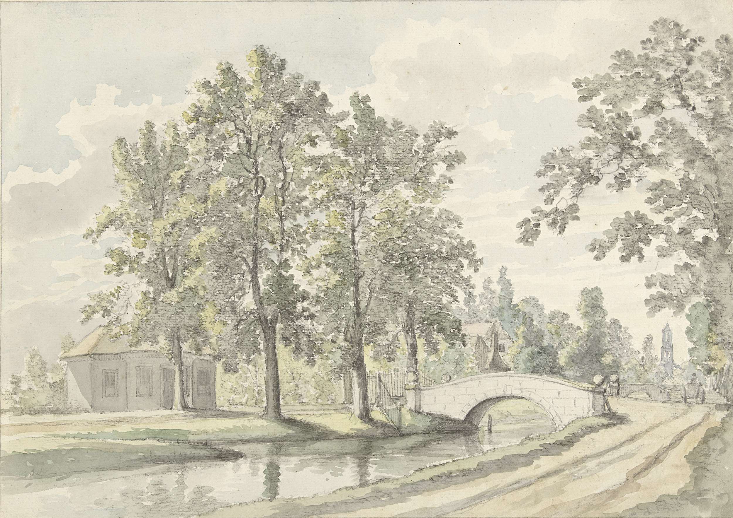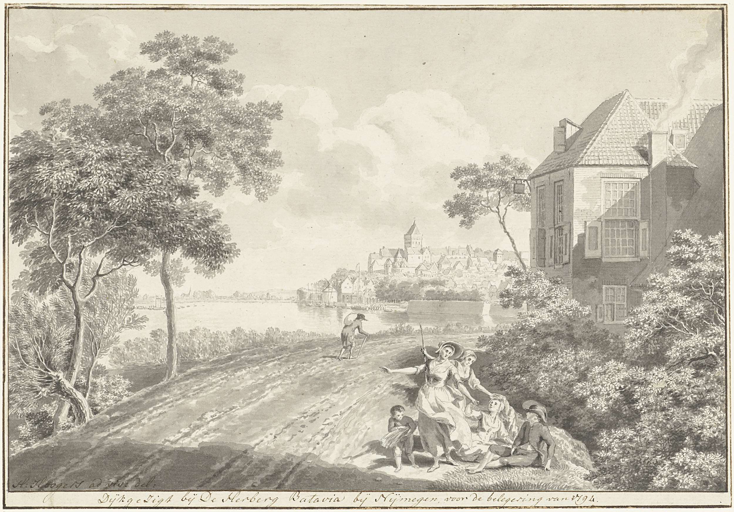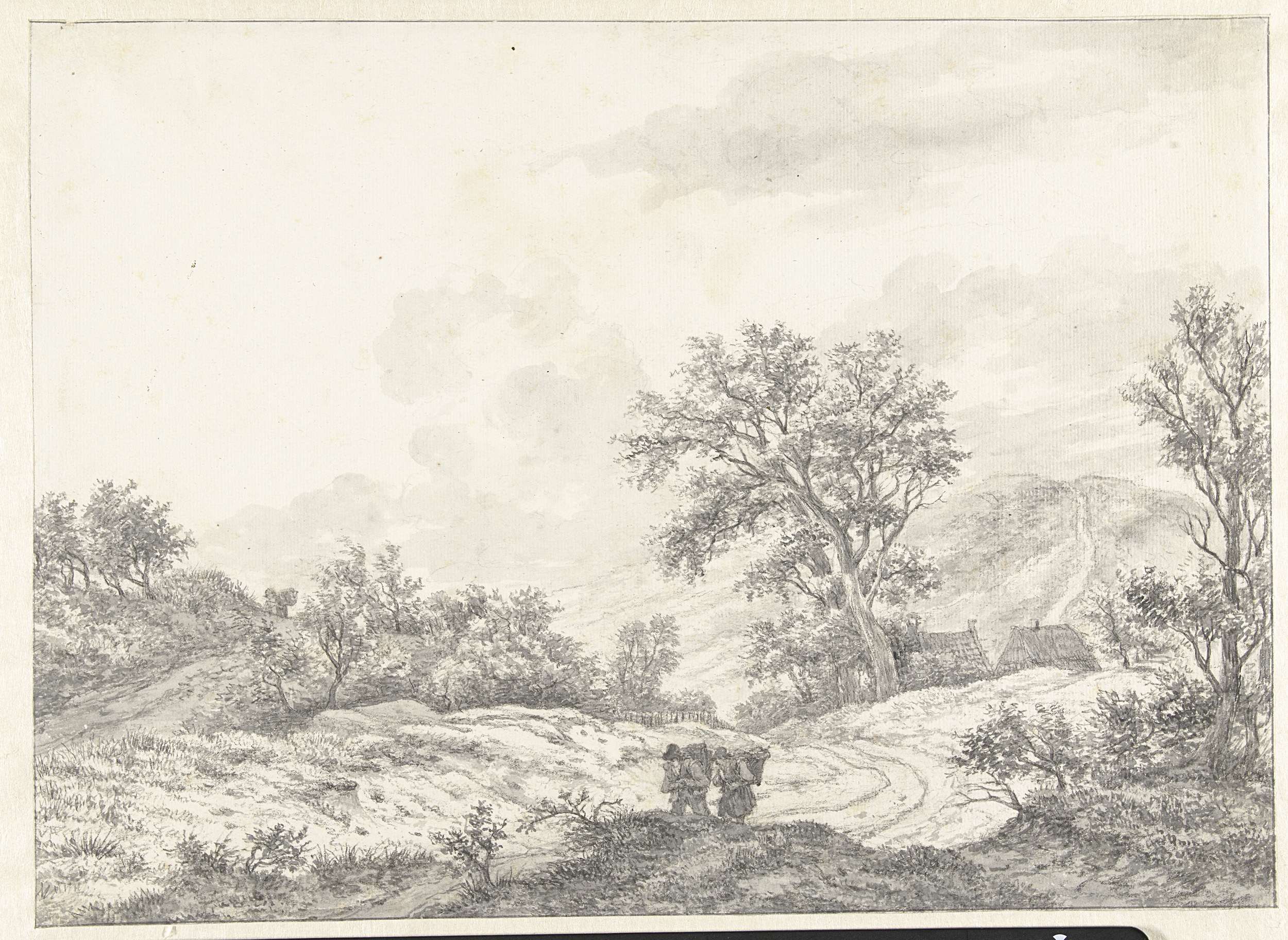 Twee vissers met korven bij een vaart