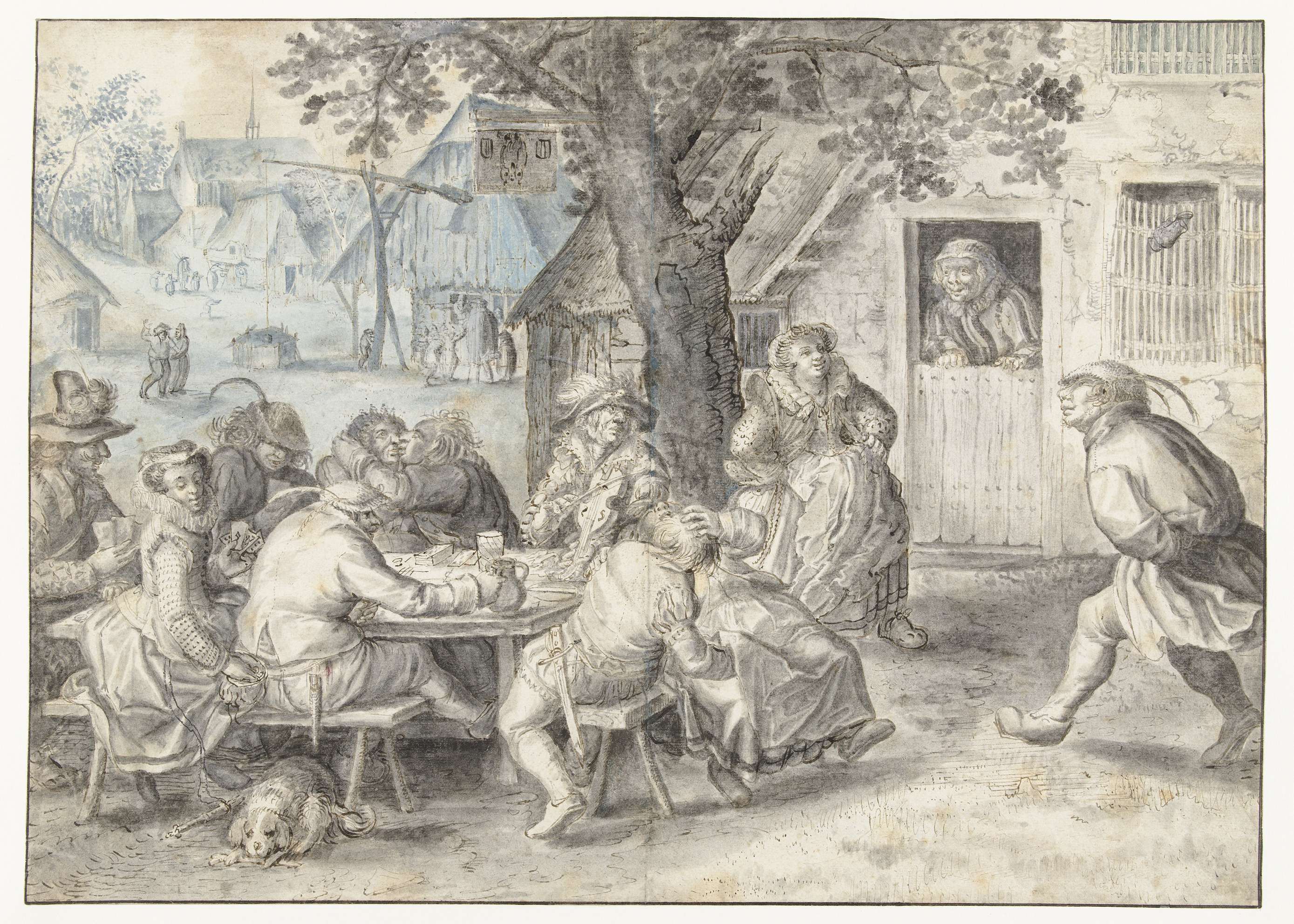 Feestende boeren, soldaten en lichtekooien
