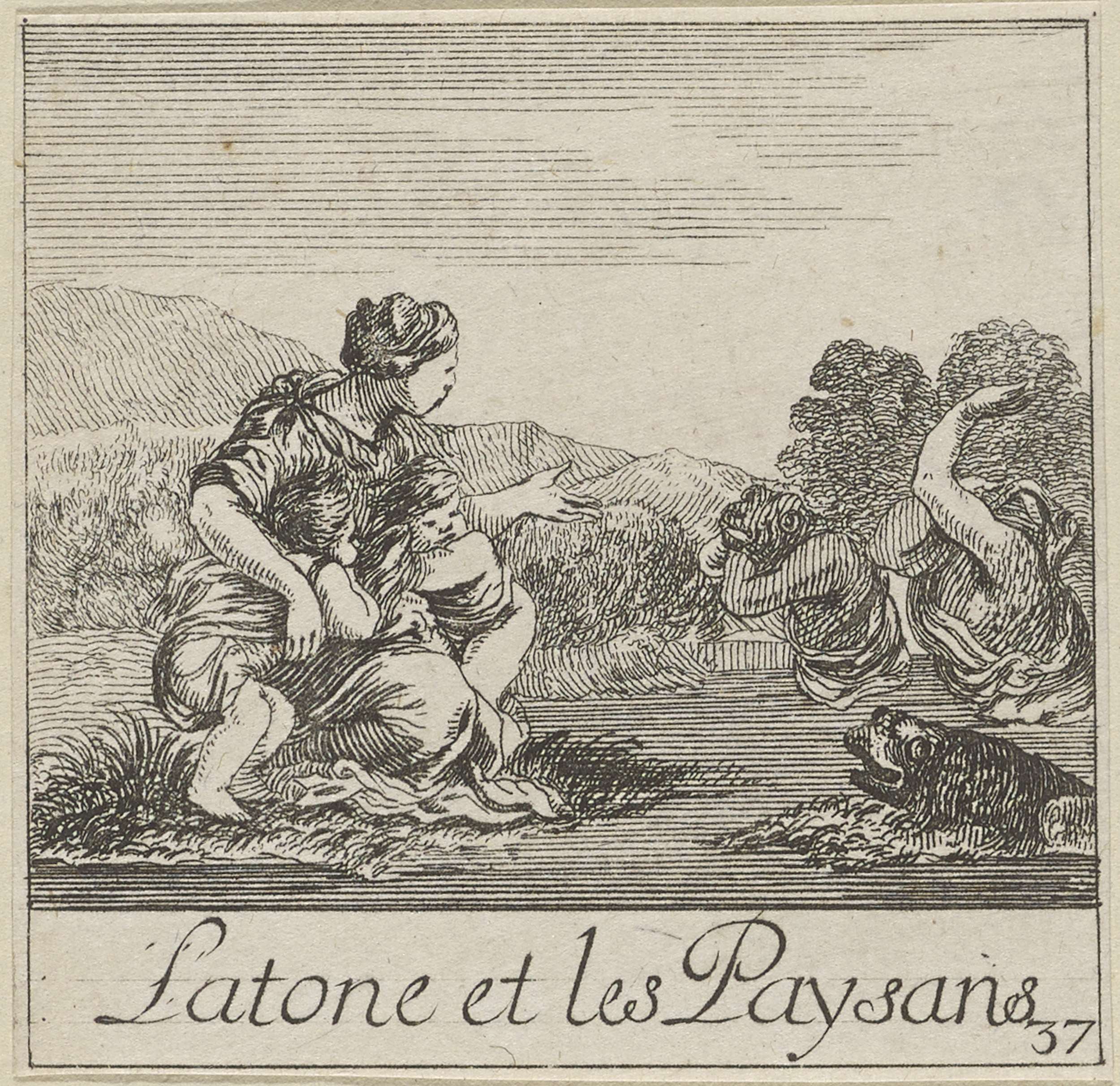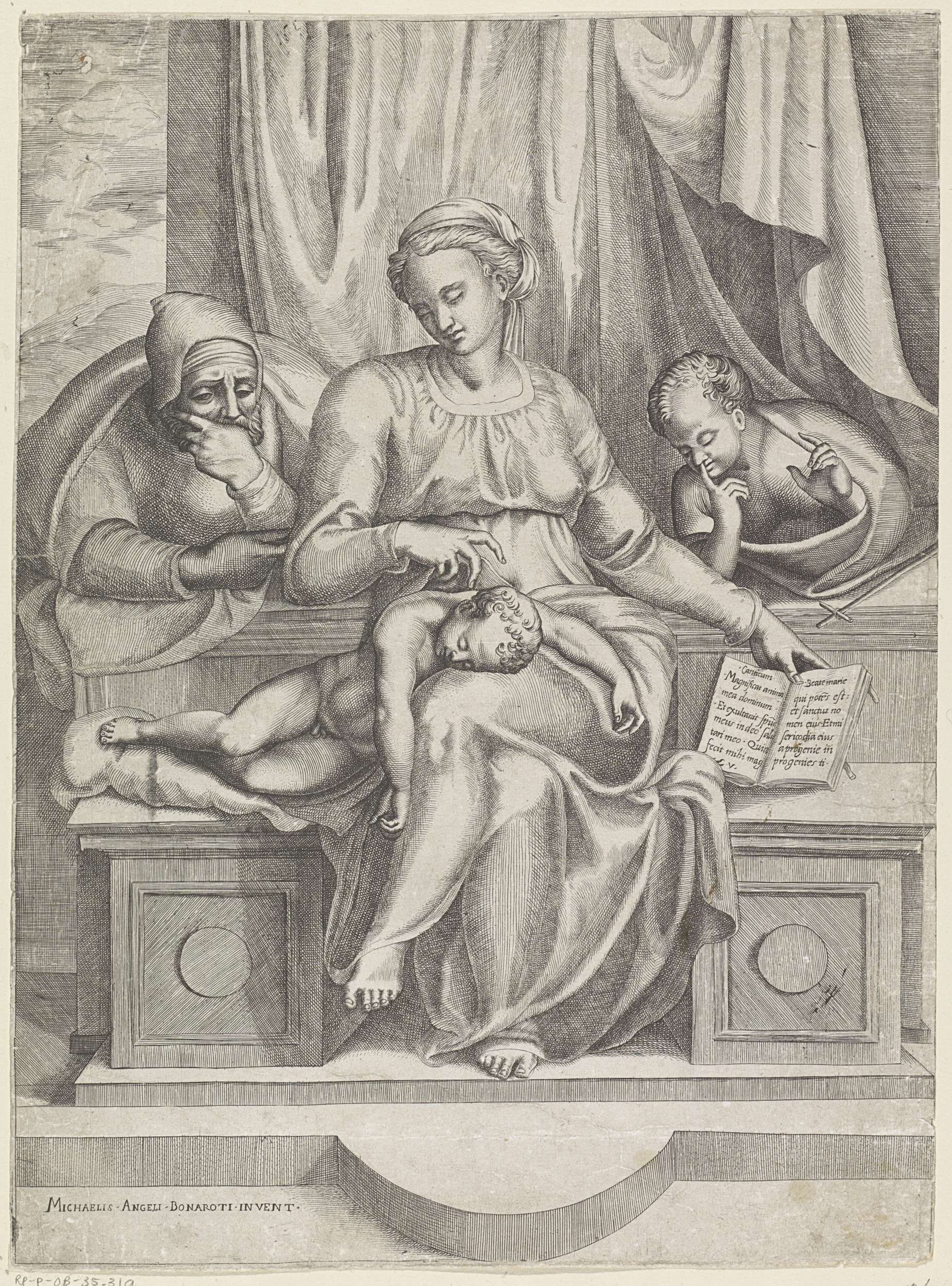 Titelprent met een putto leunend tegen marmeren blok...
