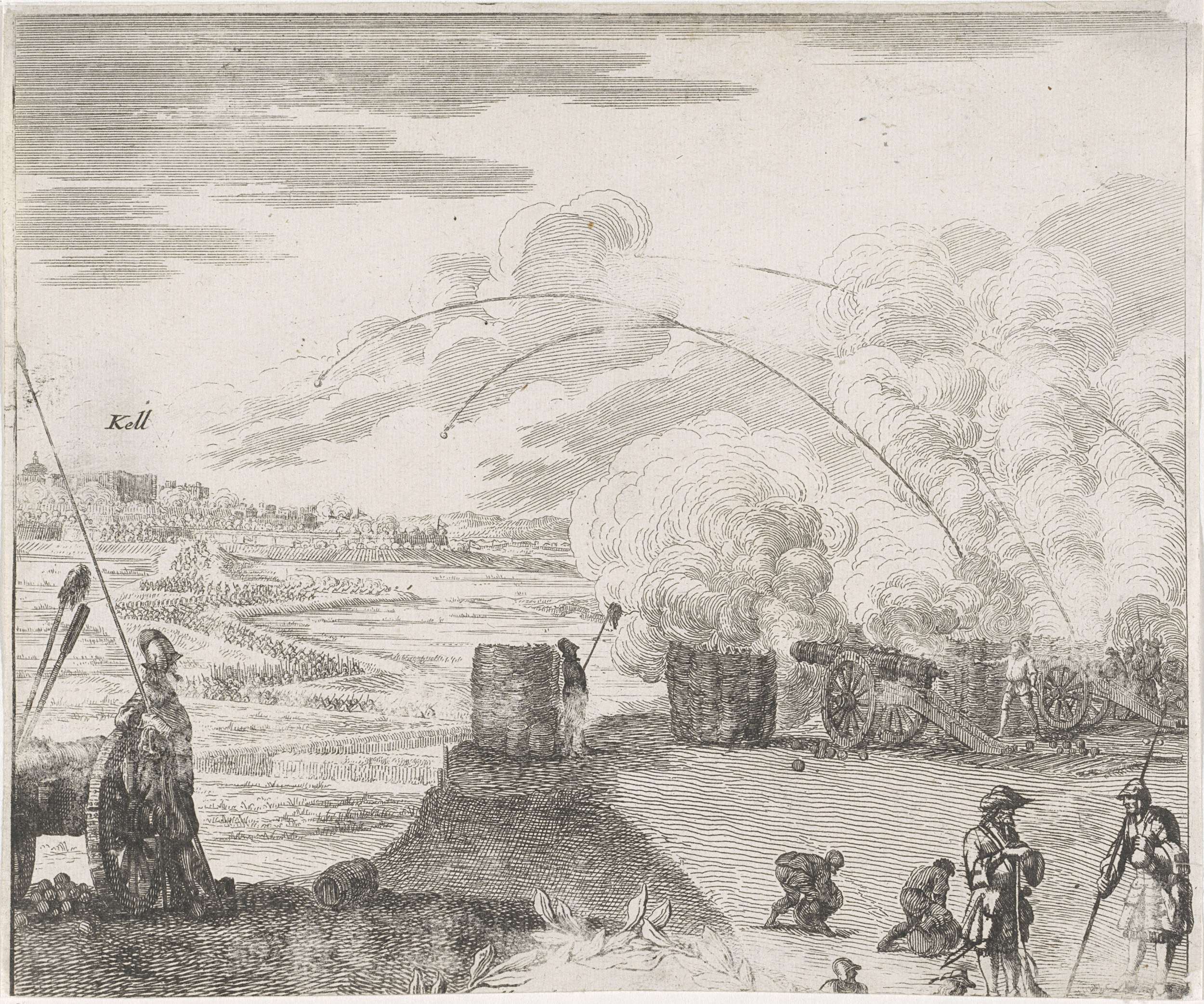 Soldaten vuren kanonnen af op de stad Kell