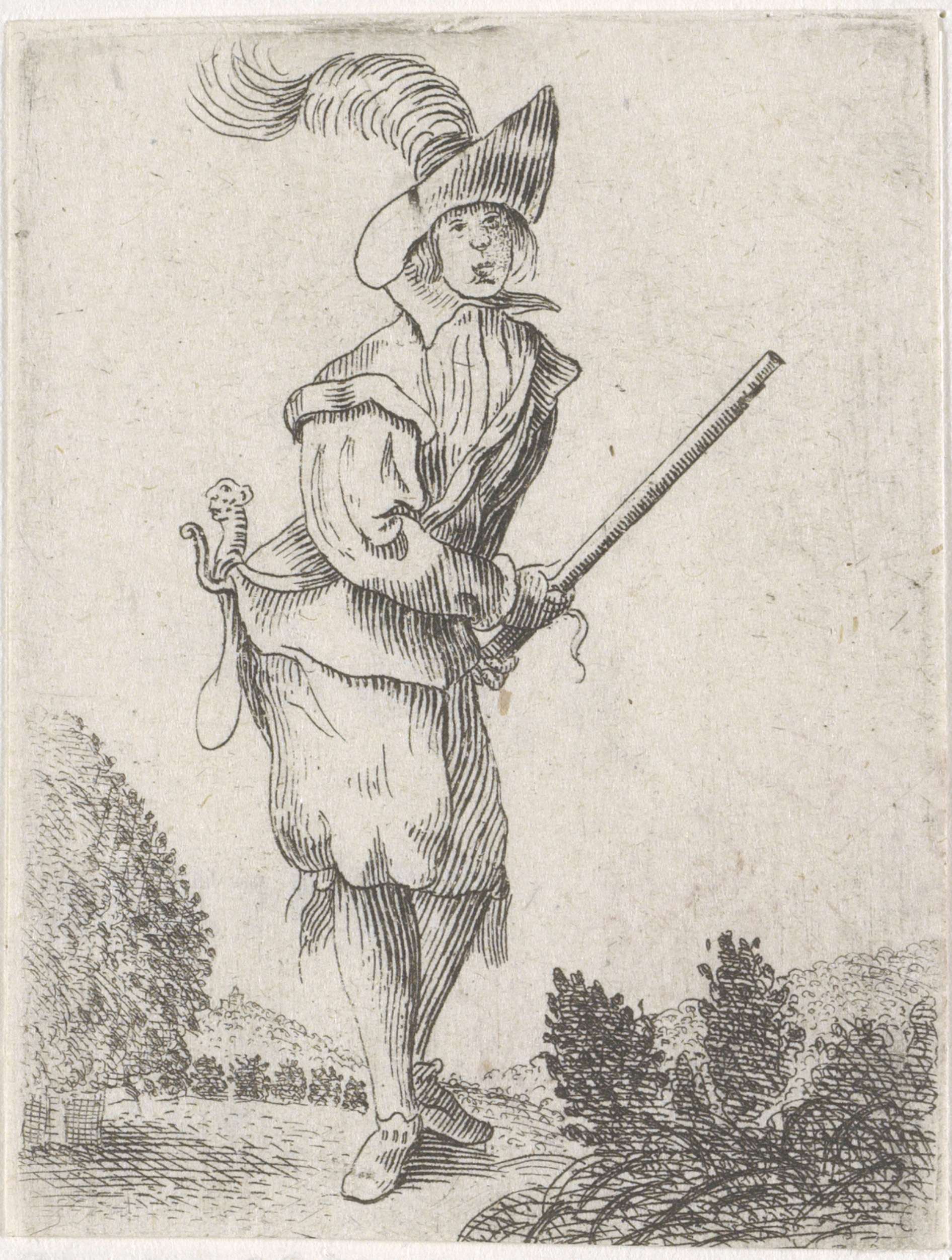 Edelman met stok in een landschap
