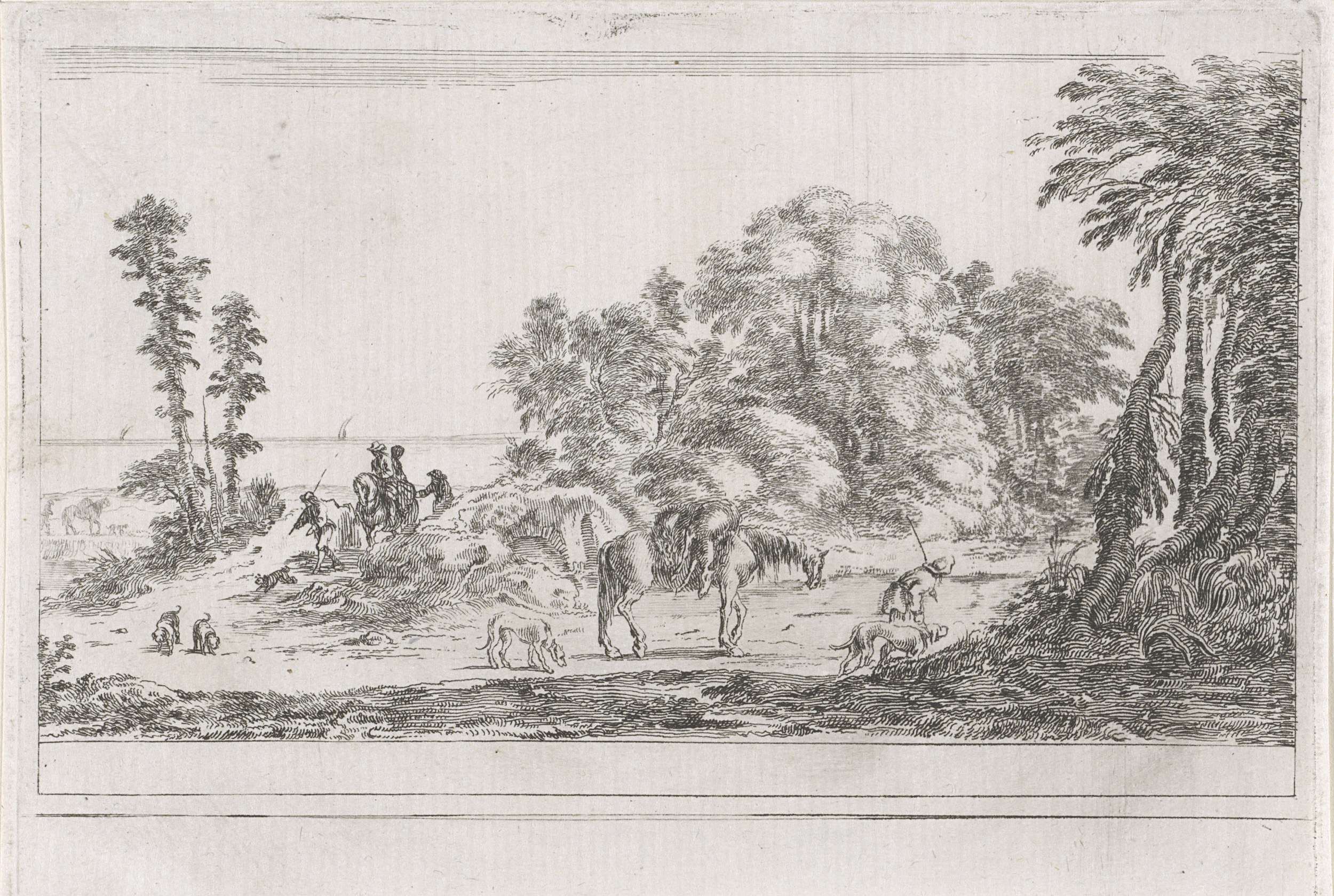 Landschap met herders, jachthonden en een beladen pa...