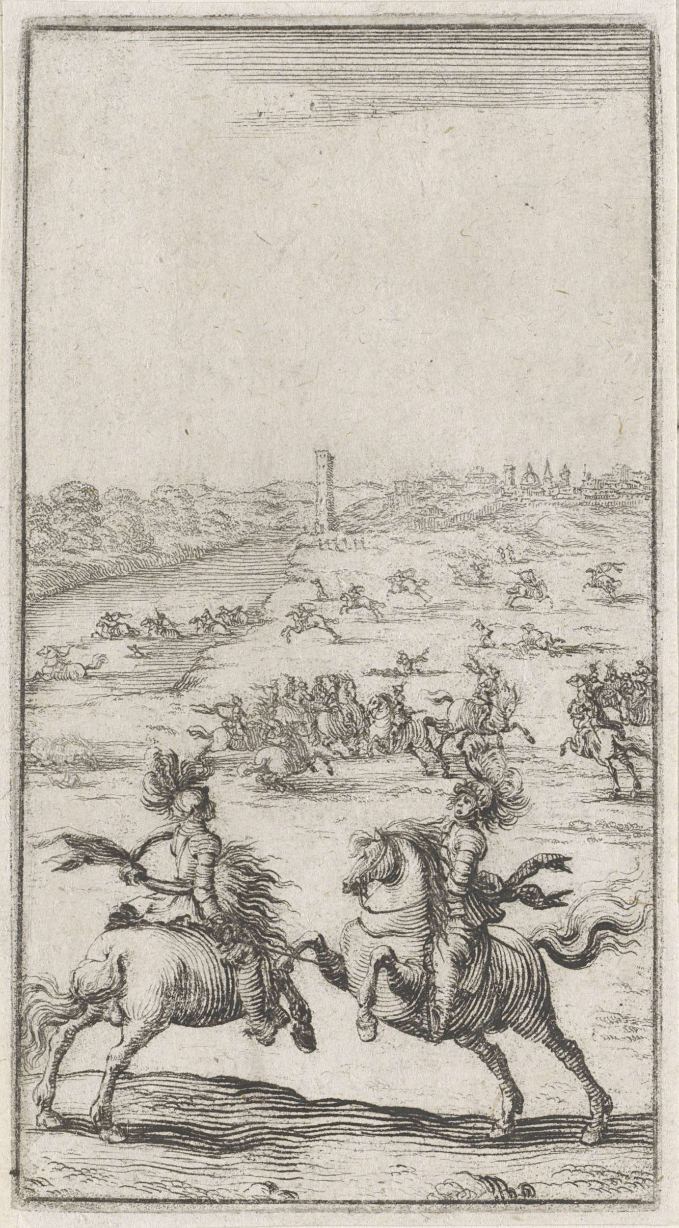 Twee vechtende ridders te paard