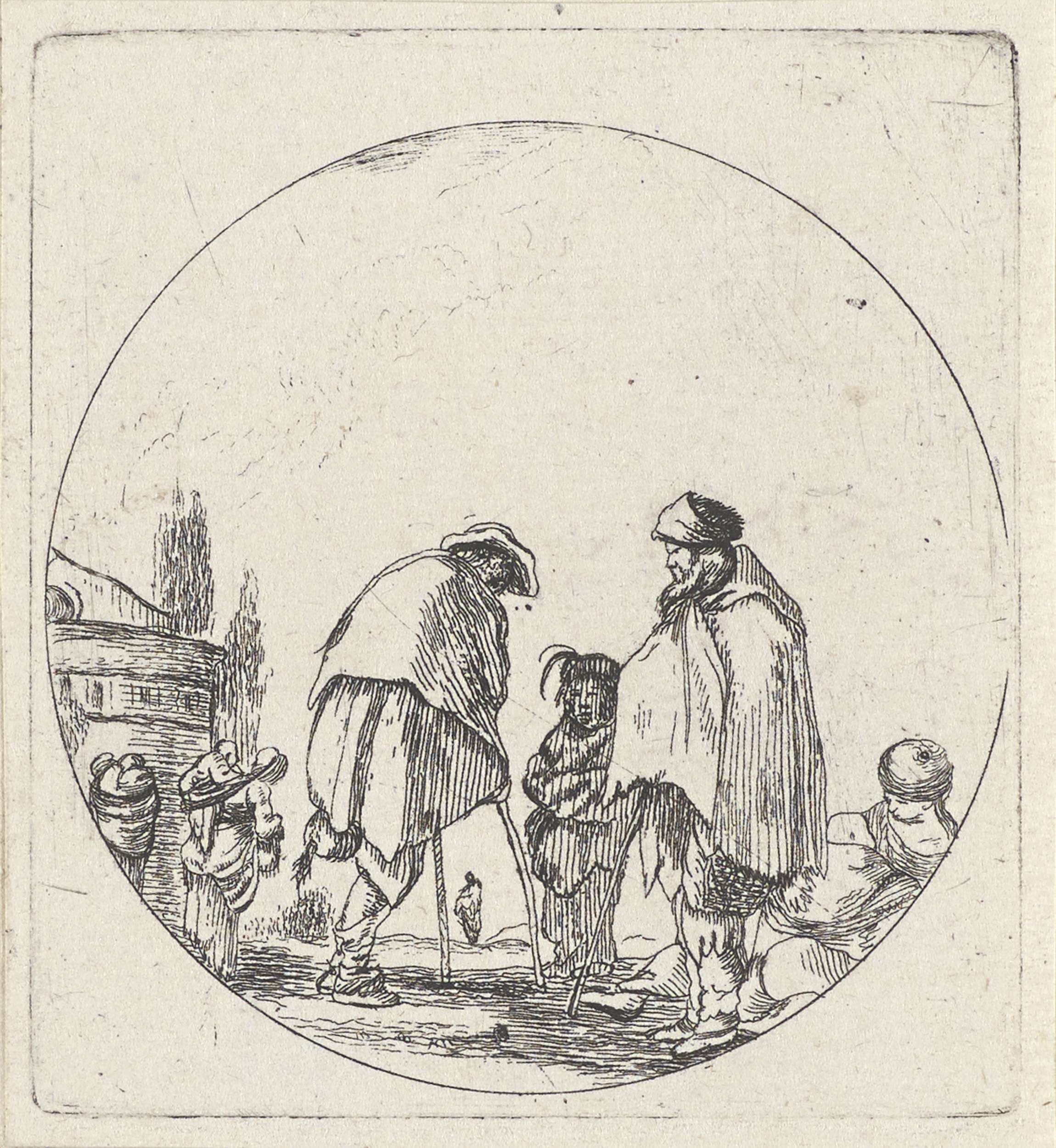 Mannen op krukken en vrouwen met kinderen