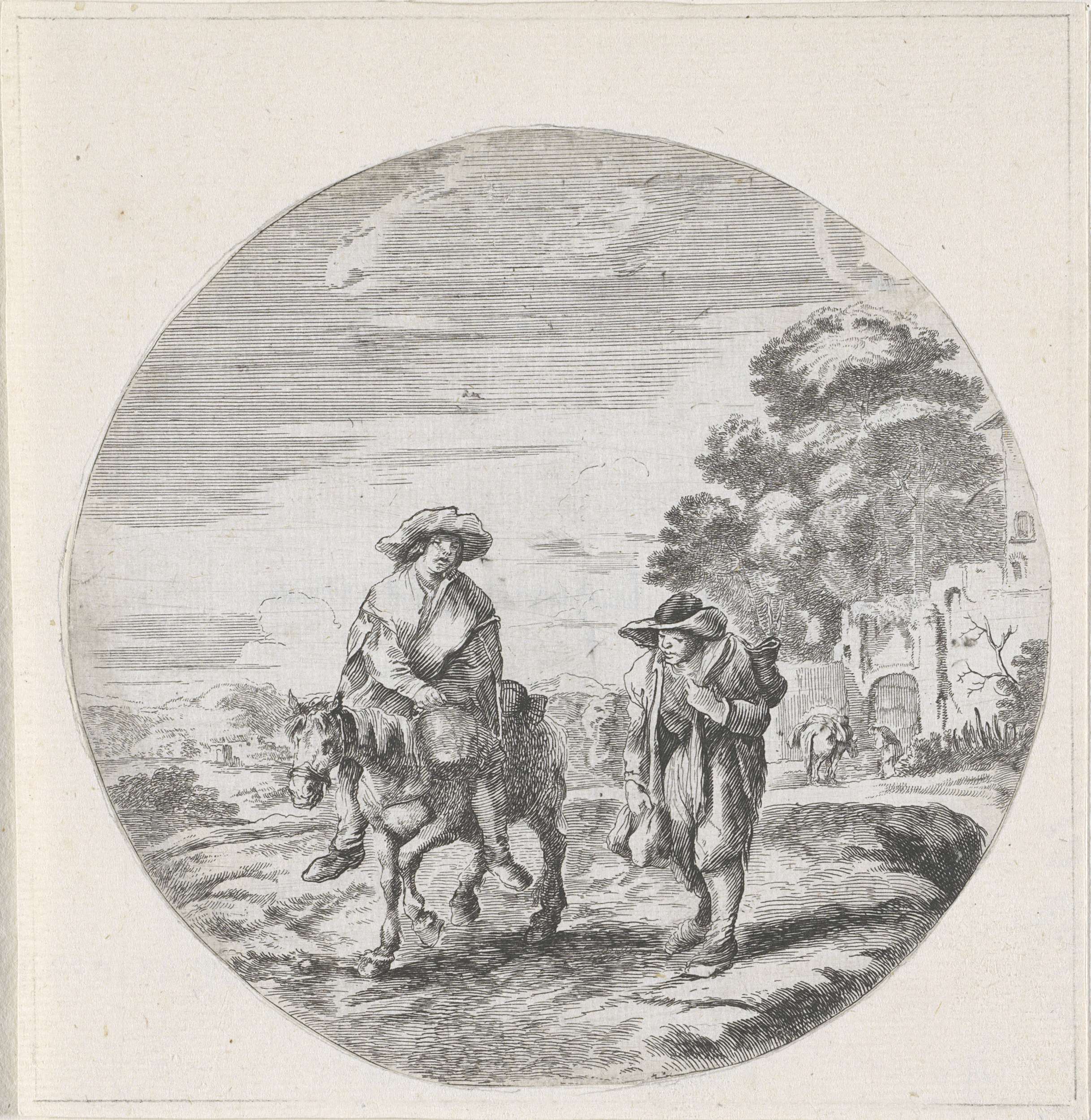 Boer te paard en boer te voet